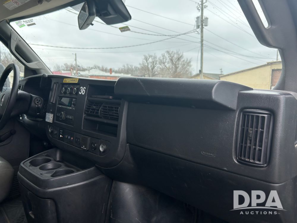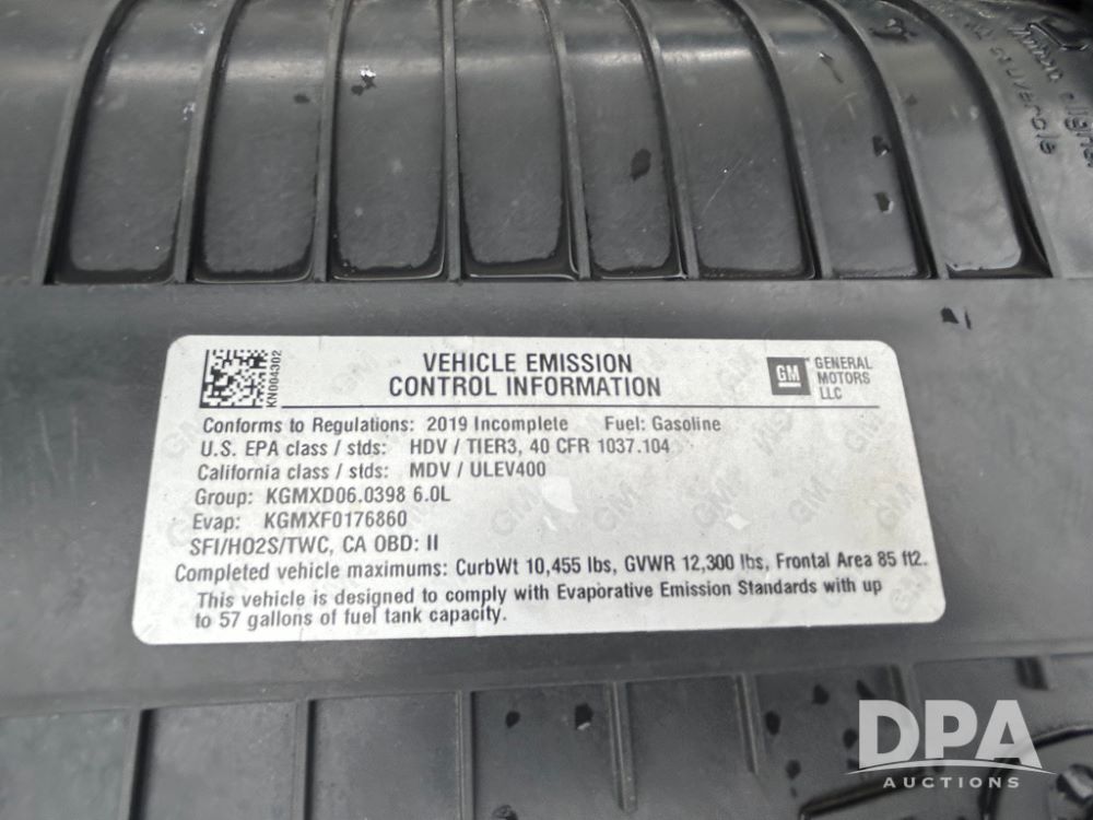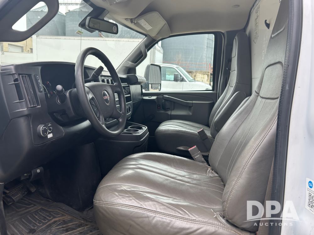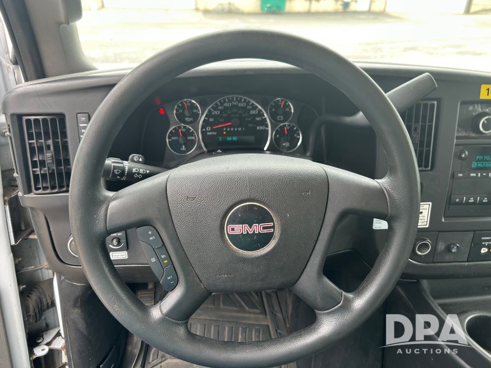 2019 GMC Savana 3500 Box Truck (LLD1701, Unit 36), 6.0 gas engine, automatic transmission, backup camera, power locks, cruise control, heat, air conditioning, rear wheel drive, underbody pull out ramp, dove tail/ramp (can be removed with 2 bolts and 1 pin), 1 spare tire included, shows 200,104 miles.