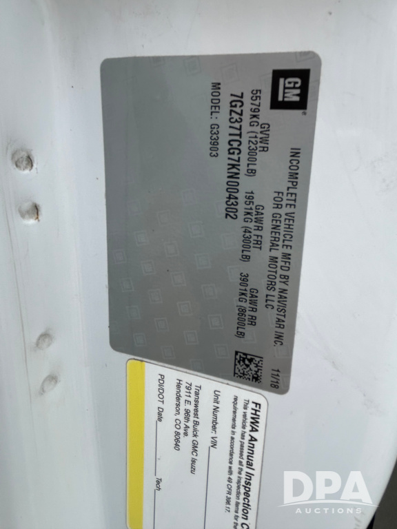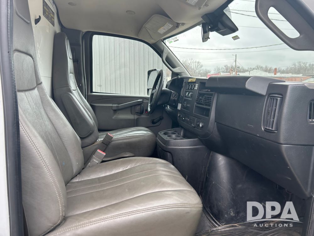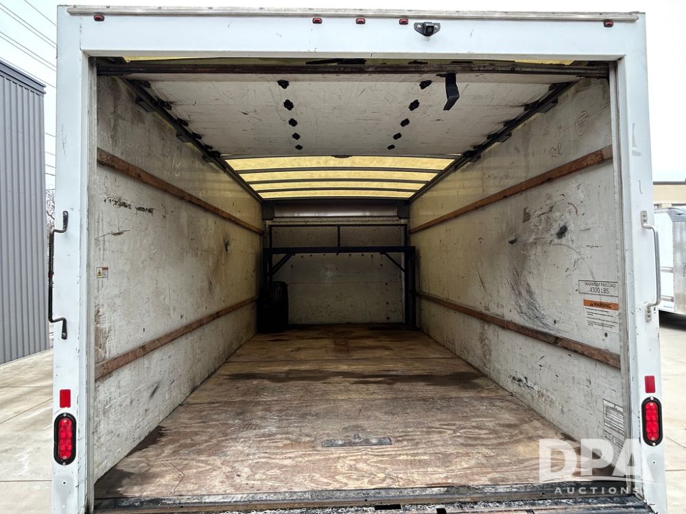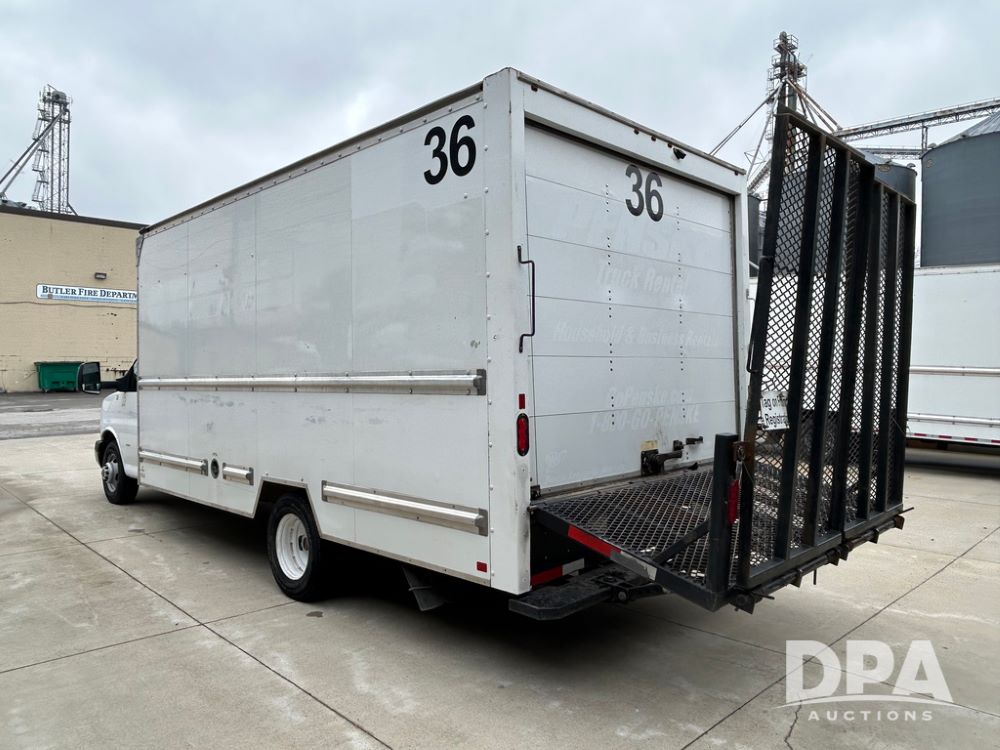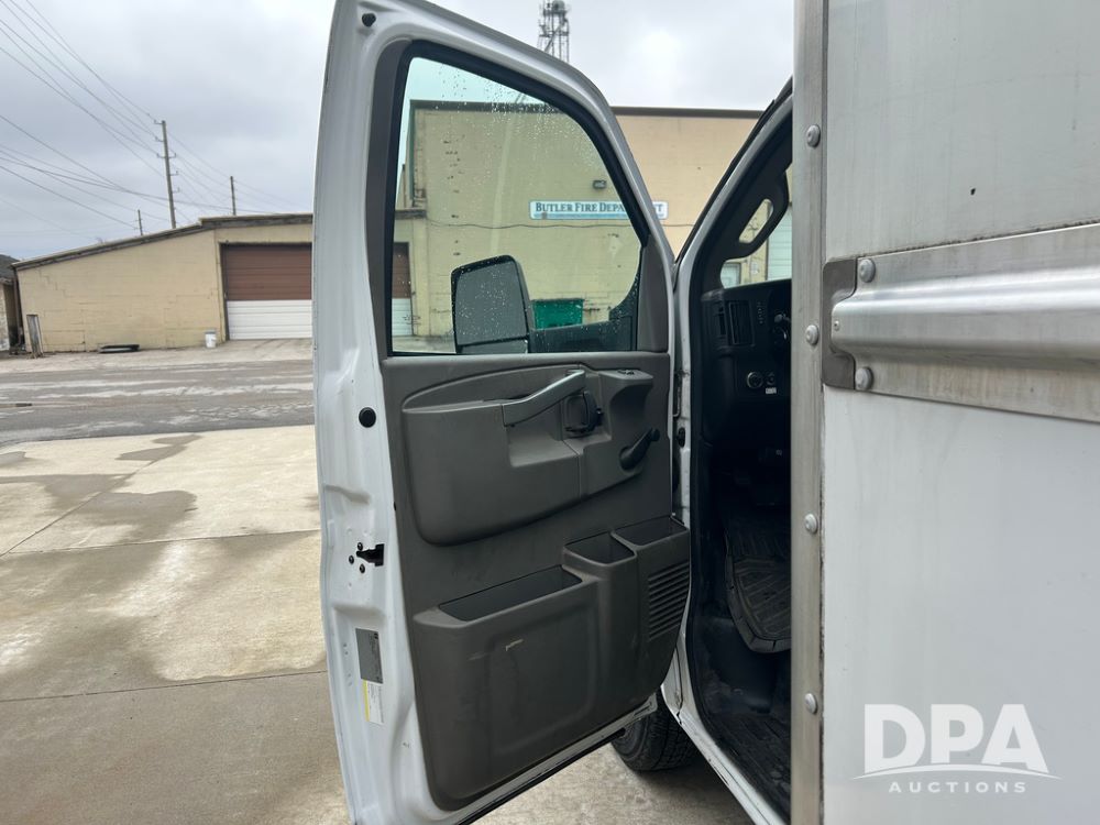 2019 GMC Savana 3500 Box Truck (LLD1701, Unit 36), 6.0 gas engine, automatic transmission, backup camera, power locks, cruise control, heat, air conditioning, rear wheel drive, underbody pull out ramp, dove tail/ramp (can be removed with 2 bolts and 1 pin), 1 spare tire included, shows 200,104 miles.