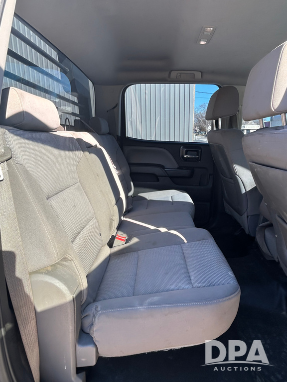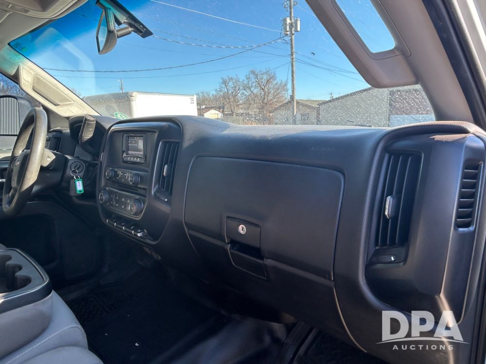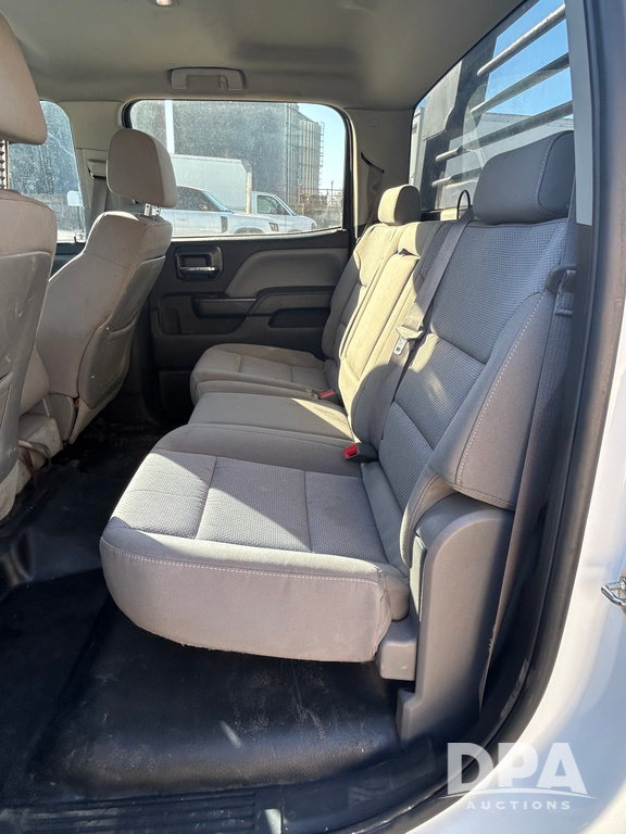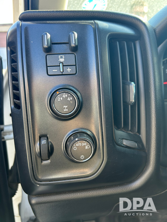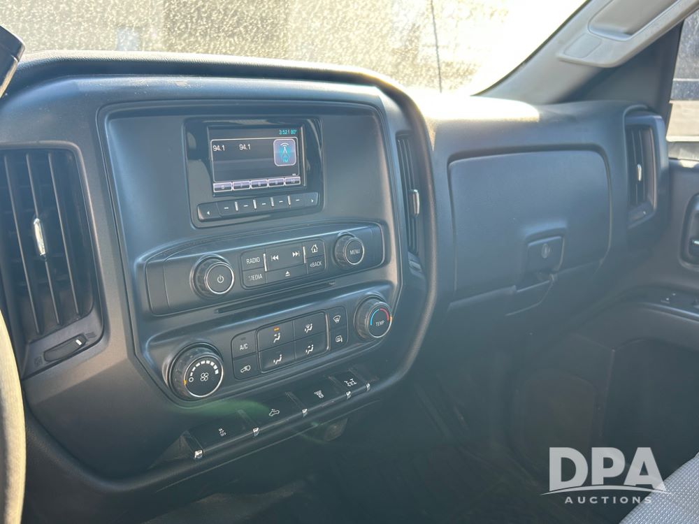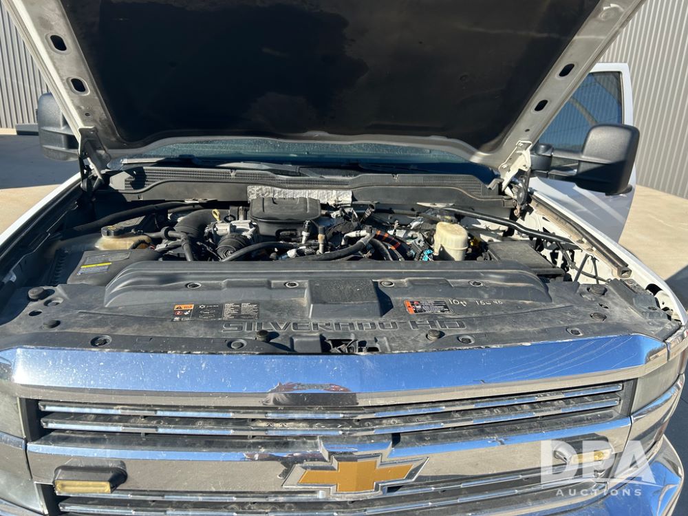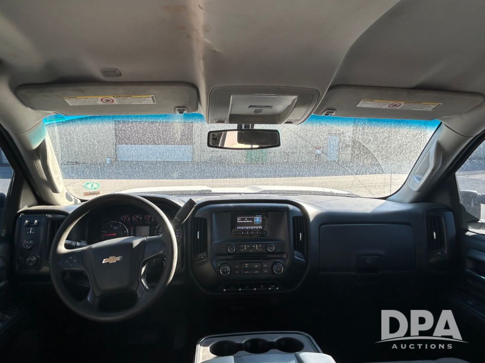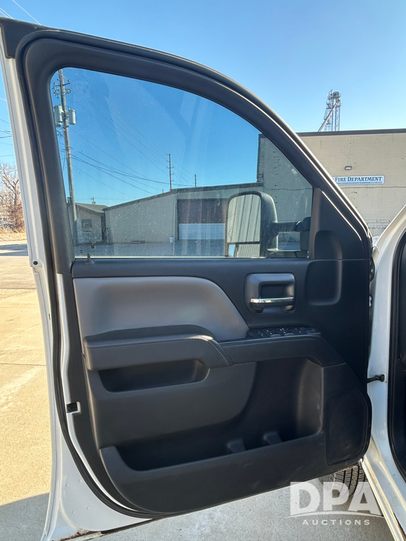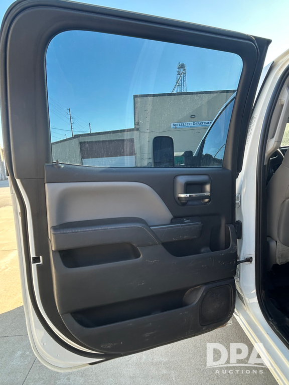 2015 Chevy Silverado 3500 Flatbed Truck (LLD1691, Unit 26), 6.6 Duramax diesel engine, *DELETED*, 4WD, Bluetooth, heat, air conditioning, skirted flatbed with tool boxes, shows 206,698 miles.