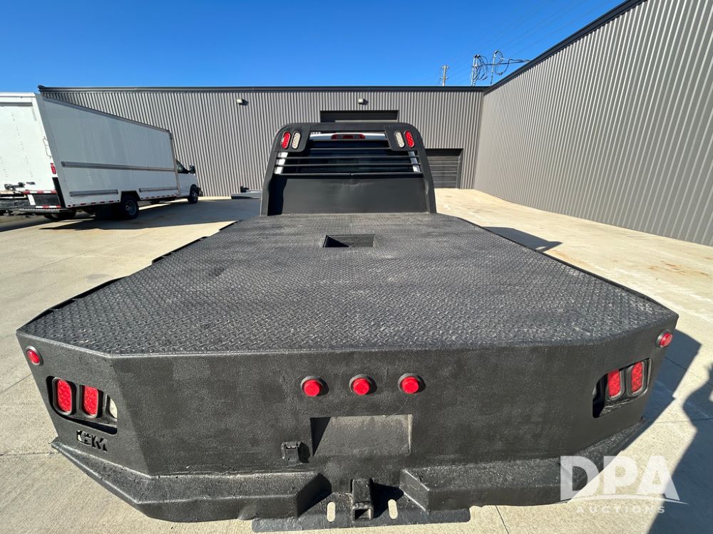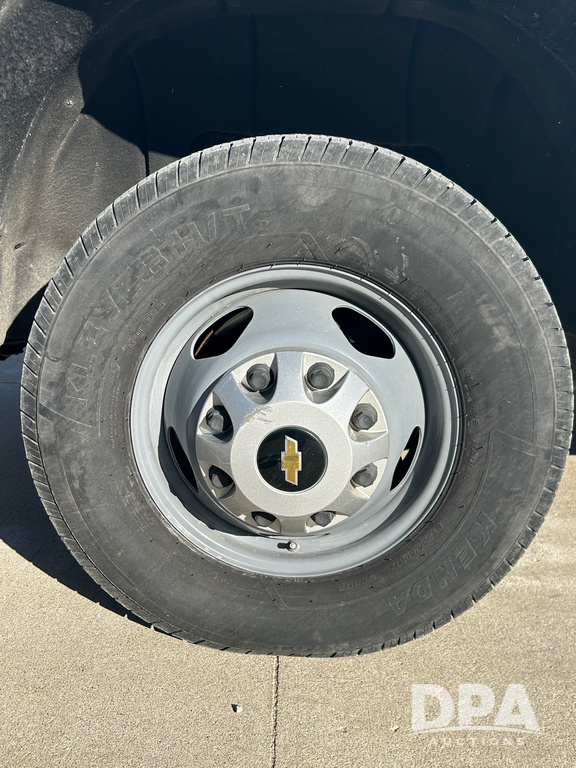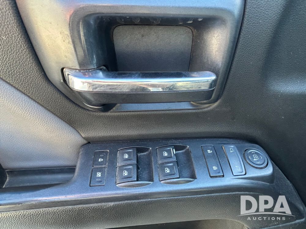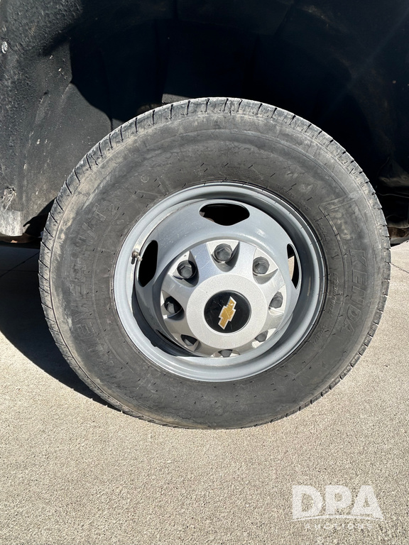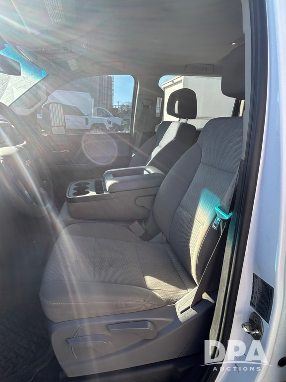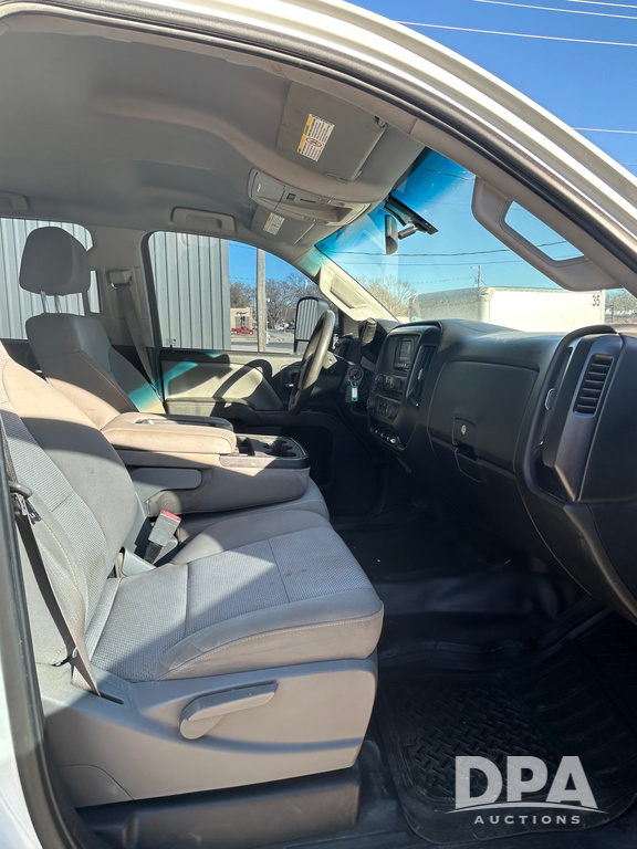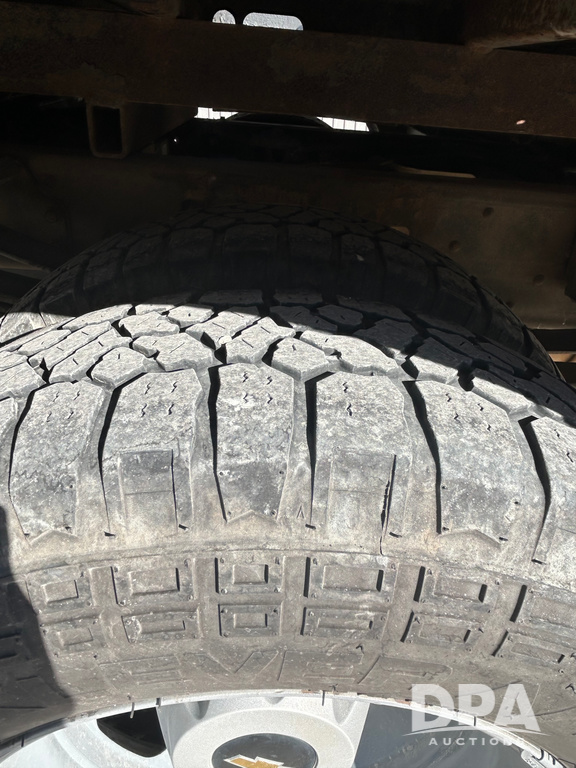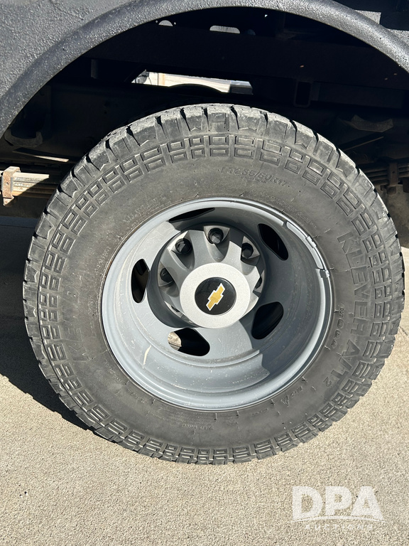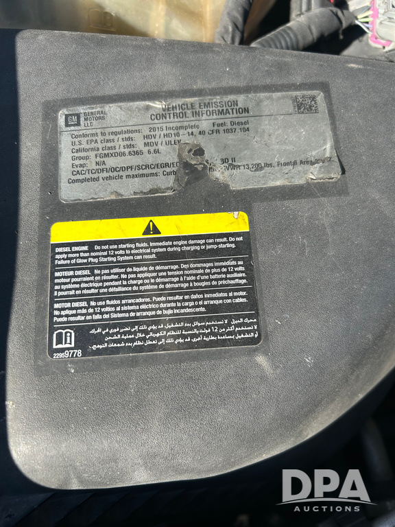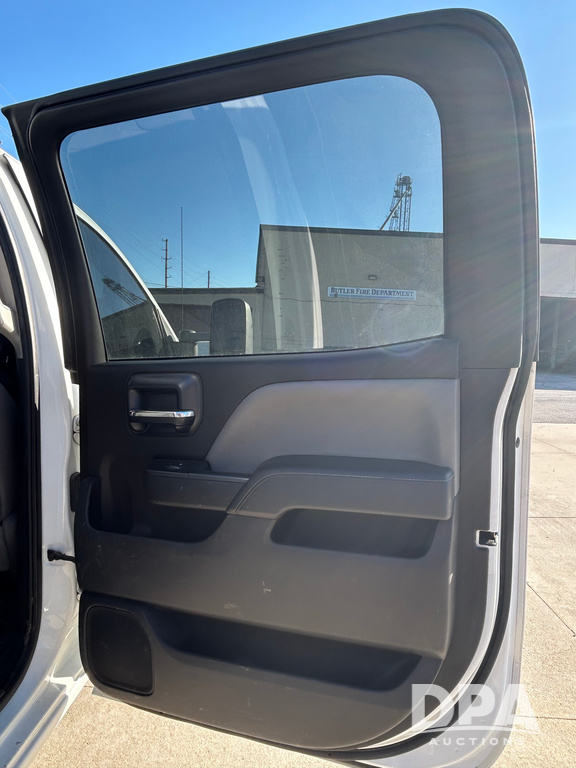 2015 Chevy Silverado 3500 Flatbed Truck (LLD1691, Unit 26), 6.6 Duramax diesel engine, *DELETED*, 4WD, Bluetooth, heat, air conditioning, skirted flatbed with tool boxes, shows 206,698 miles.