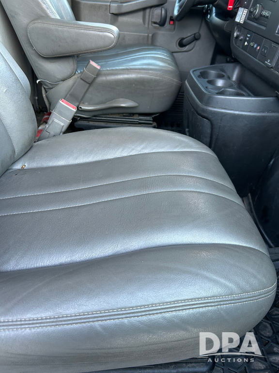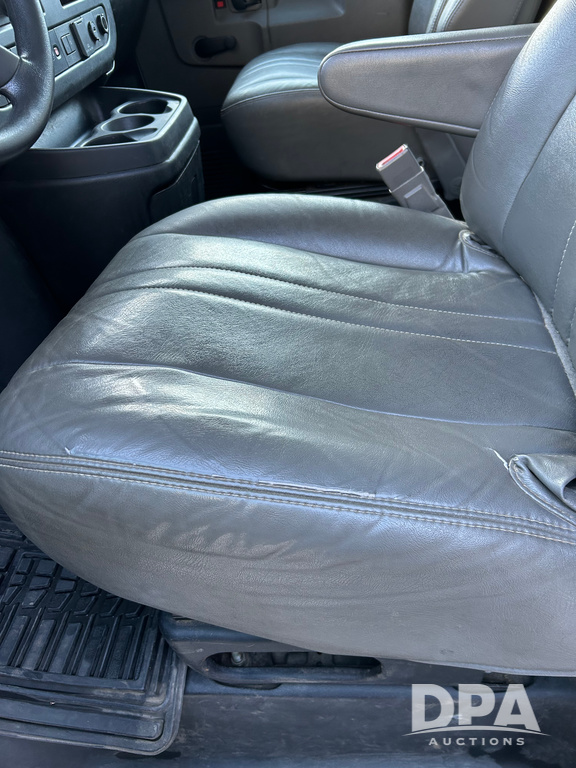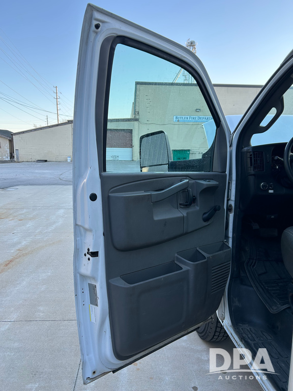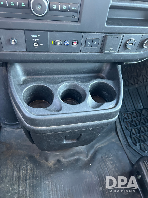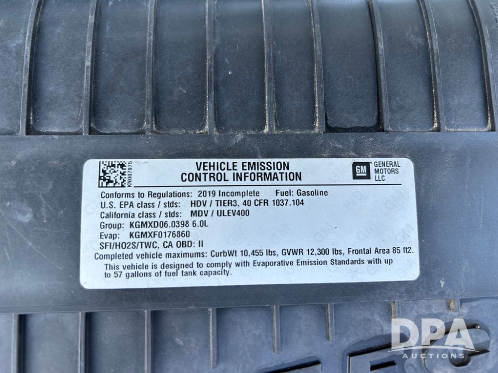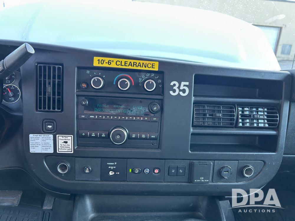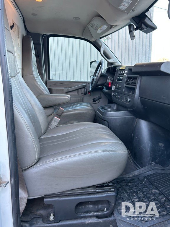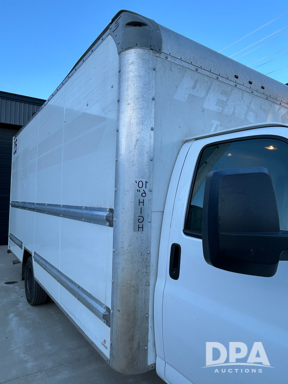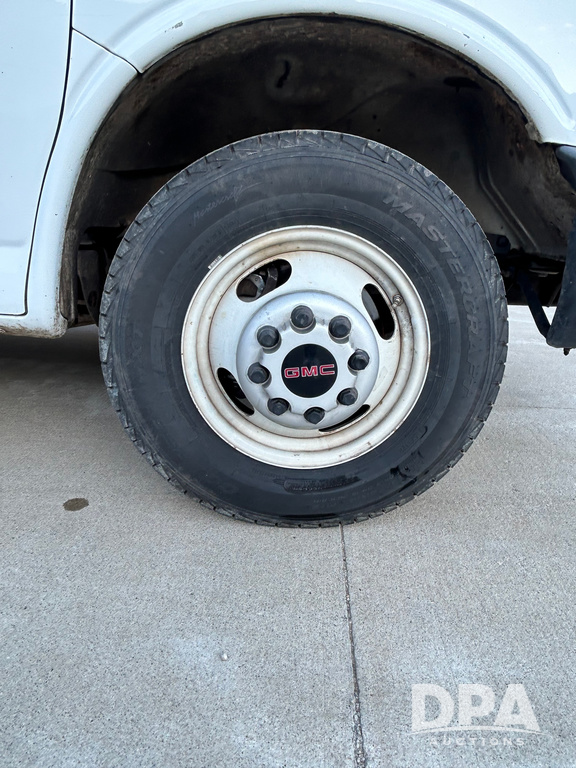2019 GMC Savana 3500 Box Truck (LLD1693, Unit 35), gas engine, rear wheel drive, 16 foot box, dove tail/ramp (can be removed with 2 bolts and 1 pin), underbody pullout aluminum ramp, backup camera, power locks, cruise control, heat, air conditioning, 1 spare tire included, shows 172,551 miles.