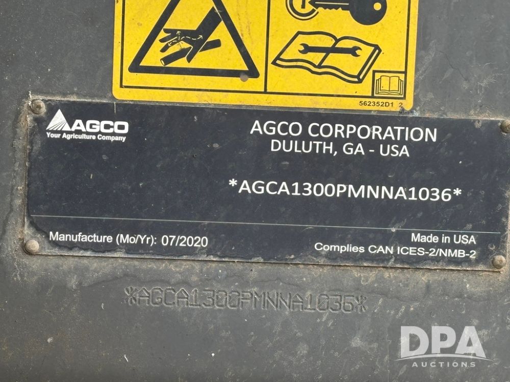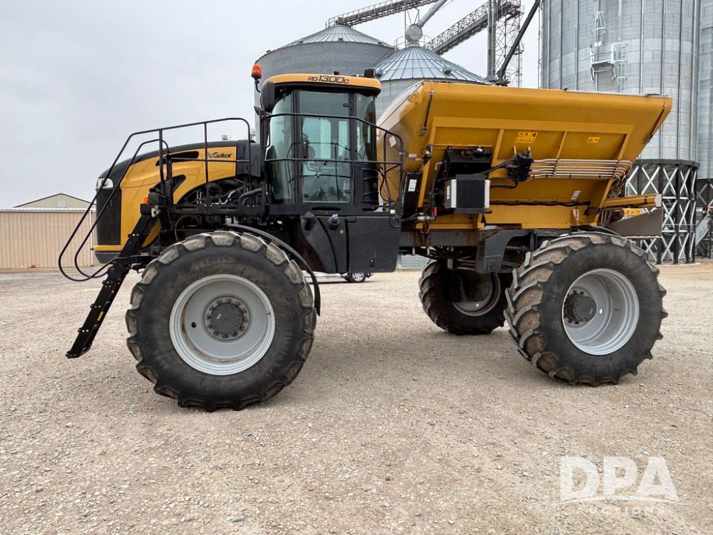 2020 RoGator 1300C Dry Machine (GP12866, Unit 1601), AGCO diesel engine, hydrostatic transmission, air conditioning, heat, Am/Fm radio, leather seat, buddy seat, beacon lights, New Leader NL4330 Edge G4 - 11' dry spreader box (S/N 797378), twin spinner, all hydraulic, New Leader 5' stainless steel insert (S/N 797380), electric roll over tarp, Mitas AC65 710/70R38 flotation tires, fenders, Raven Viper 4 monitor, shows 4,237 hours.