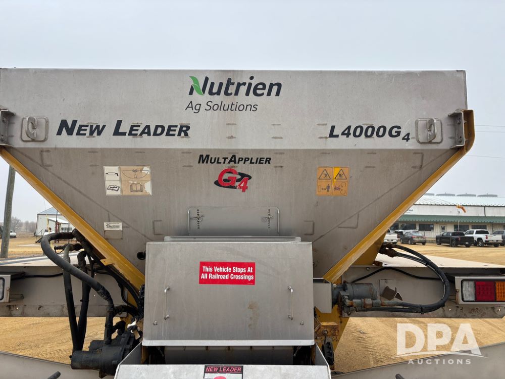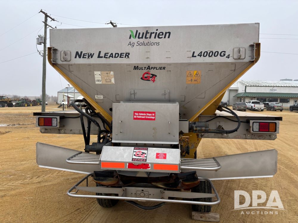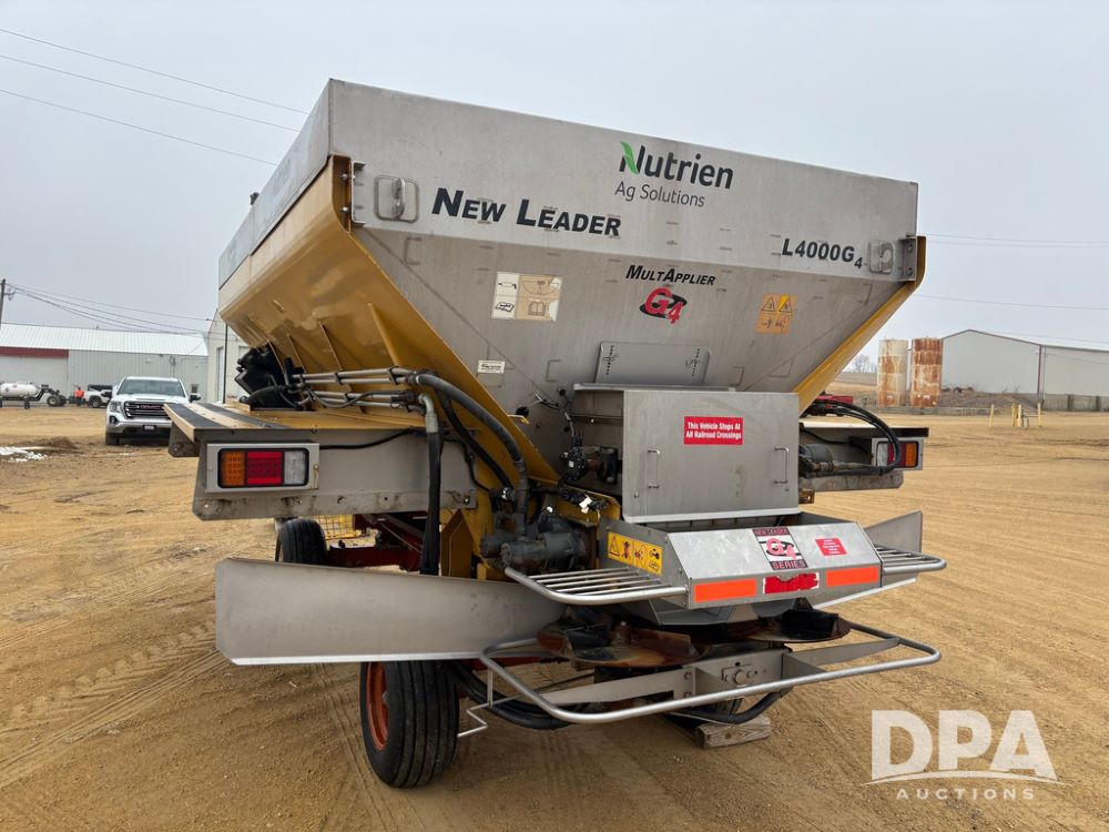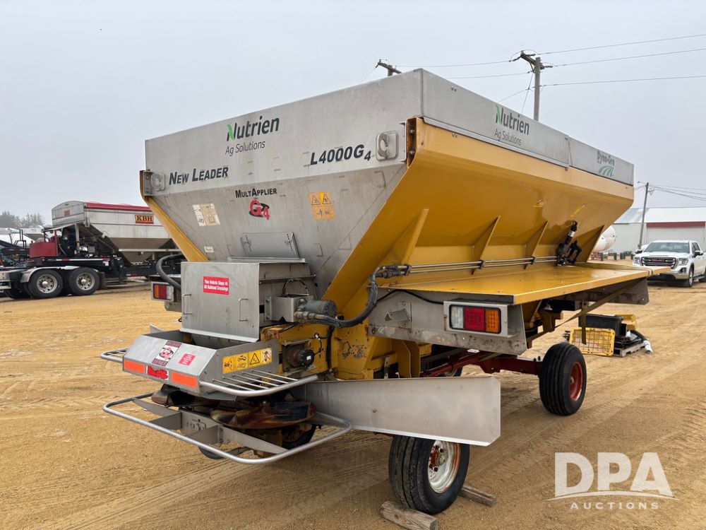 New Leader Dry Spreader Box (GP12886), New Leader L4000 G4 - 14' dry spreader box (S/N 613235), twin spinner, all hydraulic, New Leader Multapplier 7' stainless steel insert (S/N 613237).