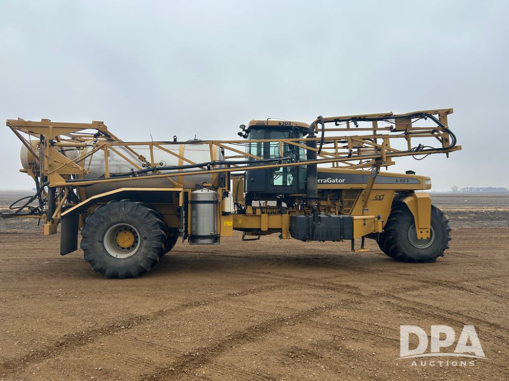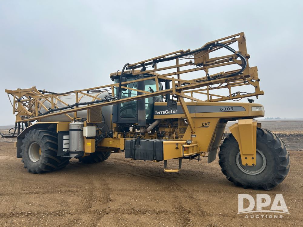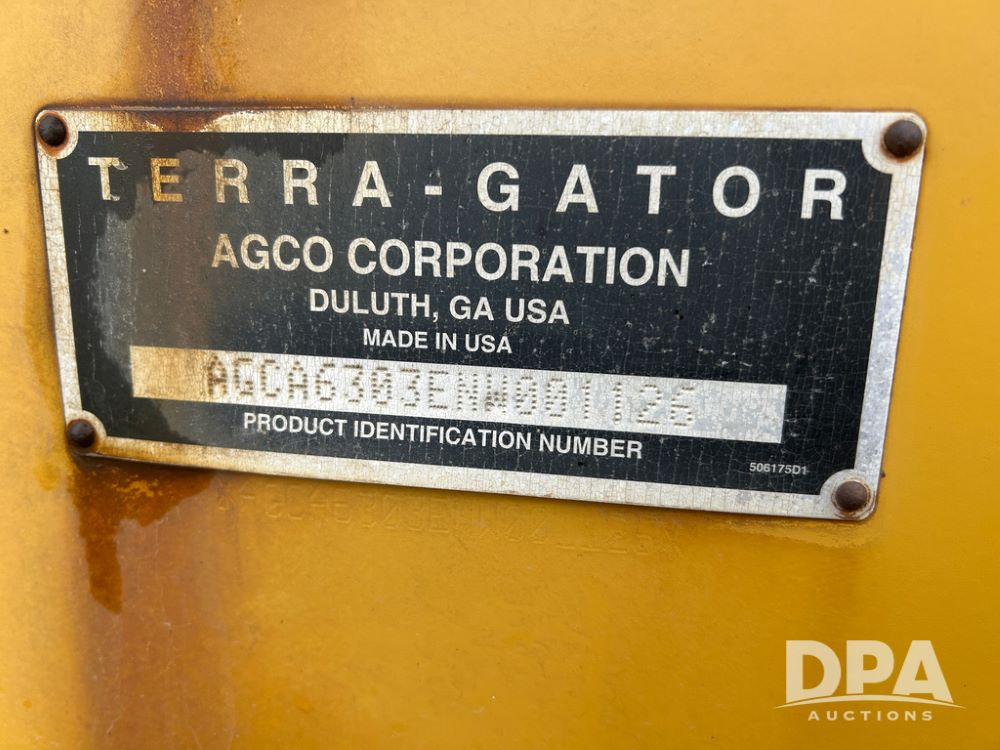 2011 Terra Gator 6303 Liquid Floater (CP1809, Unit 1171), AGCO Sisu diesel engine, CVT transmission, air conditioning, heat, Am/Fm CD radio, 1800 gallon stainless steel liquid system (S/N L182731), 70' boom, foam marker, 55 gallon stainless steel foam marker tank, rear poly rinse tank, front fill, Good Year & Alliance 1000/50R25 tires, lightbar, Raven SmarTrax, Raven Viper Pro monitor, shows 2,868 hours.