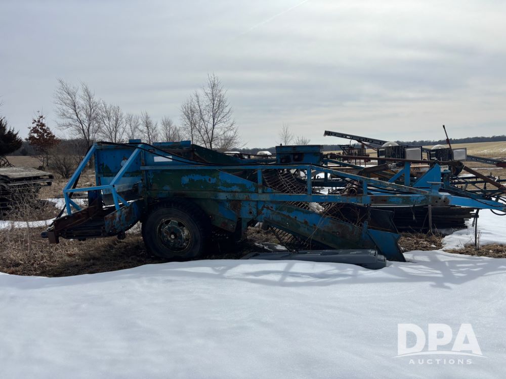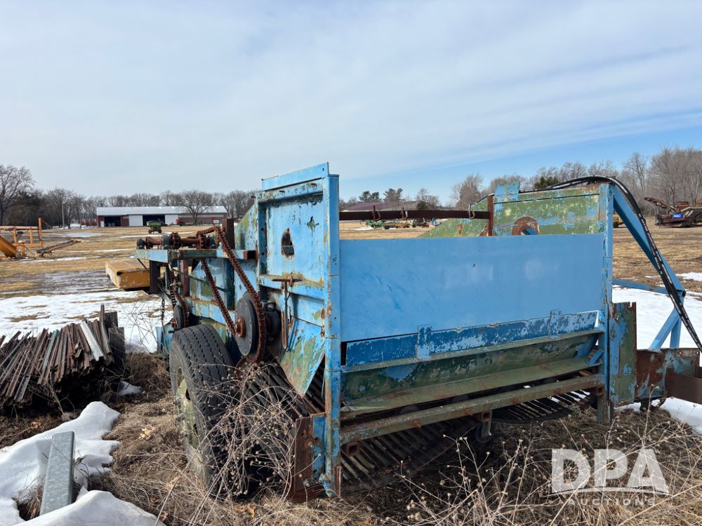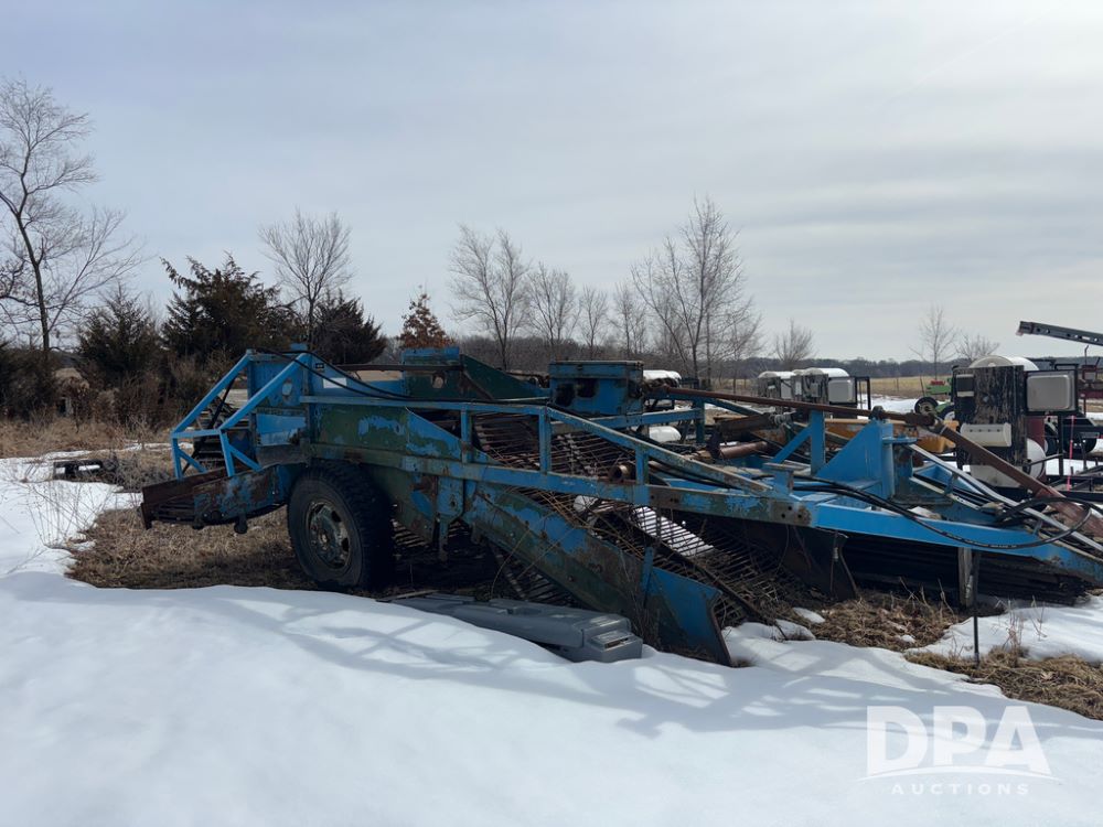 Dahlman Rock Picker/Windrower (DR13334), model SWT double apron chain pick up, rear right side hydraulic adjustable windrow discharge conveyor.