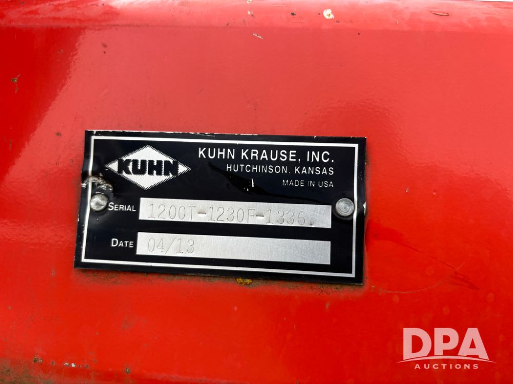 2013 Kuhn Gladiator 1200 Strip Till (DR13345 Unit 1336), 12 row strip till machine, hydraulic fold, 3 point mount, row units have heavy trips, front coulters, fluted blades and rear chain rollers.