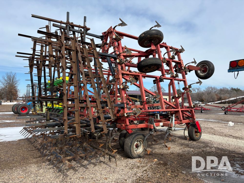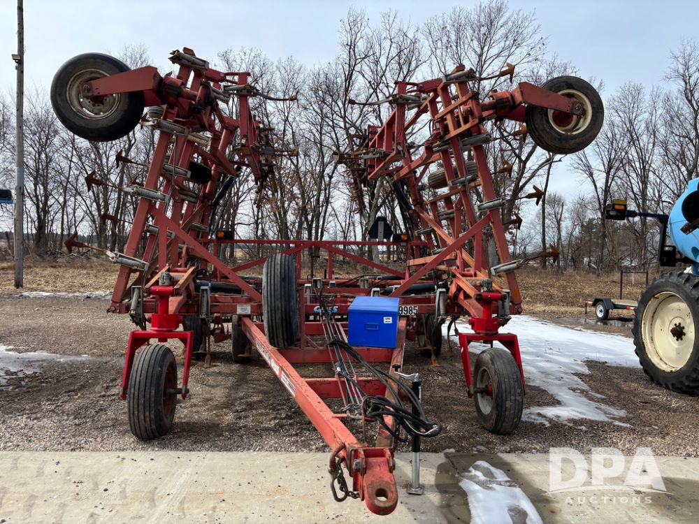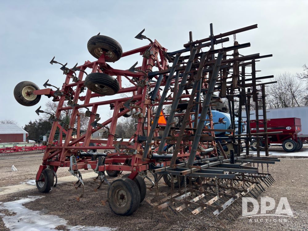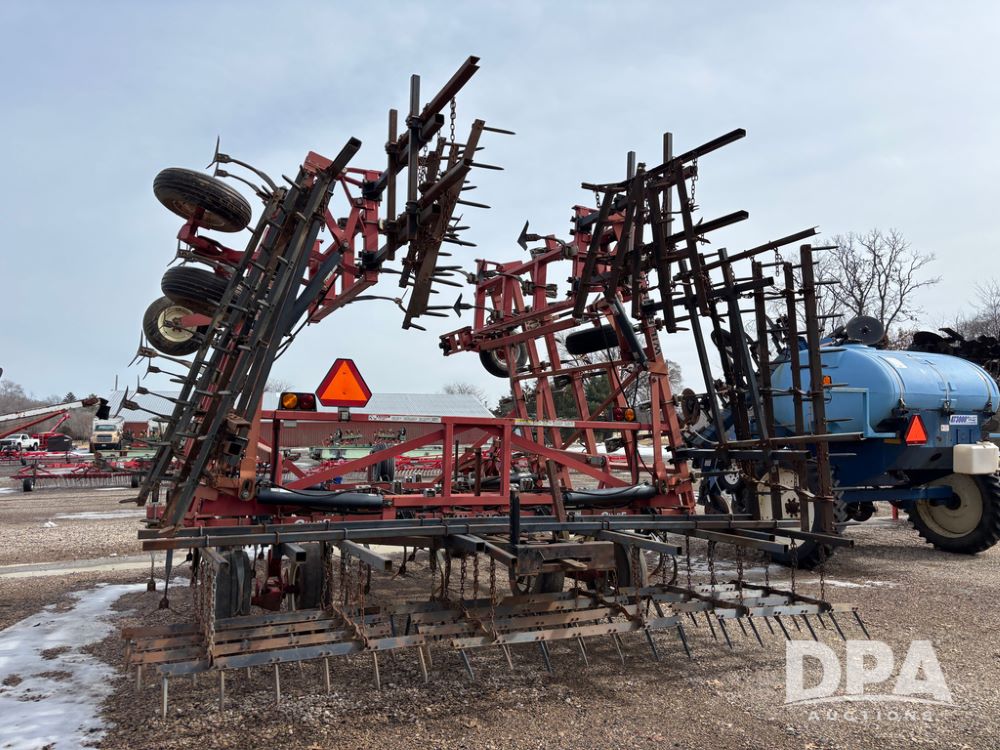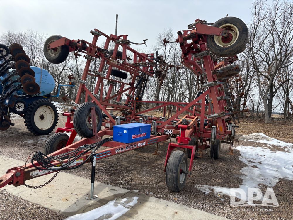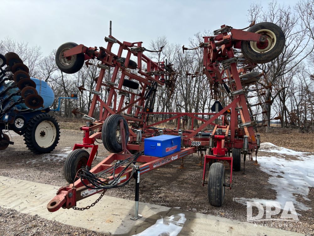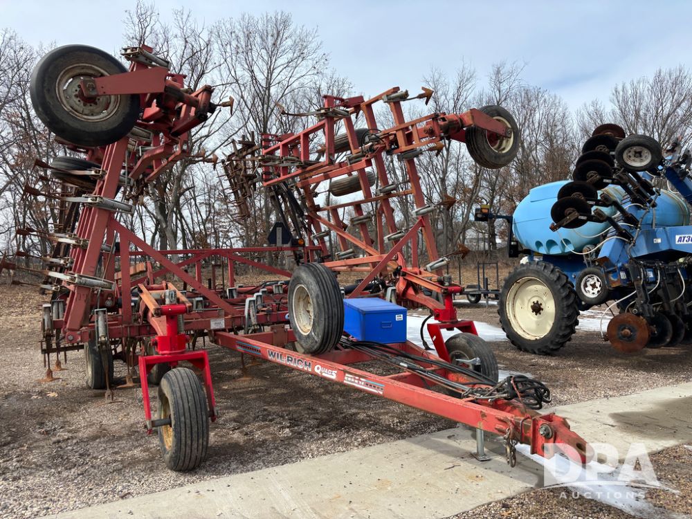 Wil-Rich Field Cultivator (DR13347 Unit 9985), model Quad 5 26' field cultivator, hydraulic fold, swivel gauge wheels, walking tandem main frame axles, rear 5 bar harrow.