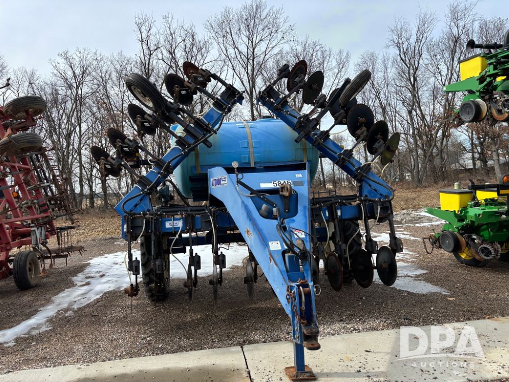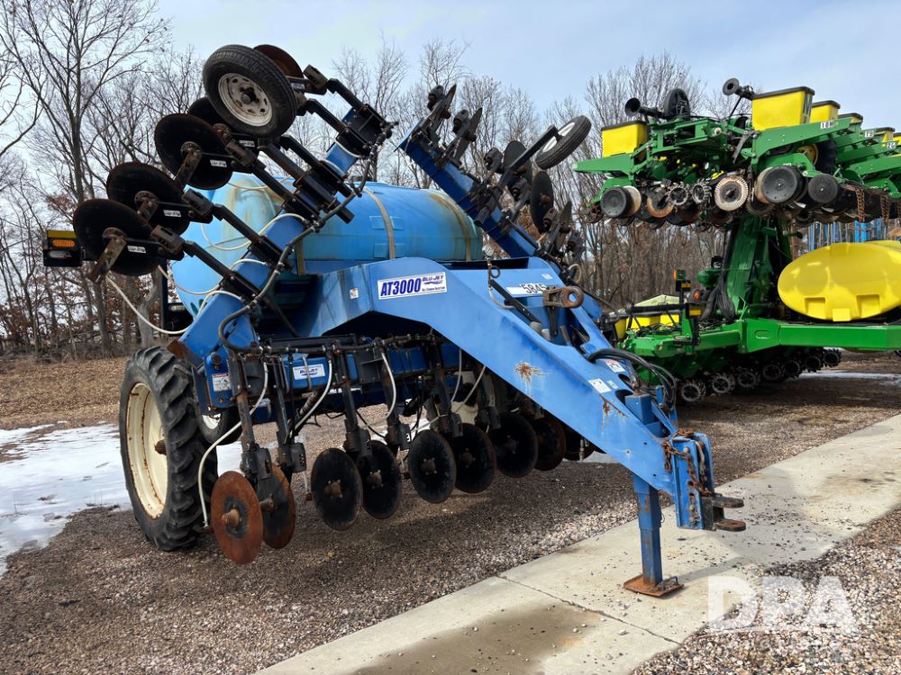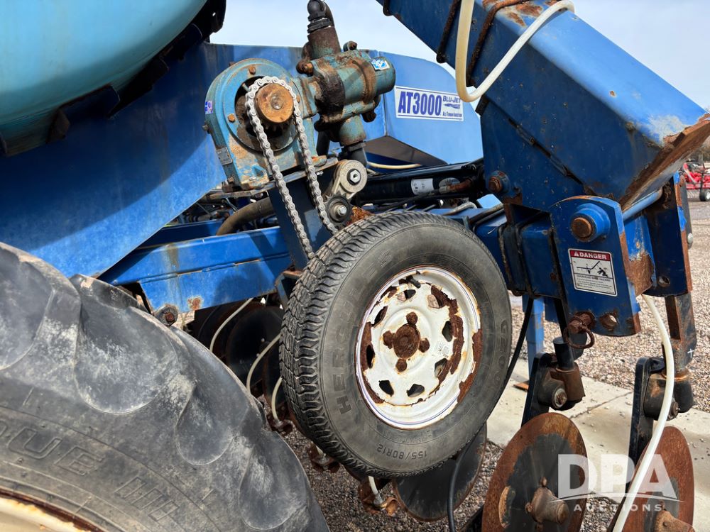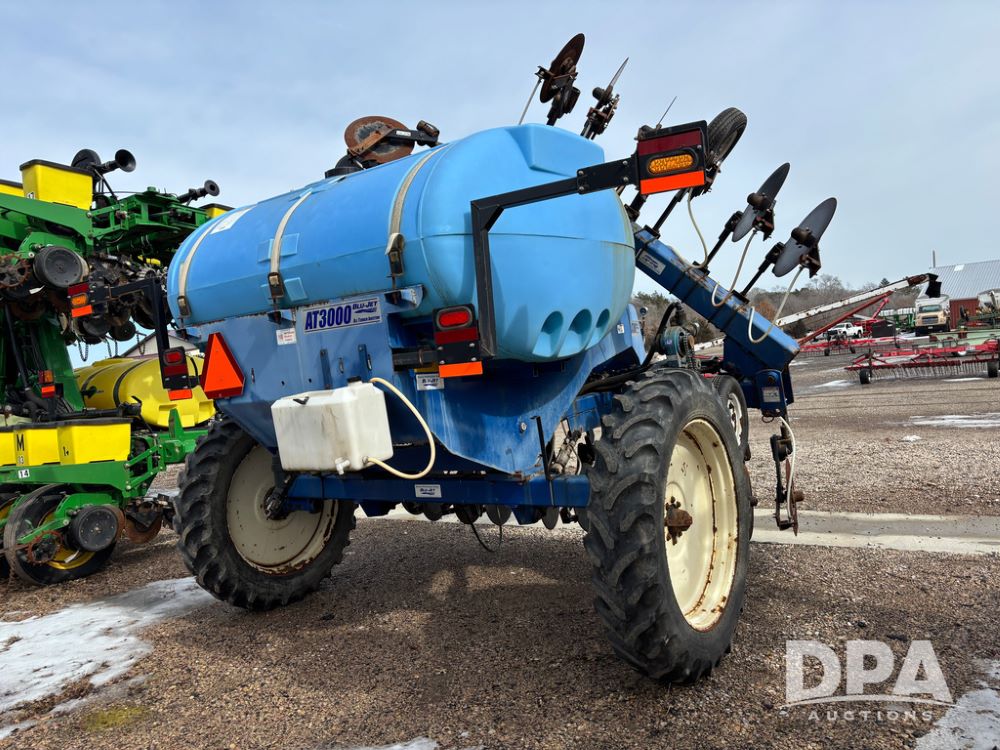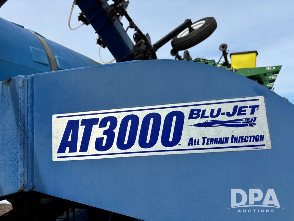 Blu-Jet AT3000 Applicator (DR13348 Unit 2178), 10 row double coulter side dress liquid applicator, John Blue ground drive pump, 1000 gallon poly liquid tank, hydraulic fold, manual gauge wheels, 12.4-38 row crop tires.