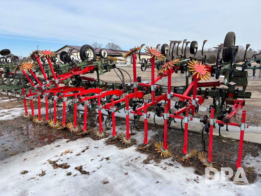 Lorenz Cultivator (DR13351 Unit 1841), 12 row Danish tine cultivator, rear weed fingers, hydraulic fold, 3 point mount.