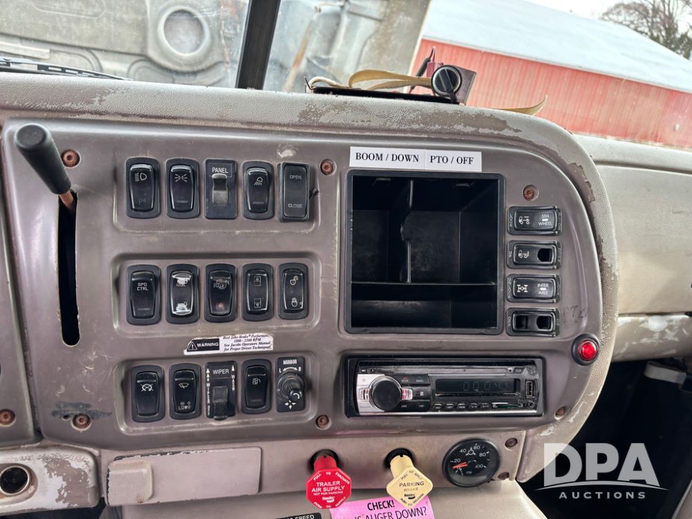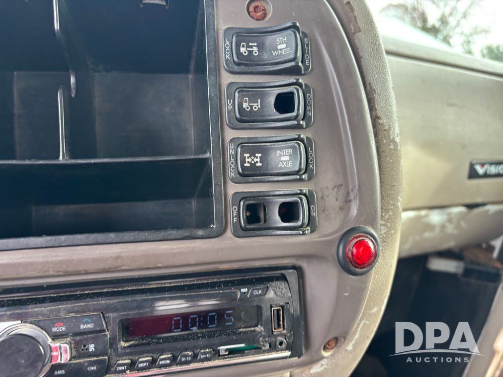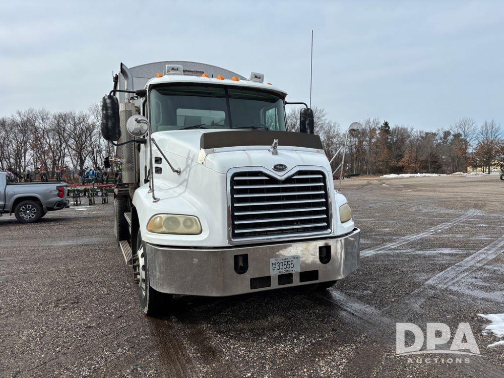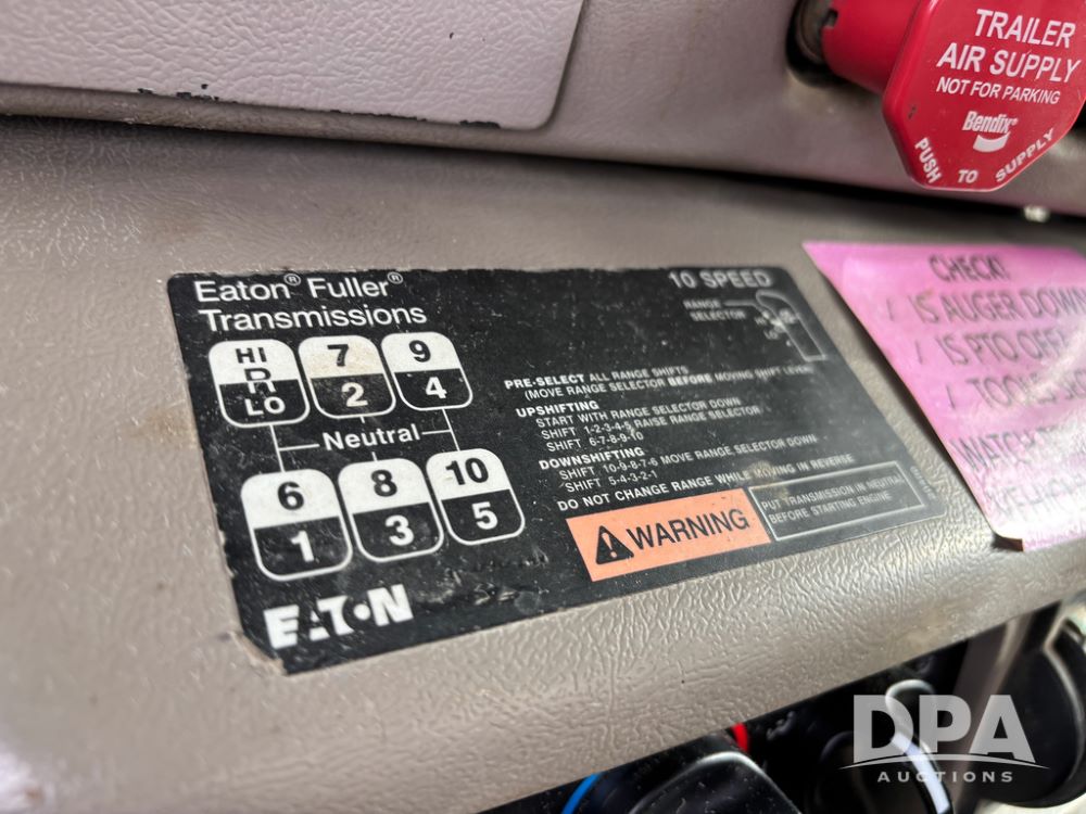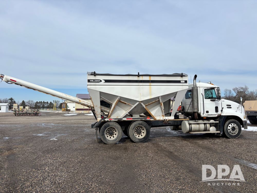 2001 Mack Vision Dry Truck (DR13363 Unit 159), Mack diesel engine, 10 speed transmission, tandem axle full screw, air ride suspension, Willmar 1600 stainless steel hydraulic dry tender box, rear discharge auger, electric roll tarp, dual aluminum fuel tanks, engine brake, cruise control, cab heat/air conditioning, 22.5 tires, all aluminum wheels.