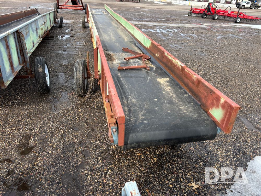 Custom Pellet Conveyor (DR13364 Unit 1), 31' 4'' X 30'' long belt conveyor, 20hp 3 phase electric motor, (motor is bad), Iron Man gear reducer, includes transport gear.