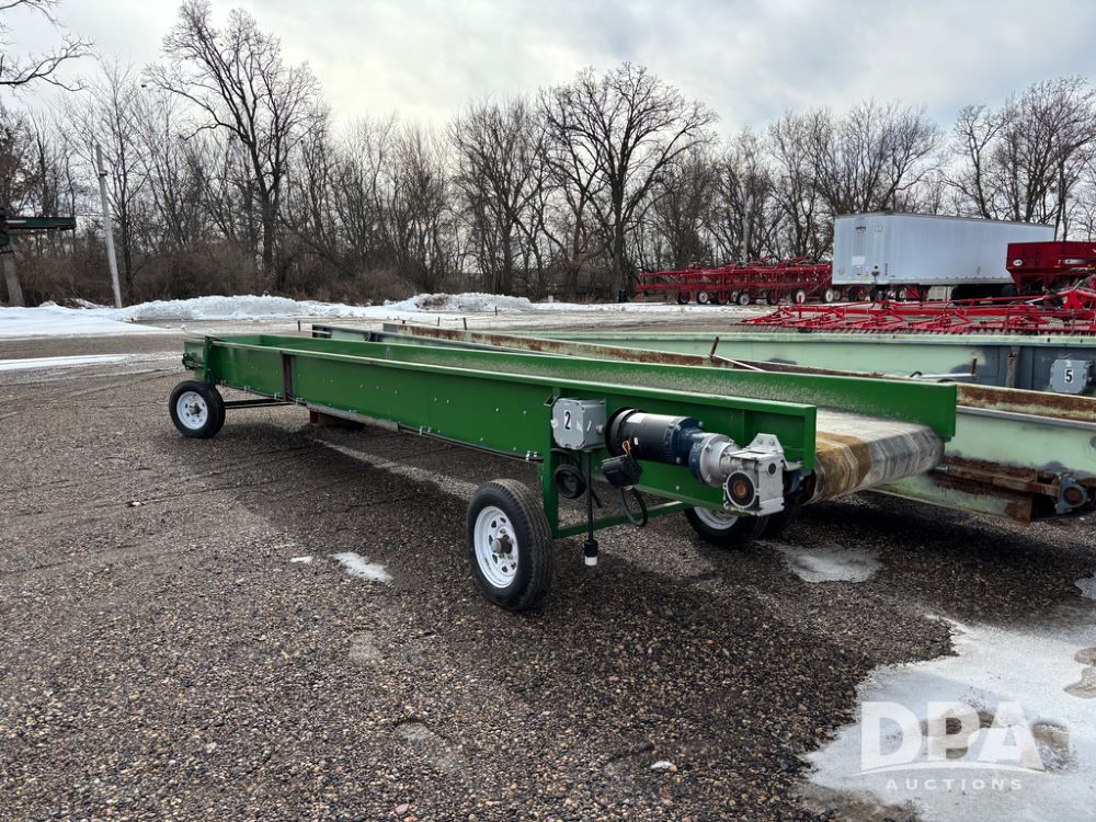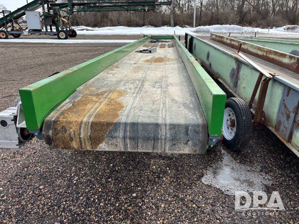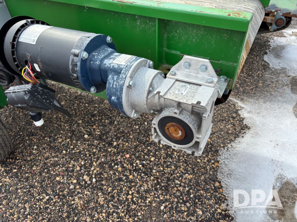 Custom Pellet Conveyor (DR13366 Unit 2), 24' 7'' X 30'' long belt conveyor, 20hp 3 phase electric motor, (motor is bad), Iron Man gear reducer, includes transport gear.