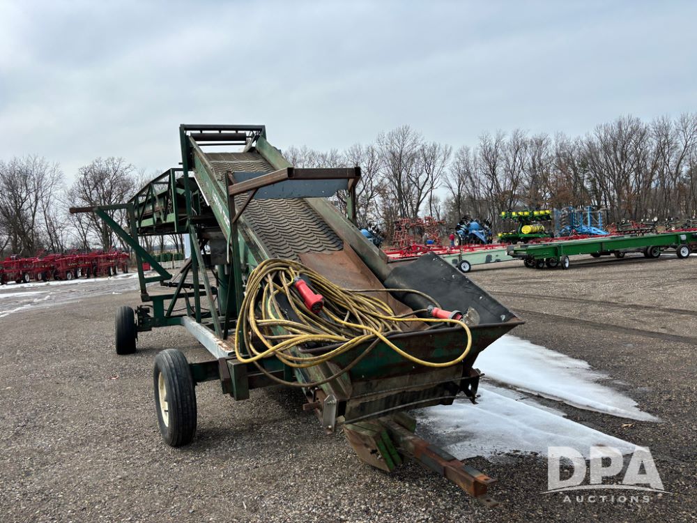 Lockwood Potato Bin Piler (DR13367), model L09139-04200 portable hydraulic potato bin piler, self contained hydraulics, 3 phase electric, 40' length, NEW belts, full control panel and transport gear.