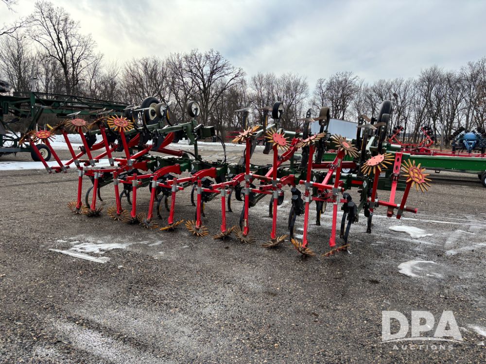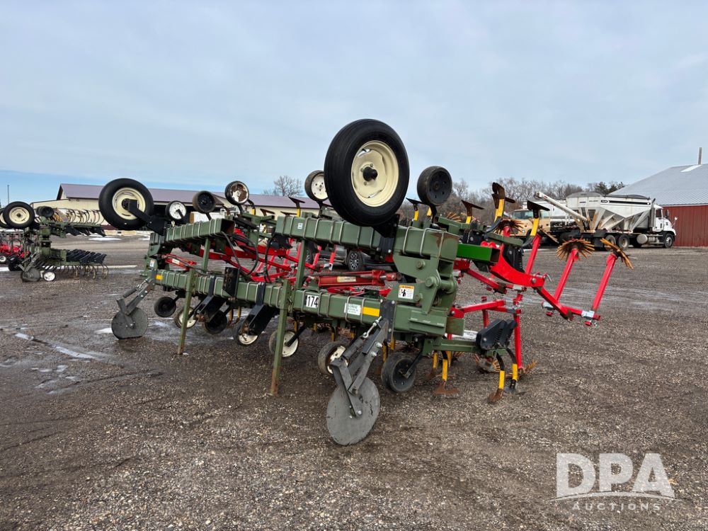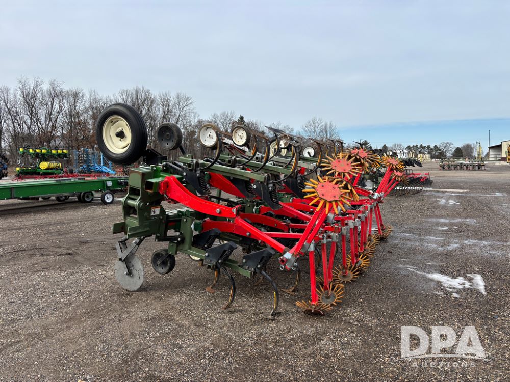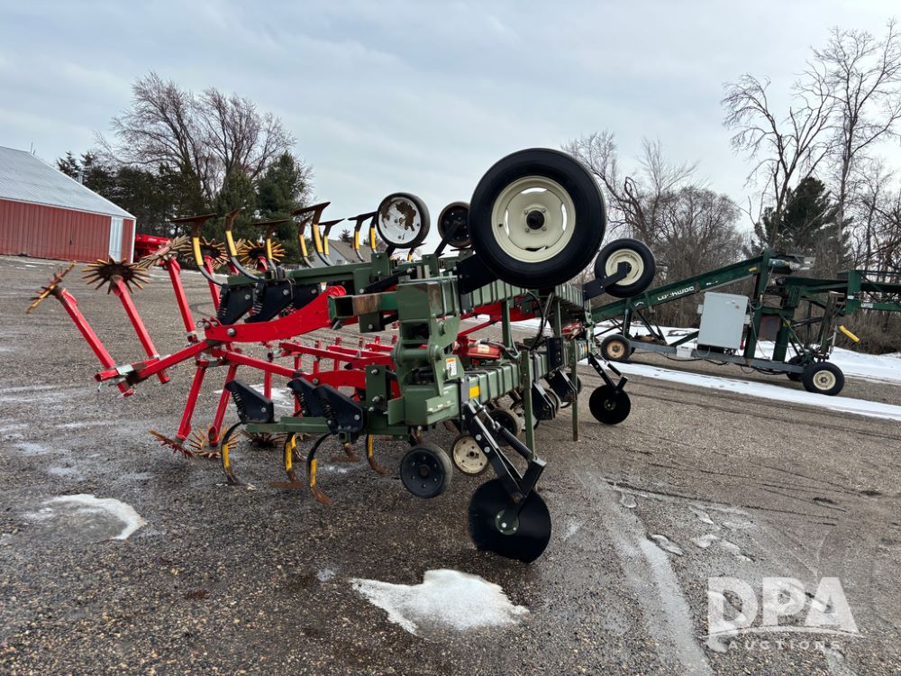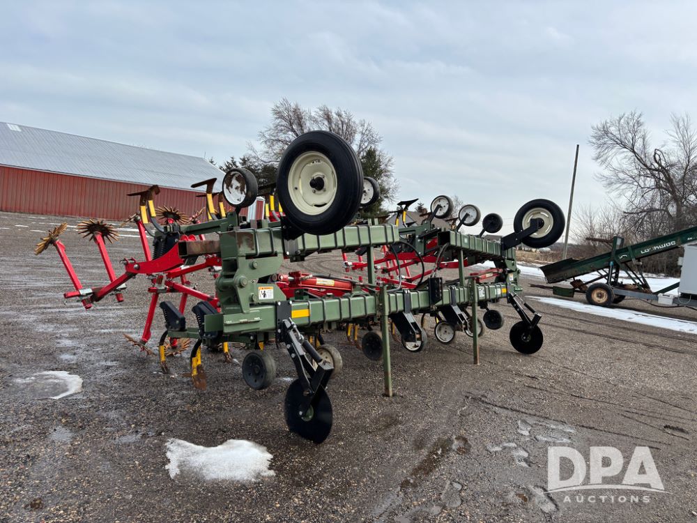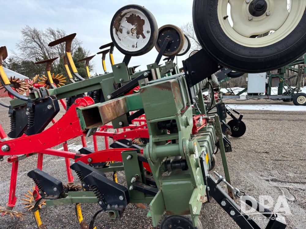 Lorenz Cultivator (DR13368 Unit 174), 12 row C shank cultivator, rear tine weeder, hydraulic fold, 3 point mount.