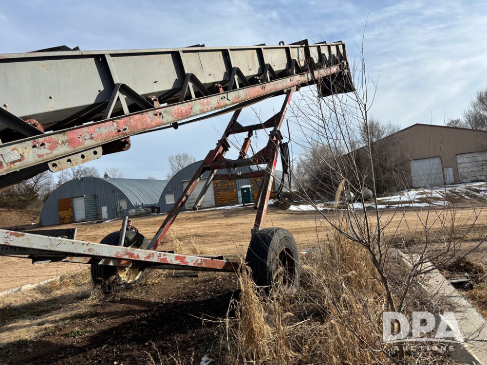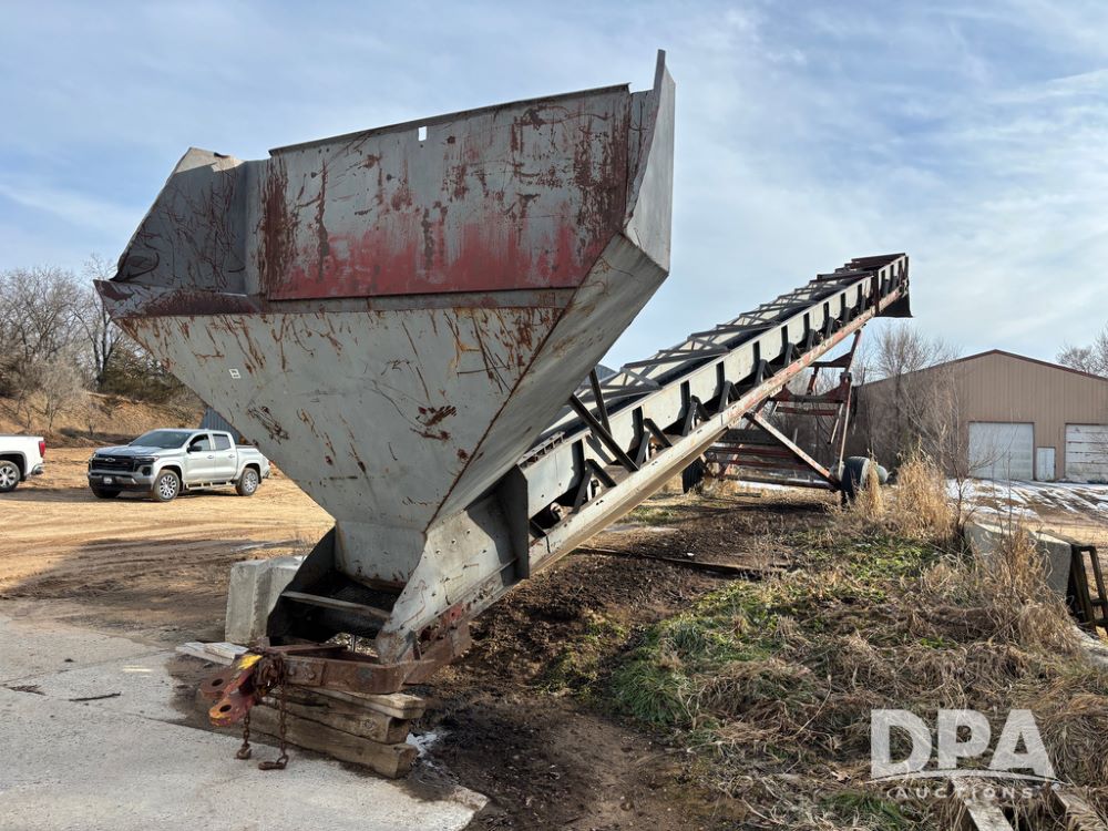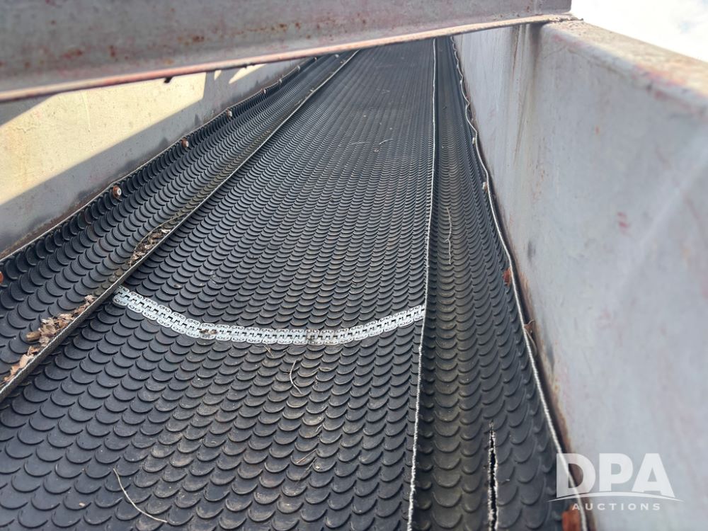 Pile Conveyor (DR13407), approximately 45' X 22'' pile conveyor, bottom hopper, cleated belt, transport gear, has been used for pellets.