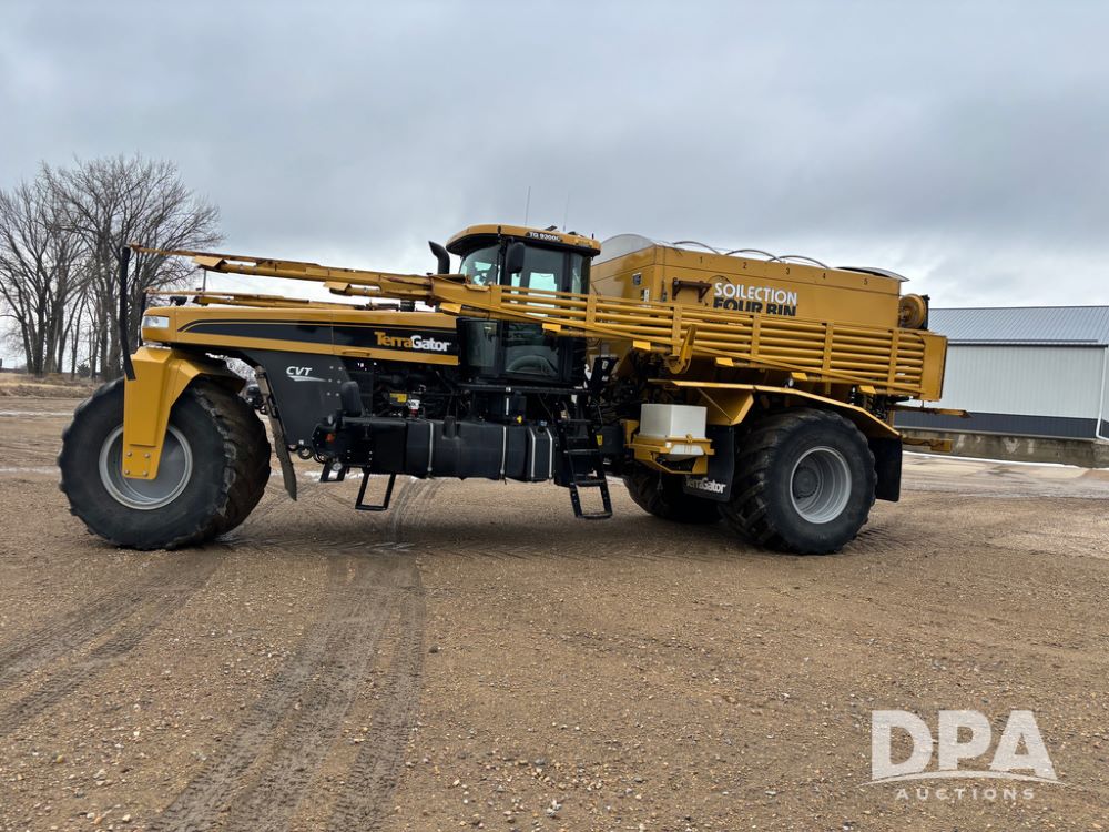 2019 Terra Gator 9300C Floater (DR13424 Unit 156), diesel engine, CVT transmission, Soil Election Four Bin dry air flow box, 70' stainless steel boom, electric roll tarp, Raven Viper IV controller, poly rinse tank, cab heat/air conditioning, buddy seat, AM/FM CD radio, 1050/50R32 tires, shows 2,765 hours.