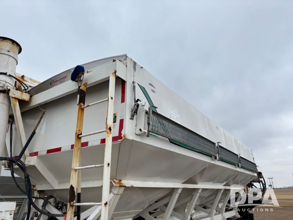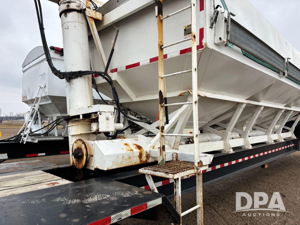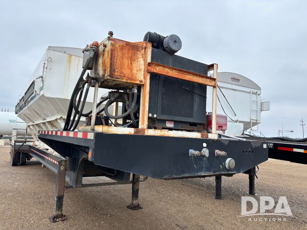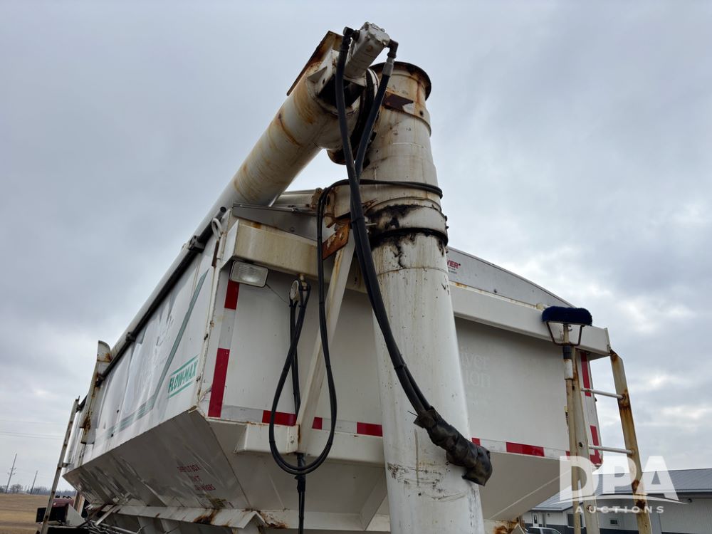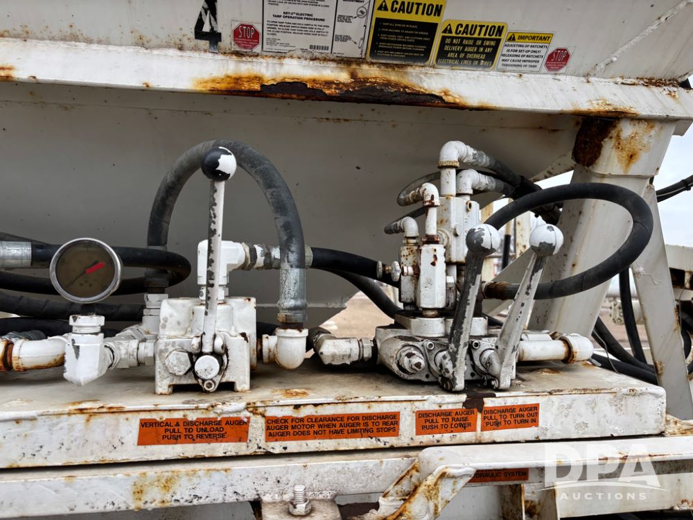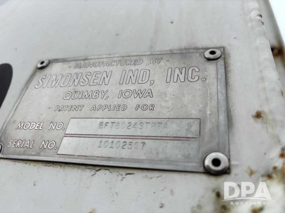 2010 B&B Dry Trailer (DR13425 Unit T100), Simonsen model BFT8024STRTA 3 compartment stainless steel hydraulic dry tender trailer, self contained hydraulics w/diesel engine, overhead discharge auger, full length catwalk, electric roll tarp, tandem axle, spring suspension, 255/70R22.5 tires.