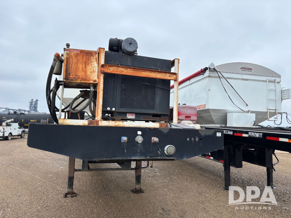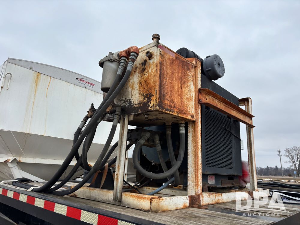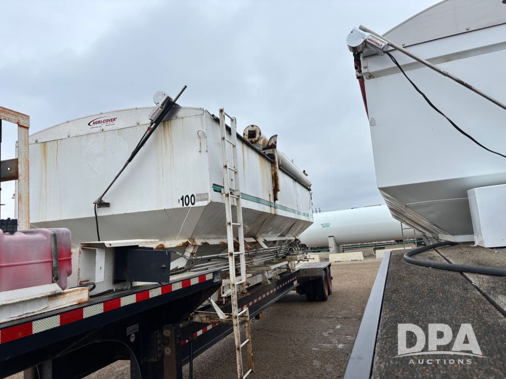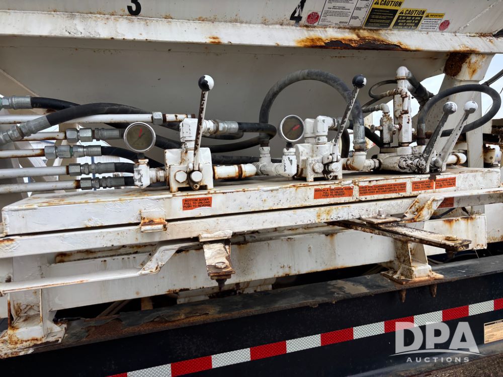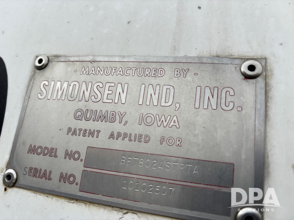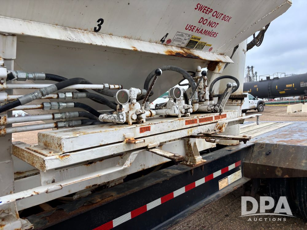 2010 B&B Dry Trailer (DR13425 Unit T100), Simonsen model BFT8024STRTA 3 compartment stainless steel hydraulic dry tender trailer, self contained hydraulics w/diesel engine, overhead discharge auger, full length catwalk, electric roll tarp, tandem axle, spring suspension, 255/70R22.5 tires.