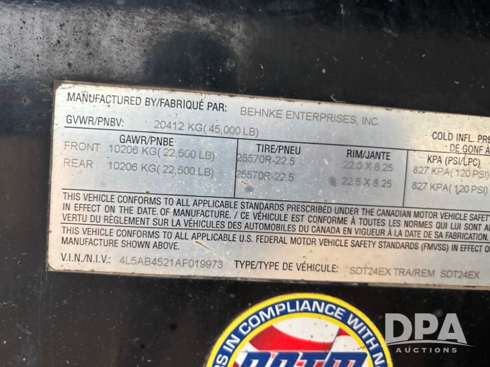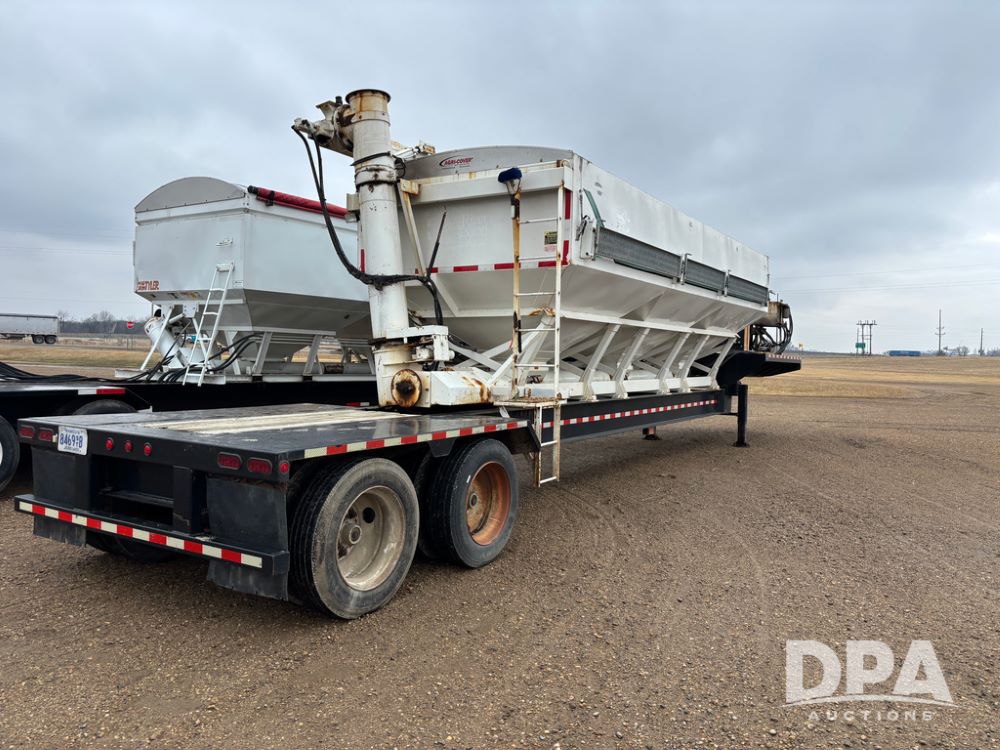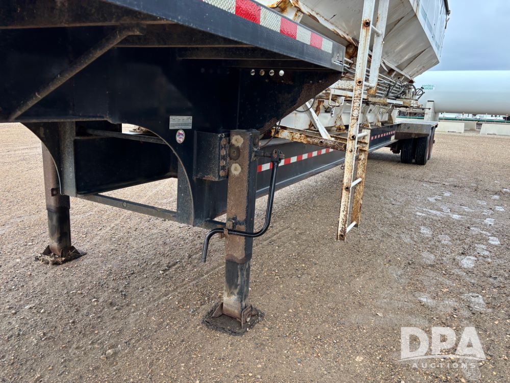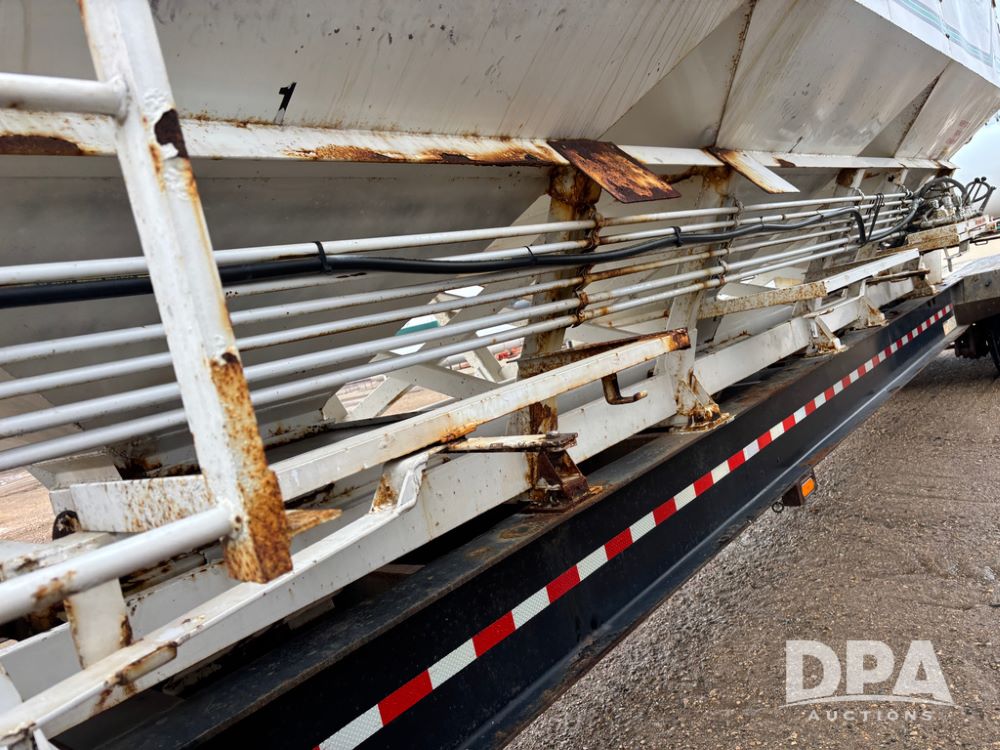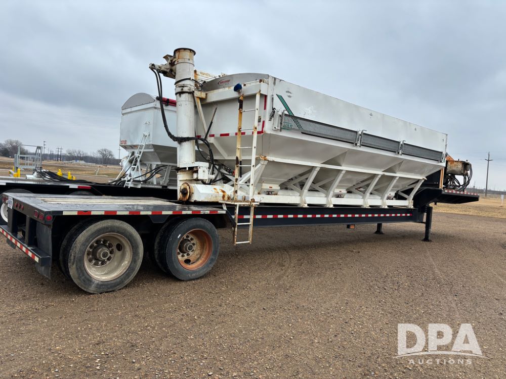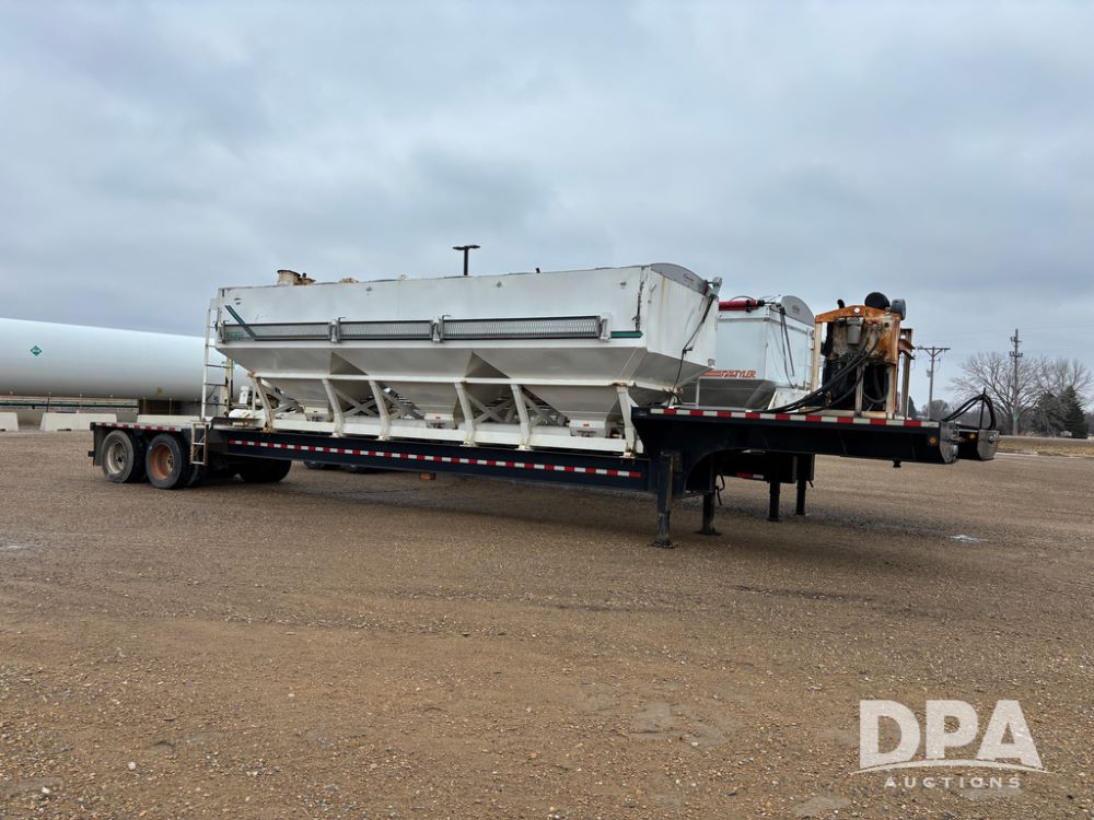 2010 B&B Dry Trailer (DR13425 Unit T100), Simonsen model BFT8024STRTA 3 compartment stainless steel hydraulic dry tender trailer, self contained hydraulics w/diesel engine, overhead discharge auger, full length catwalk, electric roll tarp, tandem axle, spring suspension, 255/70R22.5 tires.