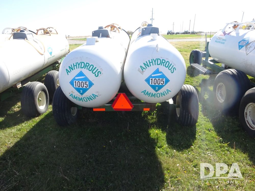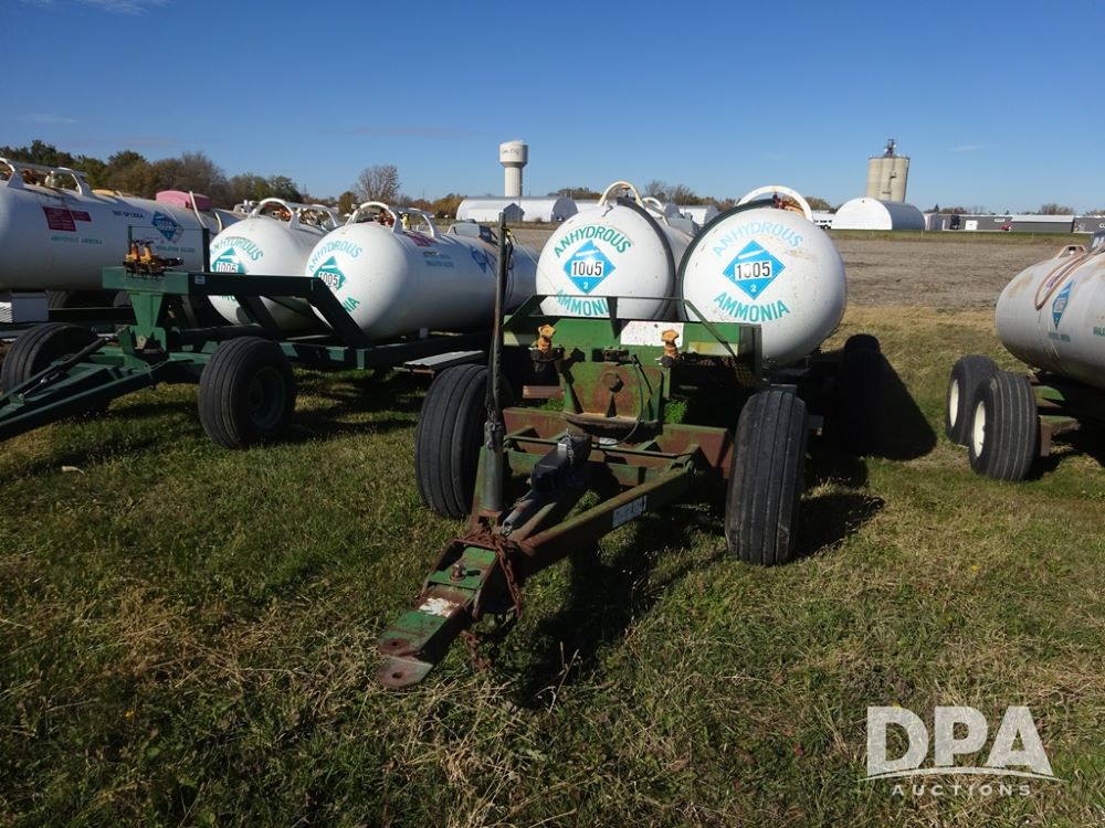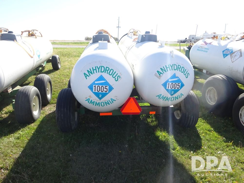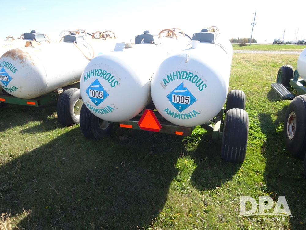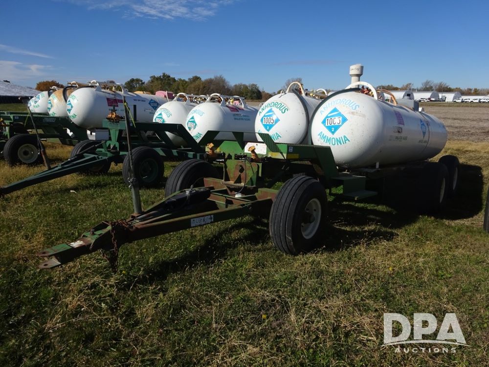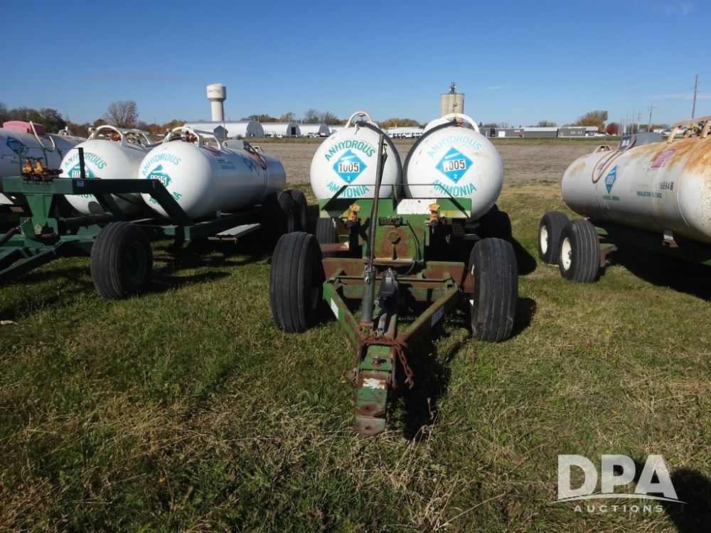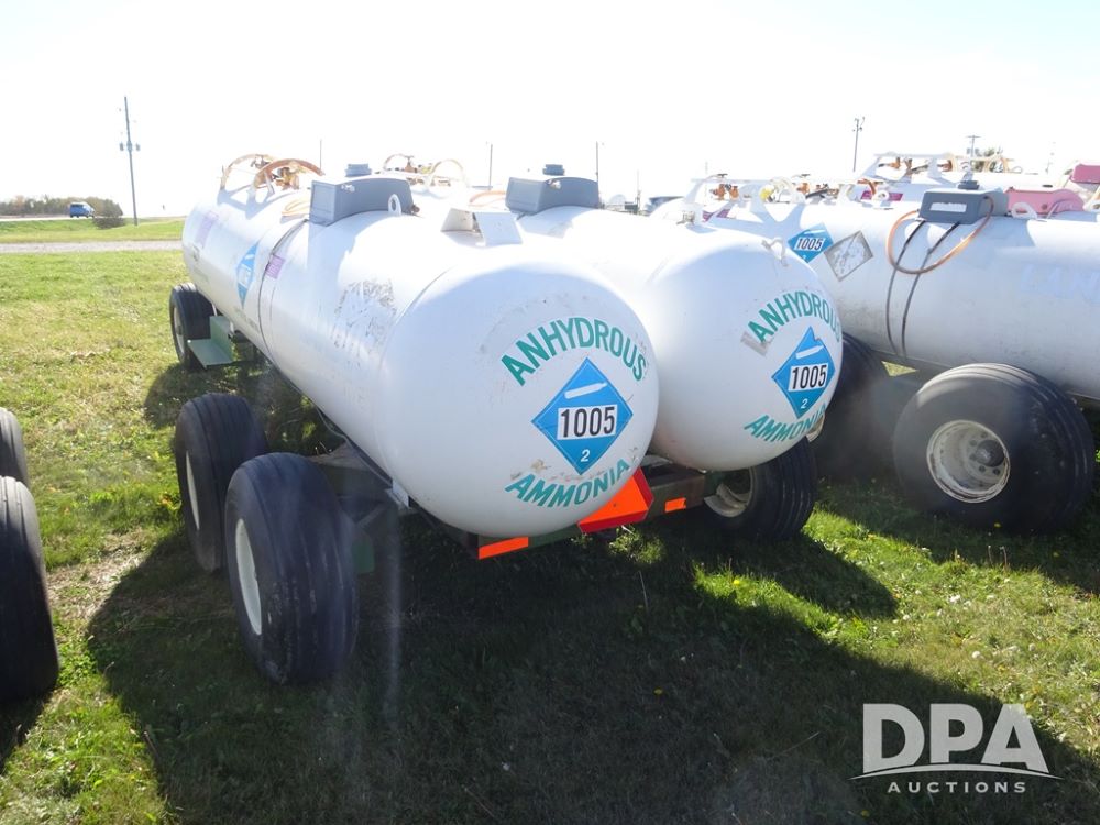 Double NH3 Nurse Tanks (PZ14151, Unit 14051), Double Master & Chemi-Trol 1000 gallon NH3 nurse tanks, top front fills, poly water tank, data plates, Dalton WNDT 1000 5th wheel tandem axle running gear, spring tongue, side steps, 12.5L-15FI front flotation tires, 14L-16.1SL rear flotation tires.
