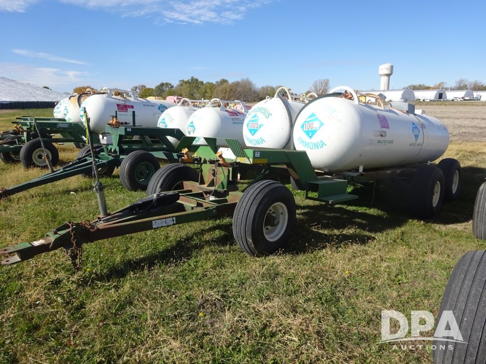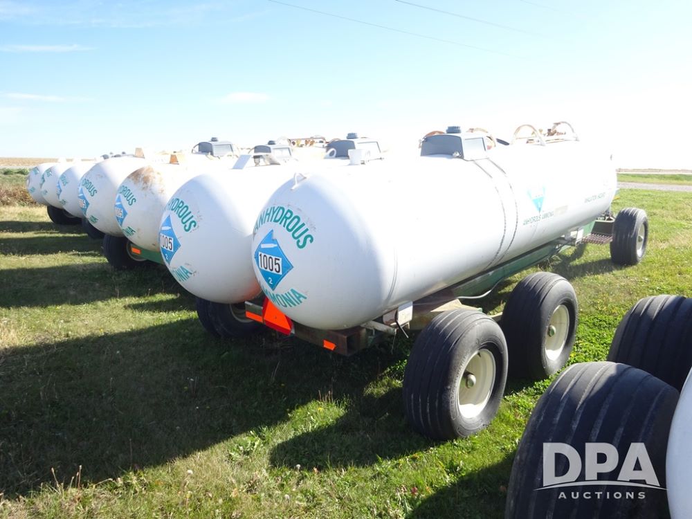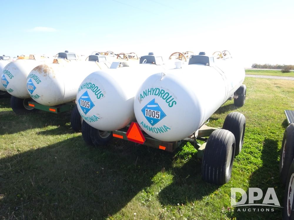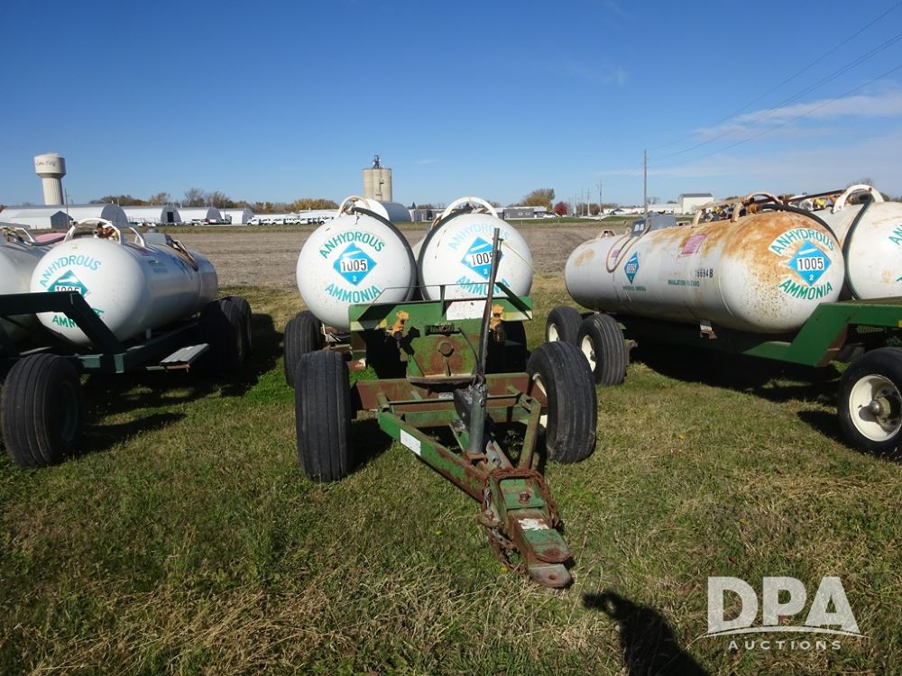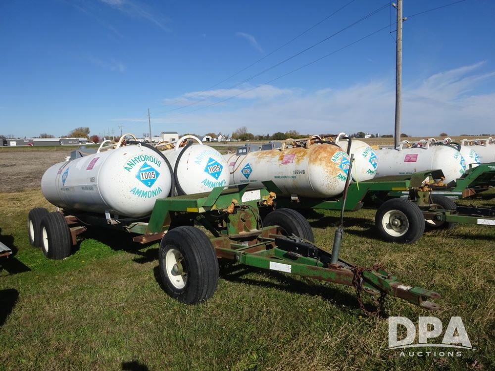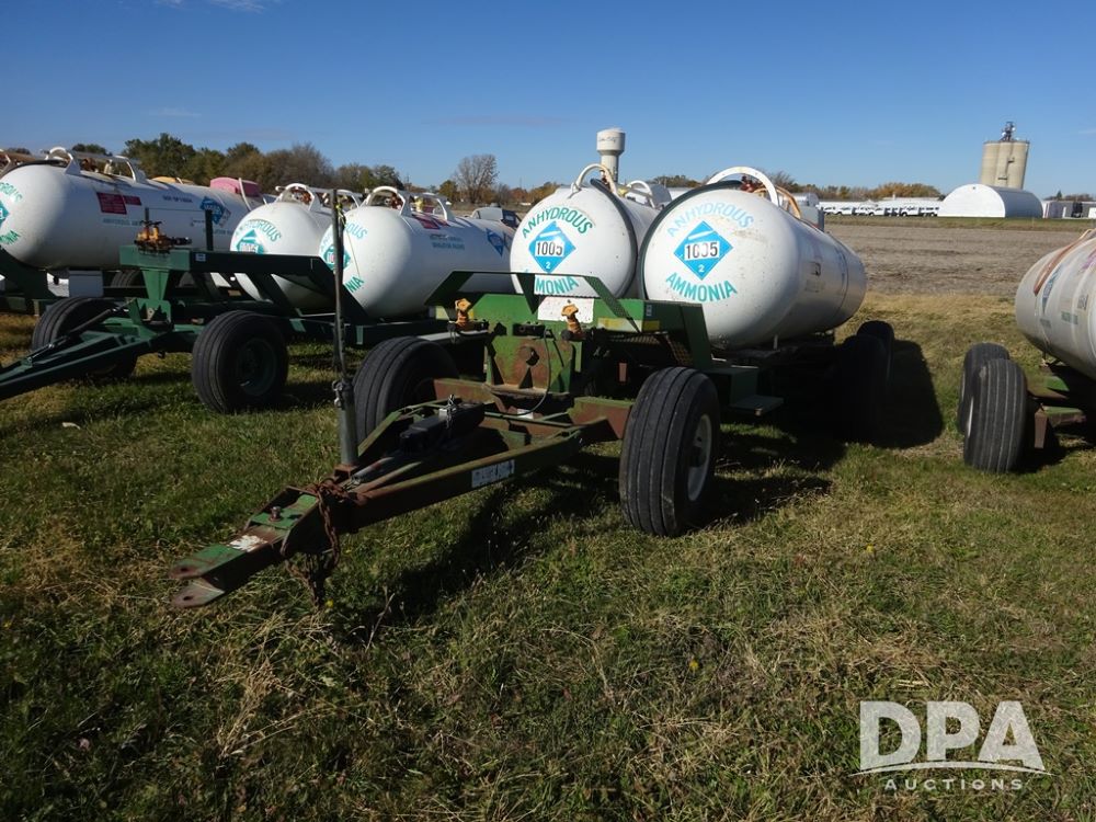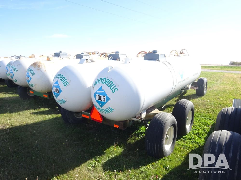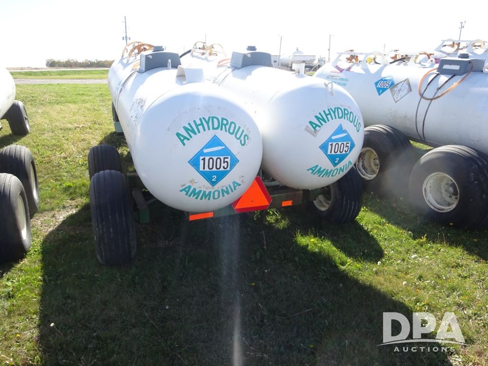 Double NH3 Nurse Tanks (PZ14151, Unit 14051), Double Master & Chemi-Trol 1000 gallon NH3 nurse tanks, top front fills, poly water tank, data plates, Dalton WNDT 1000 5th wheel tandem axle running gear, spring tongue, side steps, 12.5L-15FI front flotation tires, 14L-16.1SL rear flotation tires.