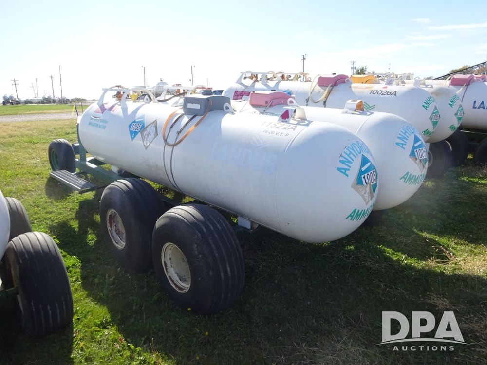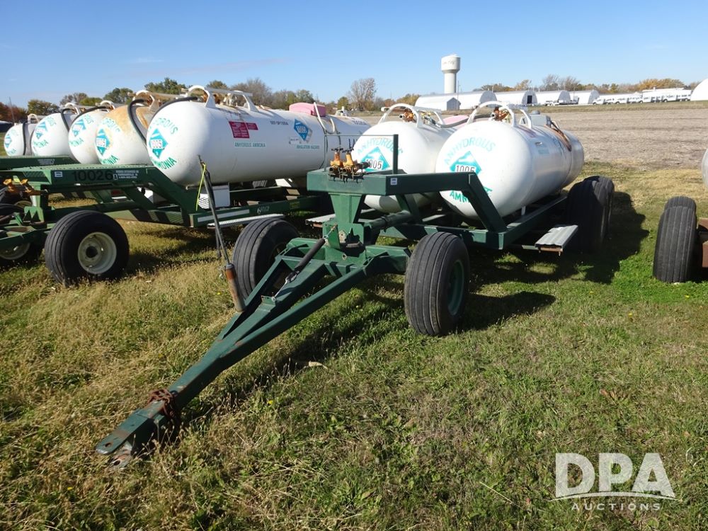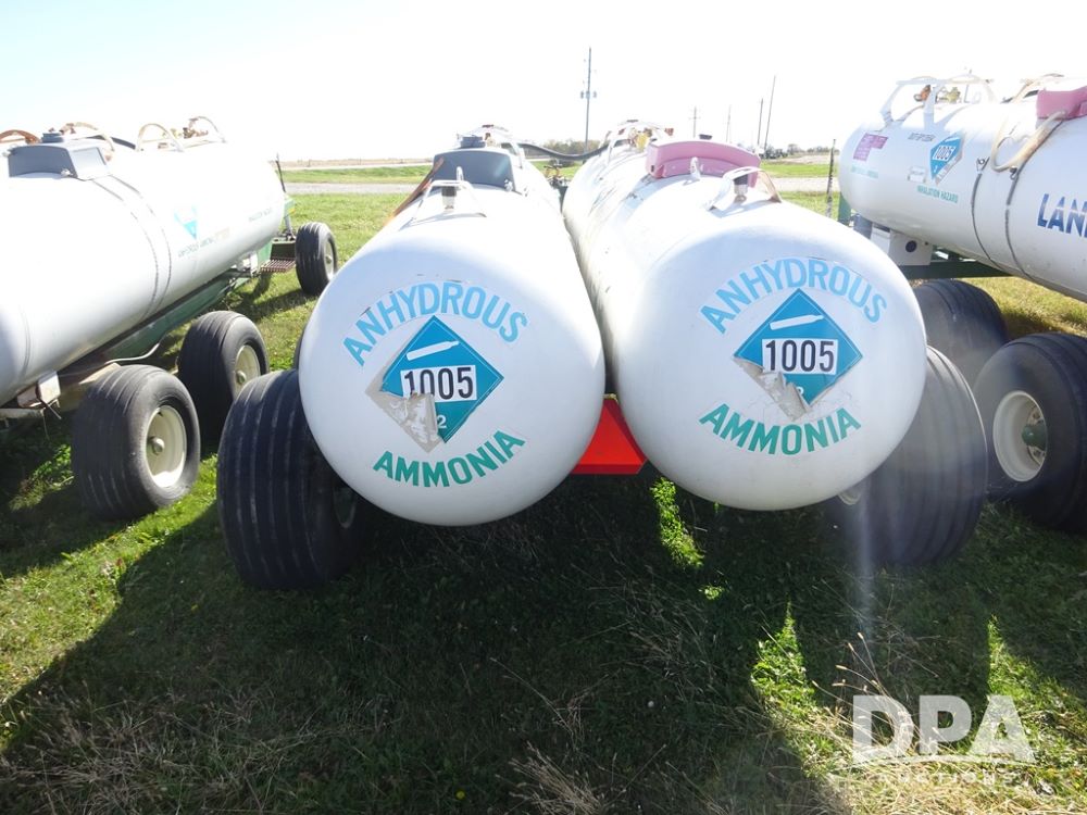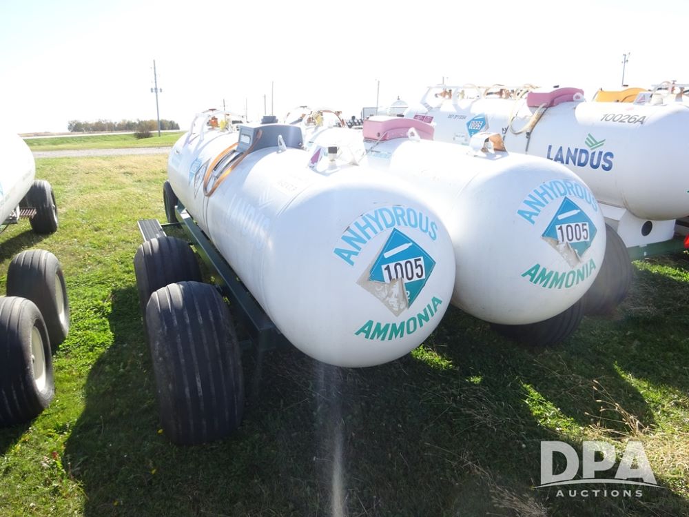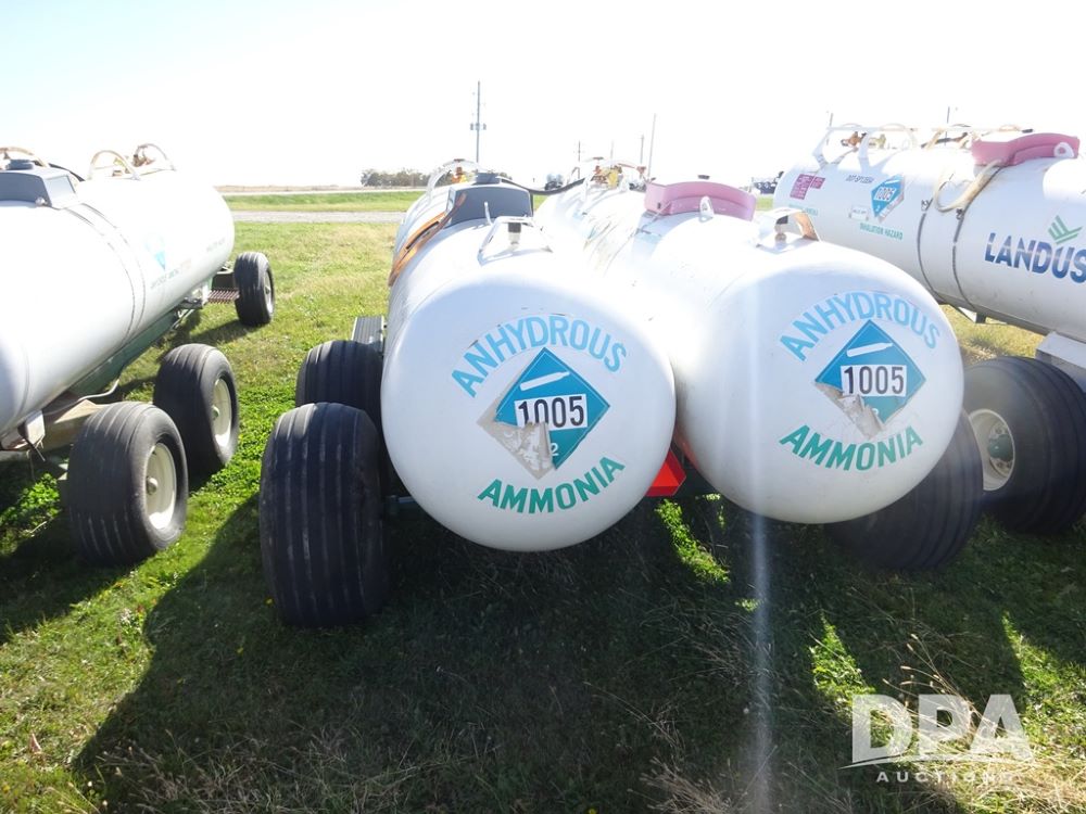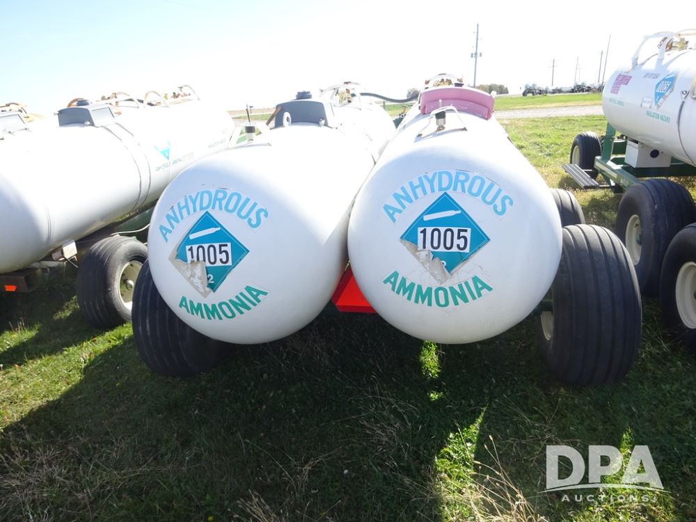 Double NH3 Nurse Tanks (PZ14152, Unit 11522), Double 1000 gallon NH3 nurse tanks, top front fills, poly water tank, data plates, 6-20 VPT, Vosberg 6WLGP 5th wheel tandem axle running gear, spring tongue, side steps, 12.5L-15FI front flotation tires, 16.5L-16.1 rear flotation tires.