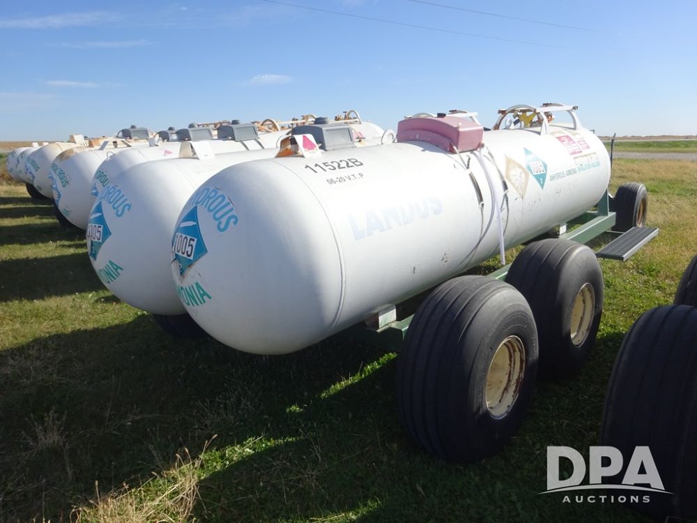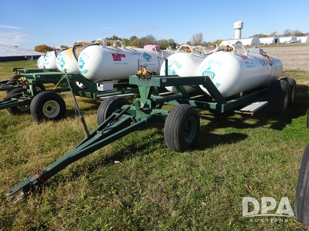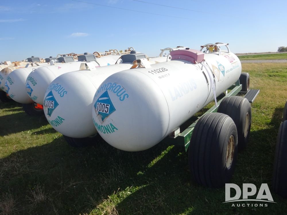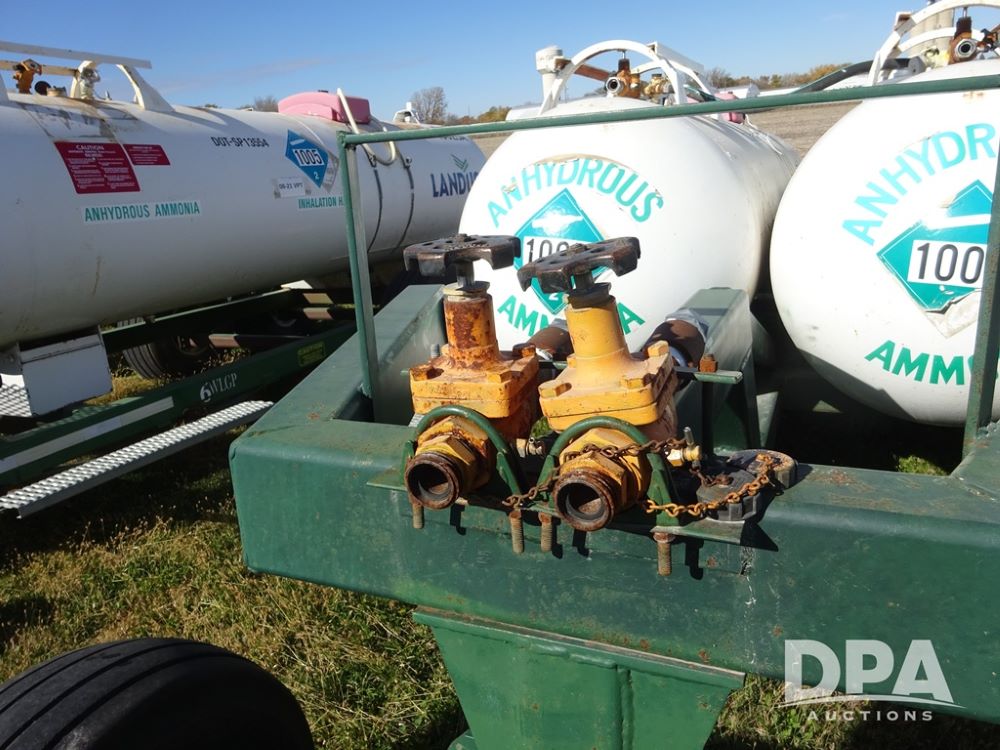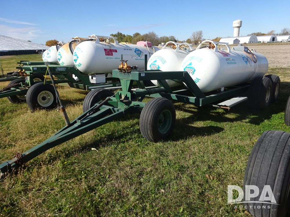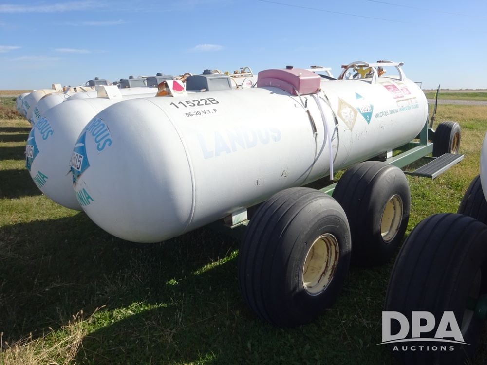 Double NH3 Nurse Tanks (PZ14152, Unit 11522), Double 1000 gallon NH3 nurse tanks, top front fills, poly water tank, data plates, 6-20 VPT, Vosberg 6WLGP 5th wheel tandem axle running gear, spring tongue, side steps, 12.5L-15FI front flotation tires, 16.5L-16.1 rear flotation tires.