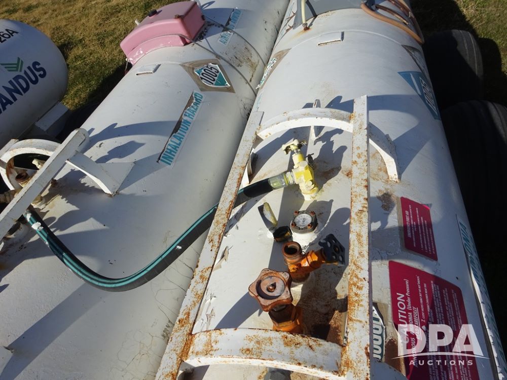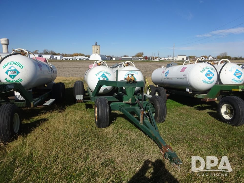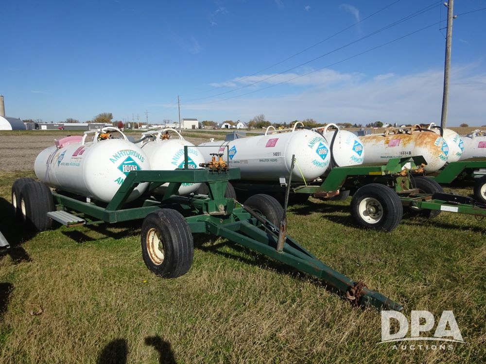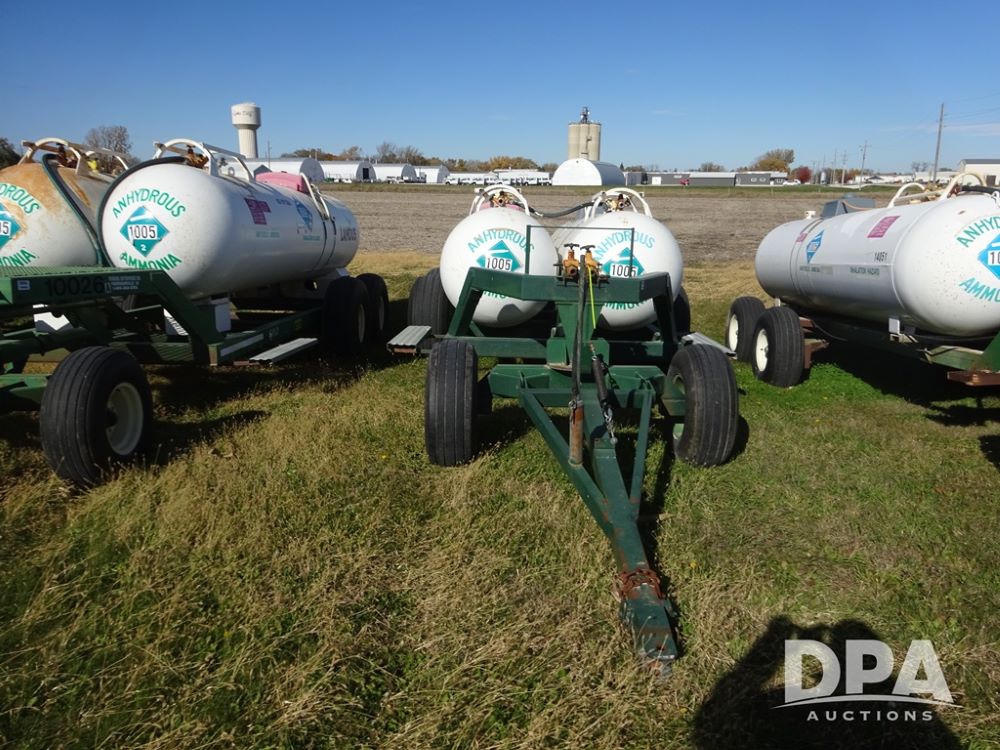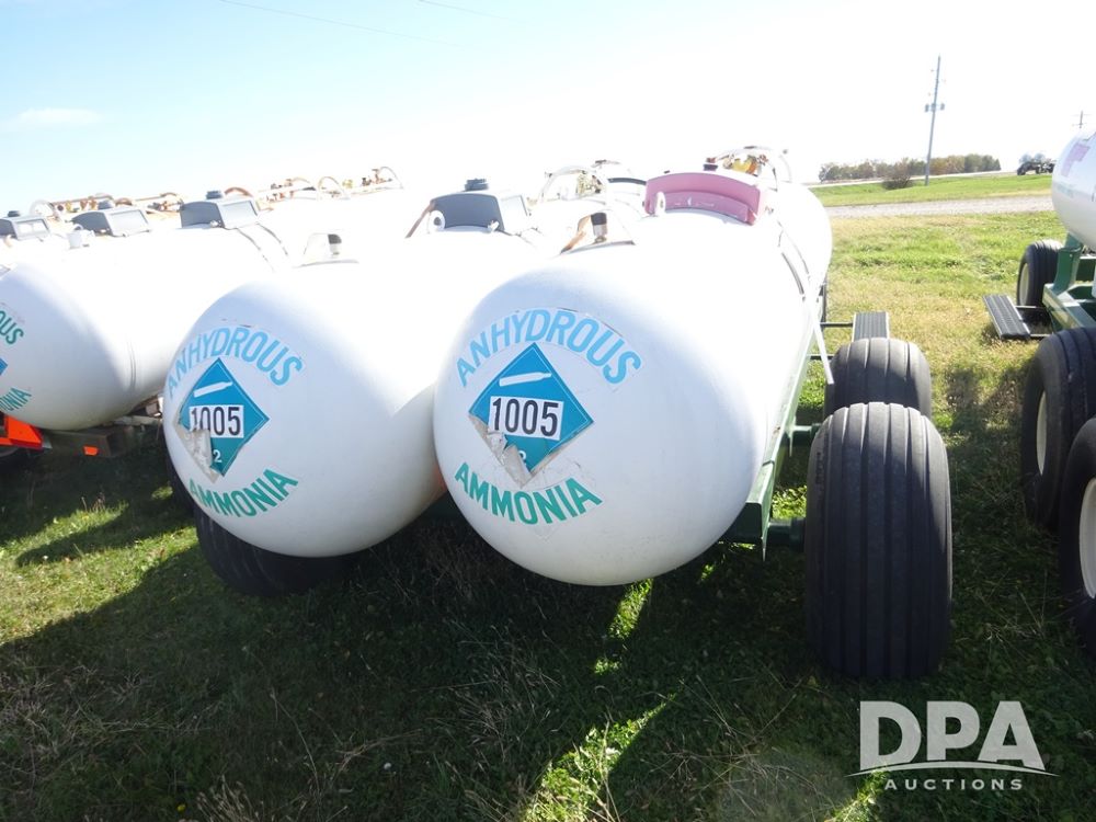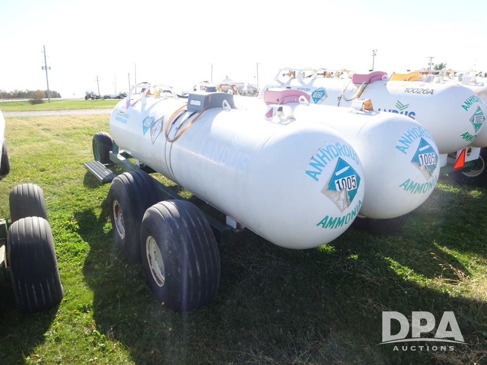 Double NH3 Nurse Tanks (PZ14152, Unit 11522), Double 1000 gallon NH3 nurse tanks, top front fills, poly water tank, data plates, 6-20 VPT, Vosberg 6WLGP 5th wheel tandem axle running gear, spring tongue, side steps, 12.5L-15FI front flotation tires, 16.5L-16.1 rear flotation tires.
