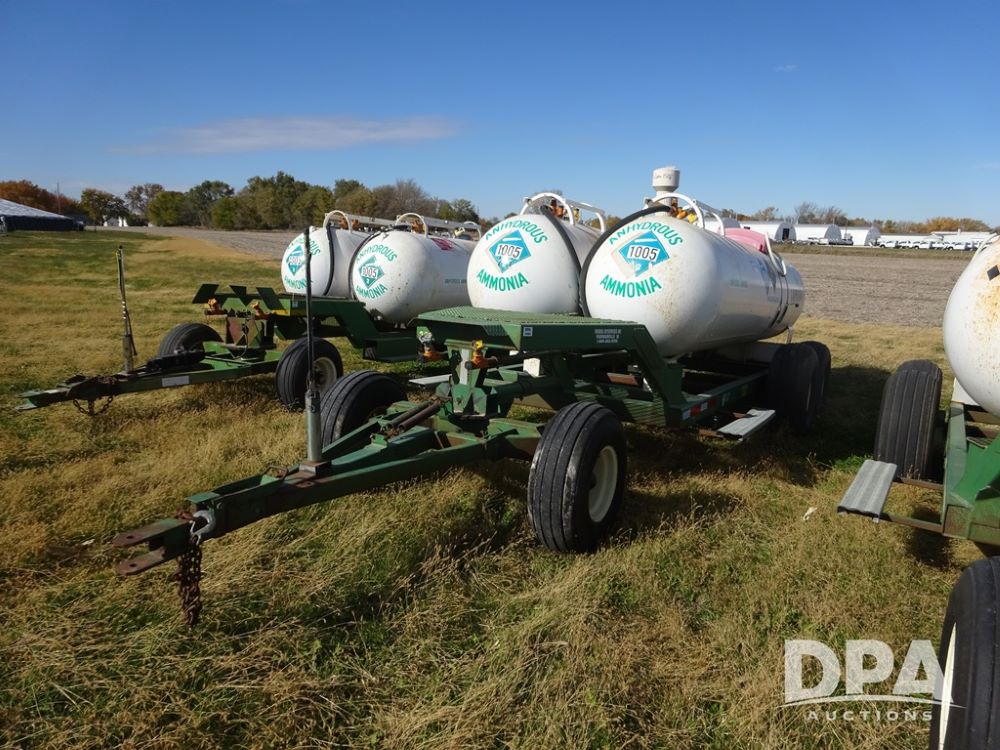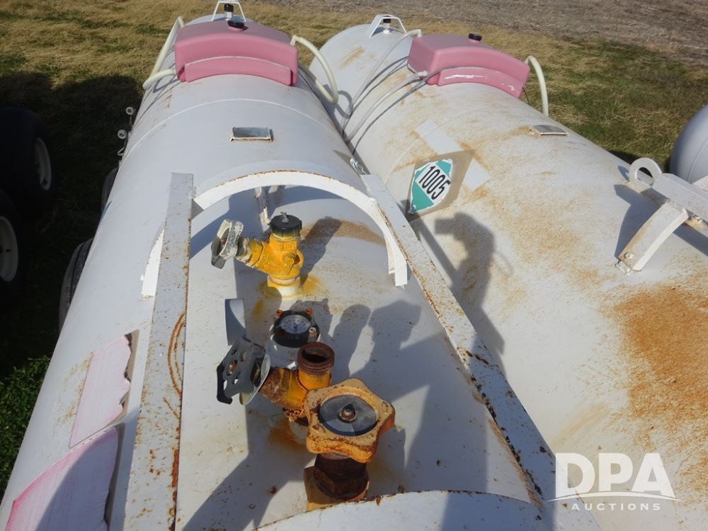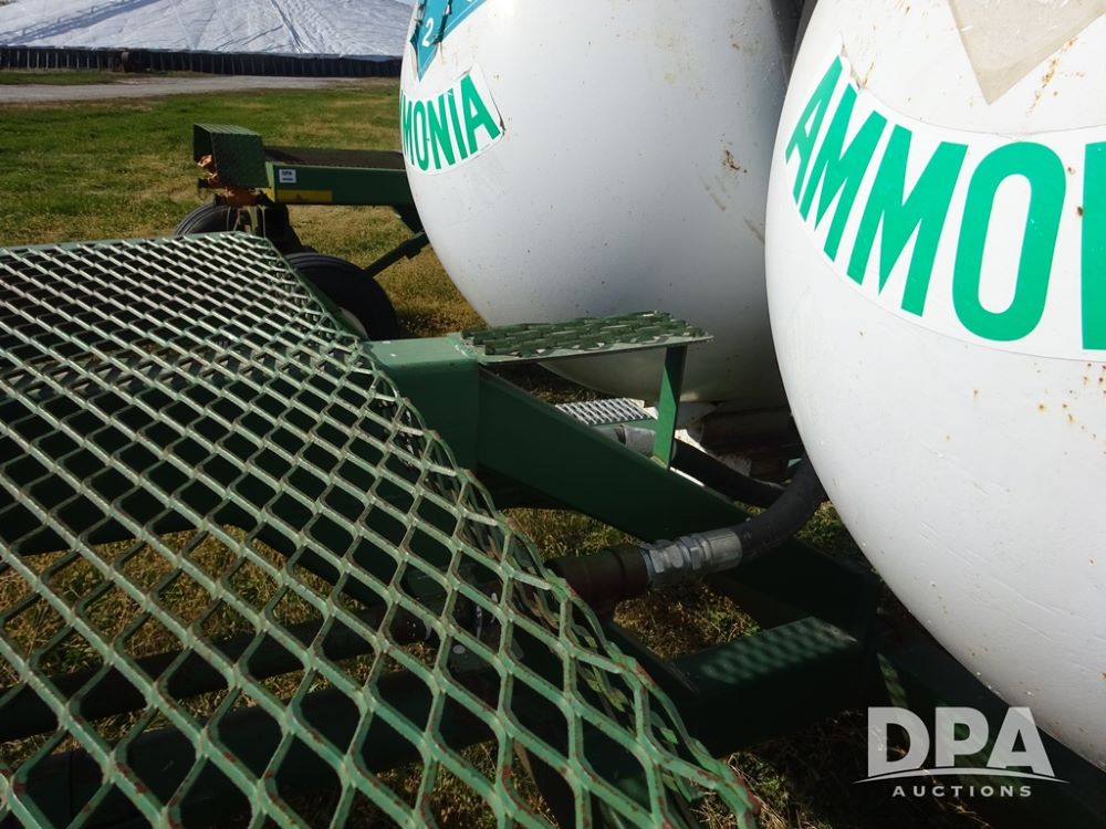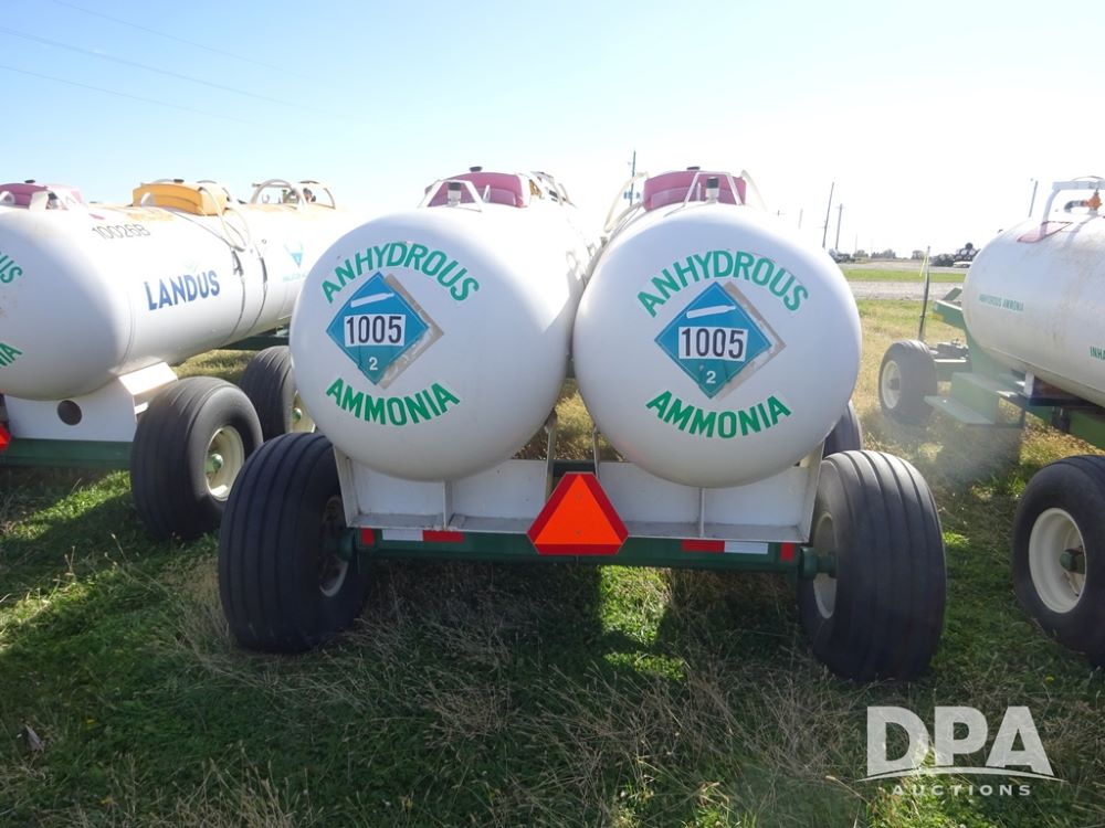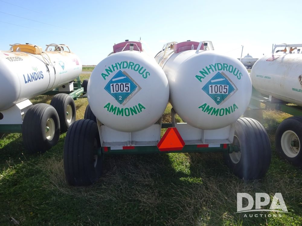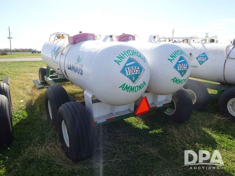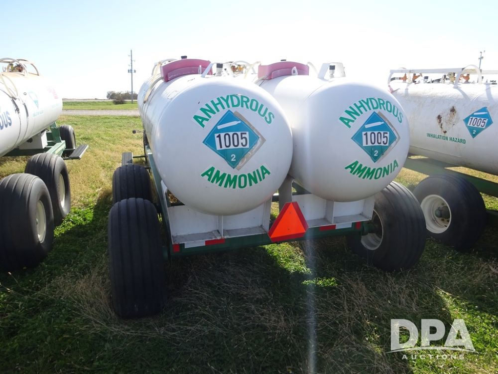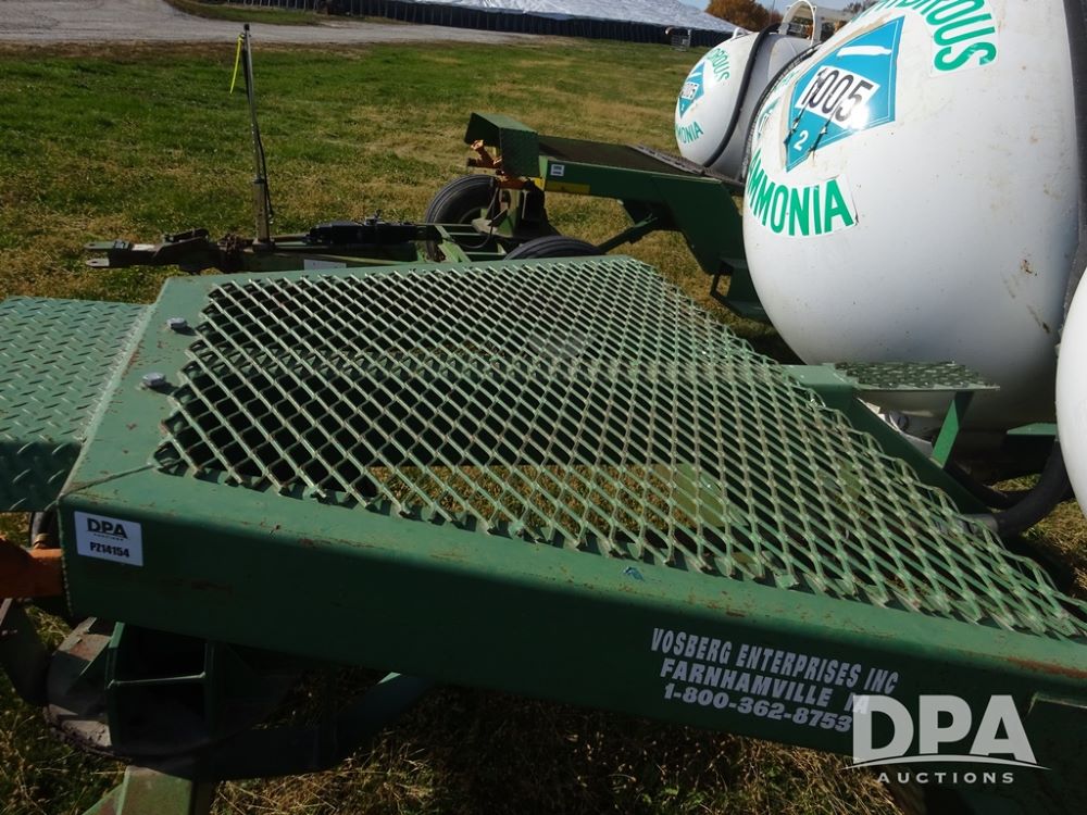 Double NH3 Nurse Tanks (PZ14154, Unit 10030), Double Trinity 1000 gallon NH3 nurse tanks, top front fills, poly water tank, data plates, 8-21 VPT, Vosberg 6WLGP 5th wheel tandem axle running gear, spring tongue, side steps, 12.5L-15SL front flotation tires, 16.5L-16.1SL rear flotation tires.