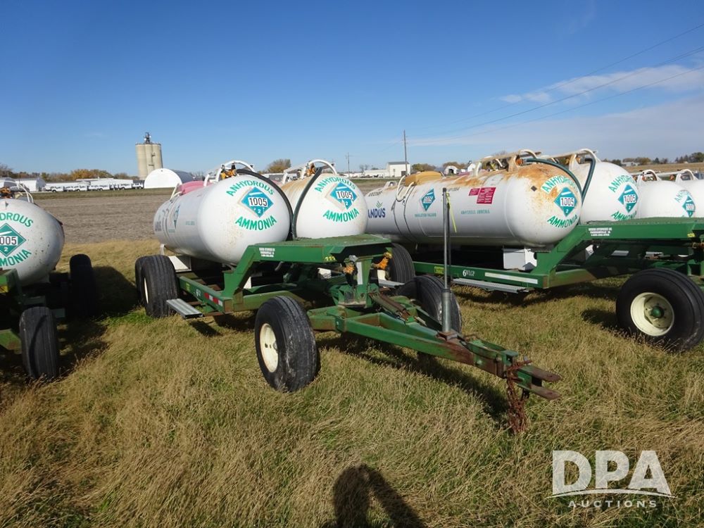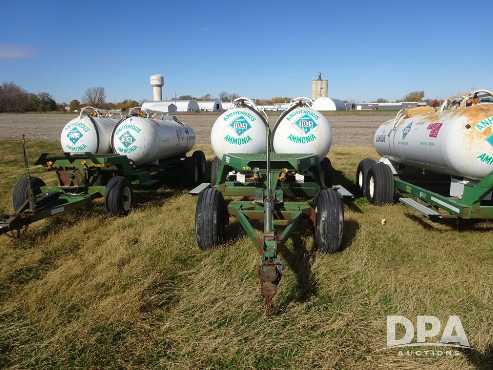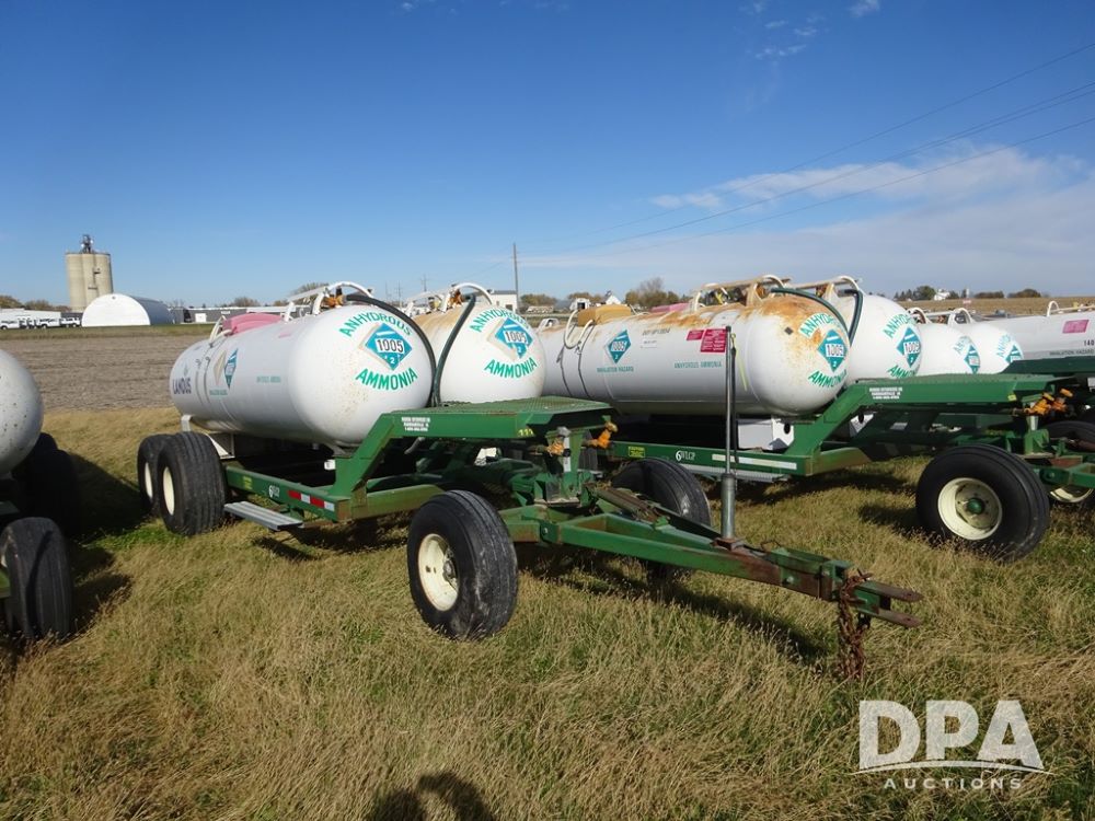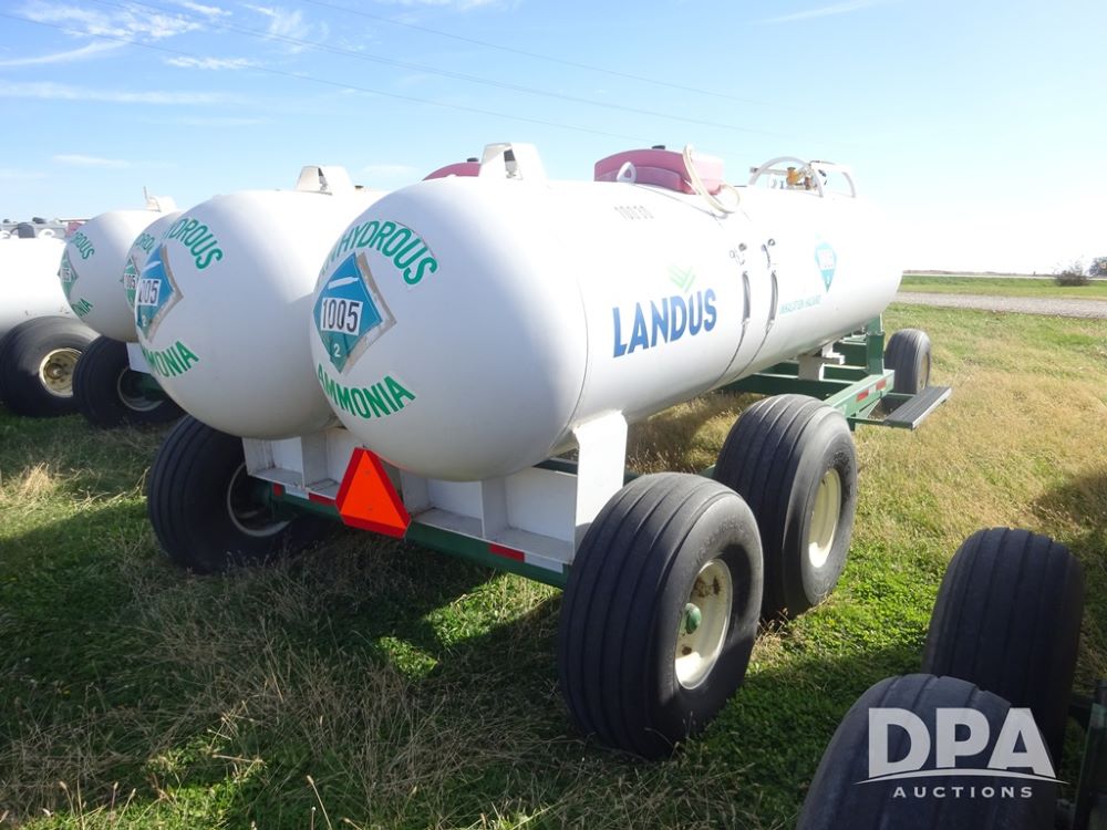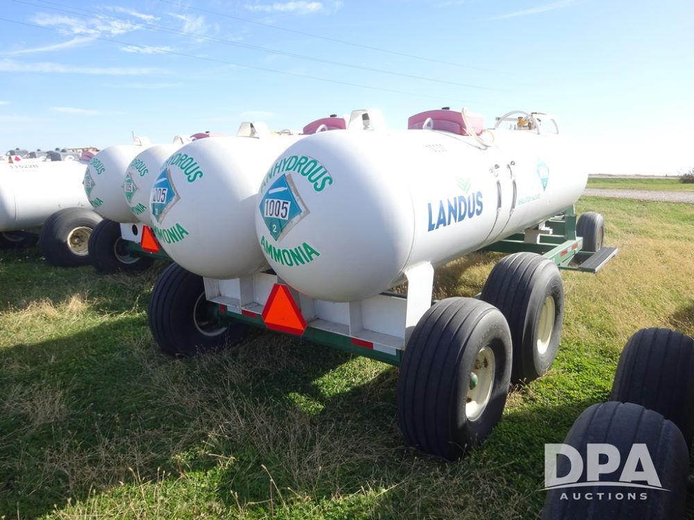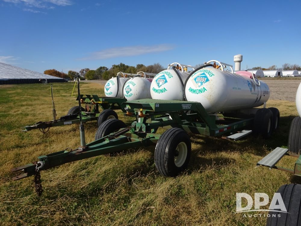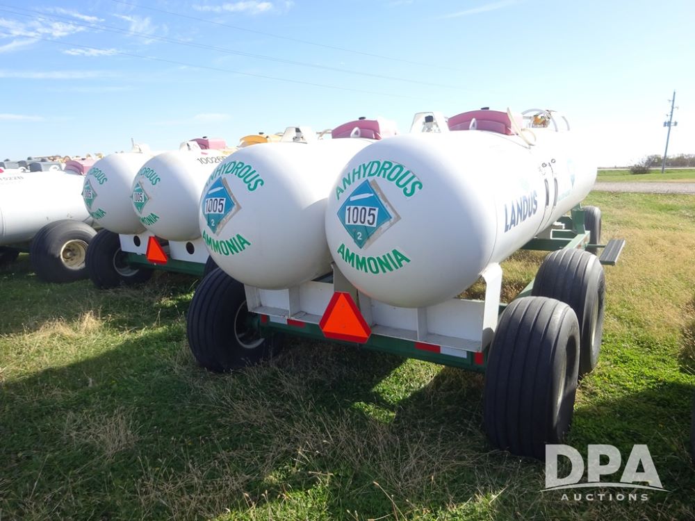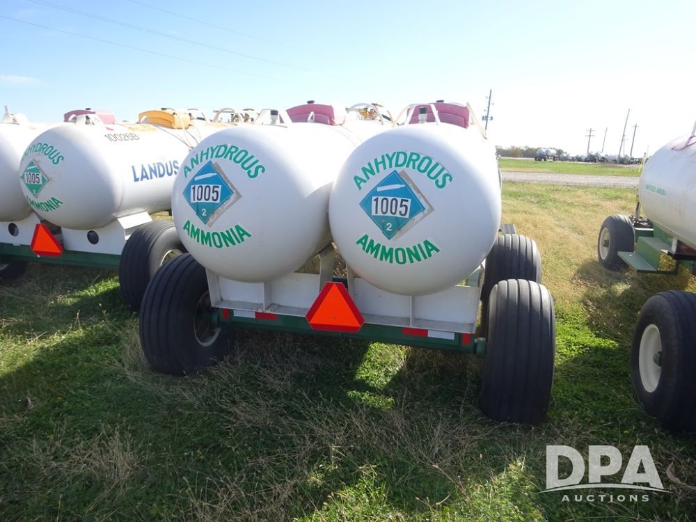 Double NH3 Nurse Tanks (PZ14154, Unit 10030), Double Trinity 1000 gallon NH3 nurse tanks, top front fills, poly water tank, data plates, 8-21 VPT, Vosberg 6WLGP 5th wheel tandem axle running gear, spring tongue, side steps, 12.5L-15SL front flotation tires, 16.5L-16.1SL rear flotation tires.