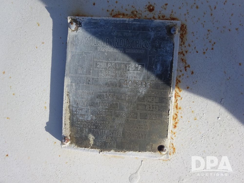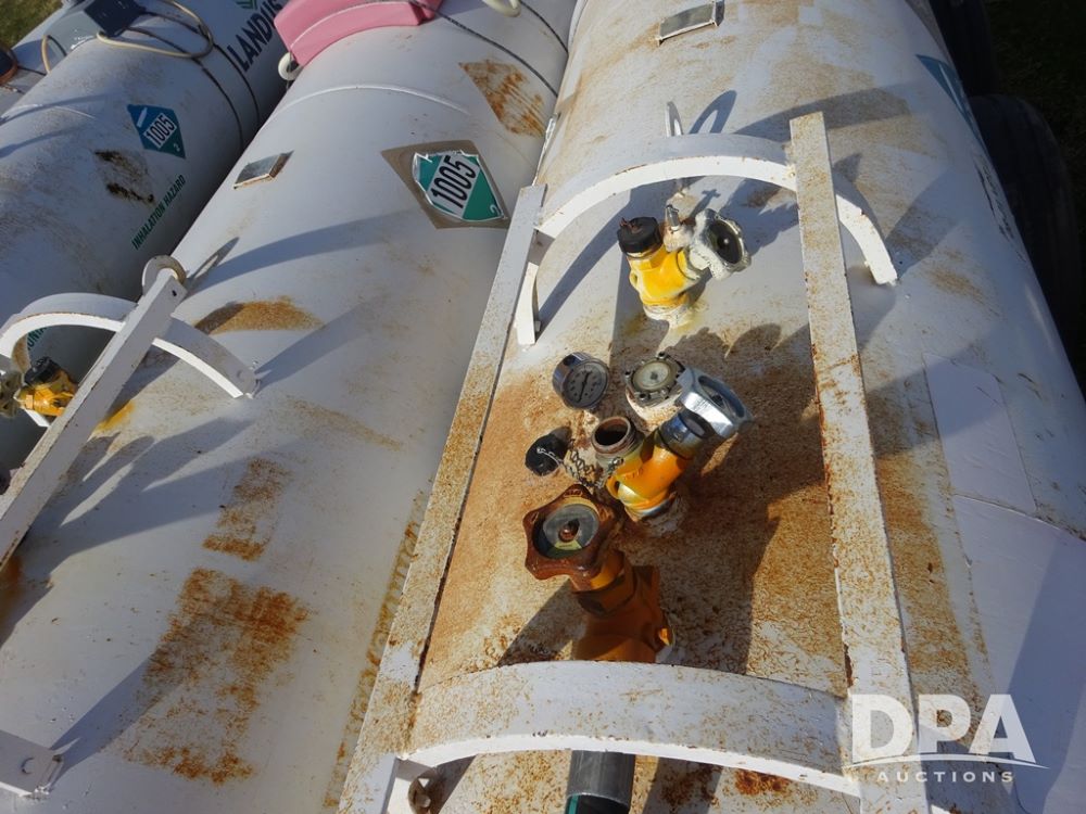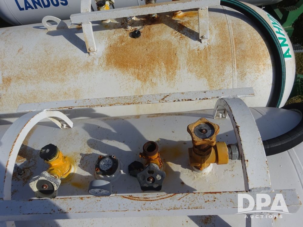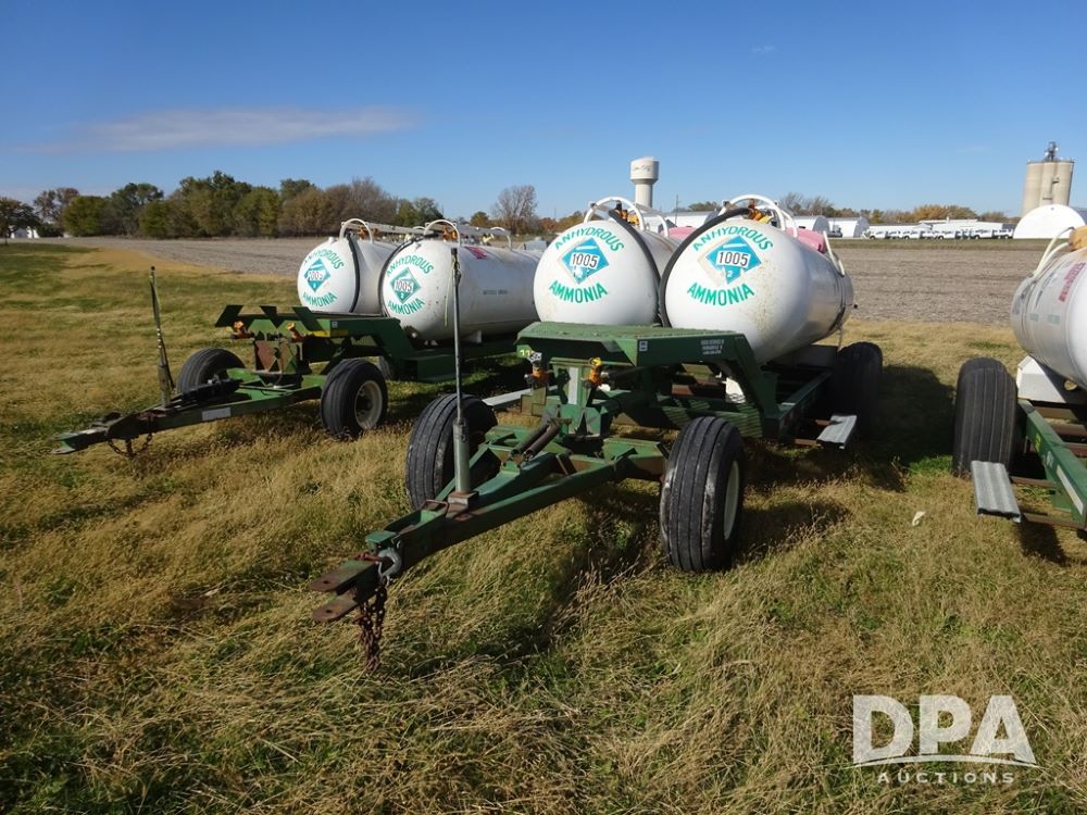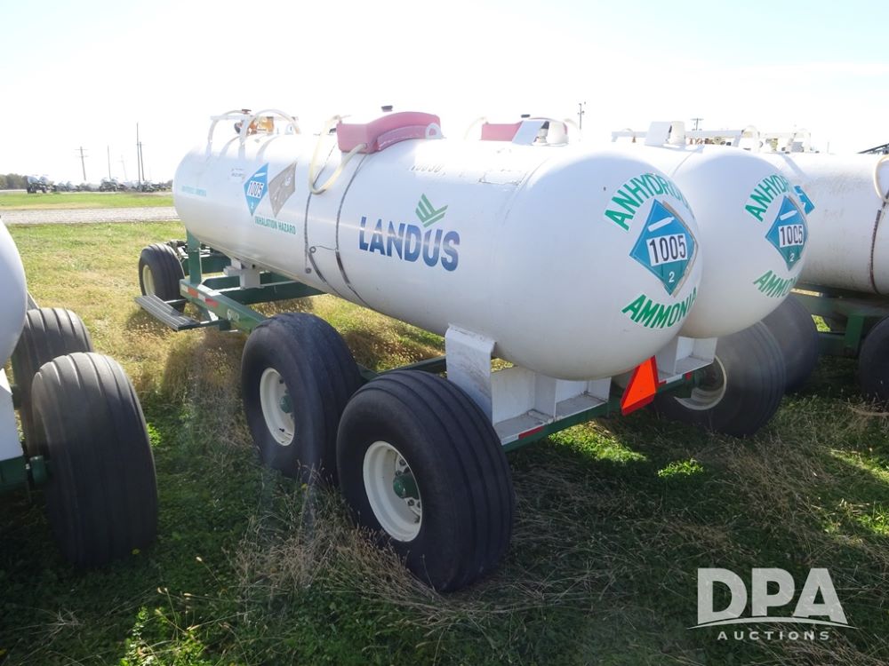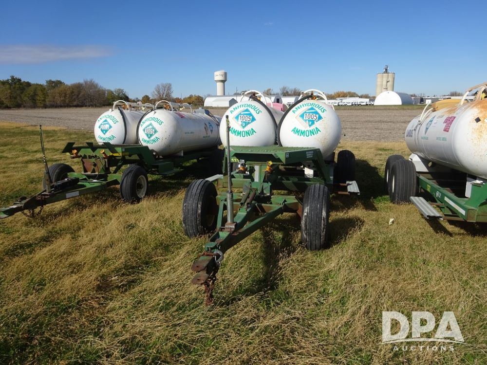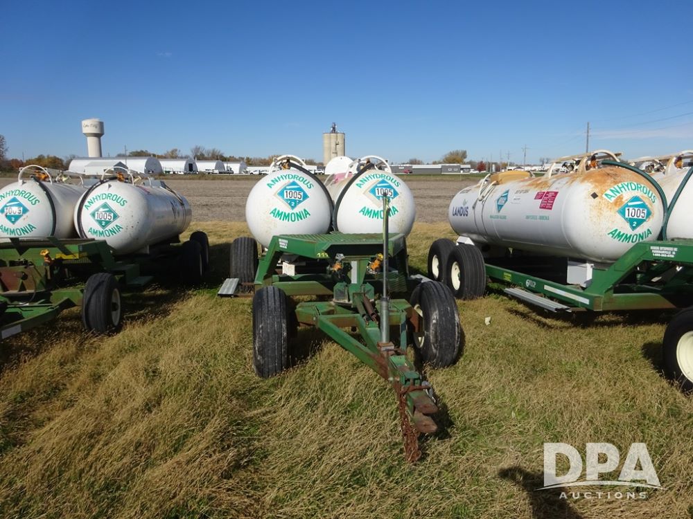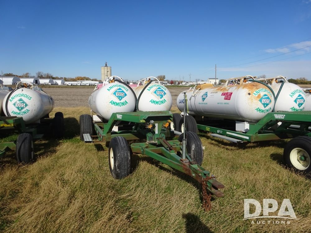 Double NH3 Nurse Tanks (PZ14154, Unit 10030), Double Trinity 1000 gallon NH3 nurse tanks, top front fills, poly water tank, data plates, 8-21 VPT, Vosberg 6WLGP 5th wheel tandem axle running gear, spring tongue, side steps, 12.5L-15SL front flotation tires, 16.5L-16.1SL rear flotation tires.