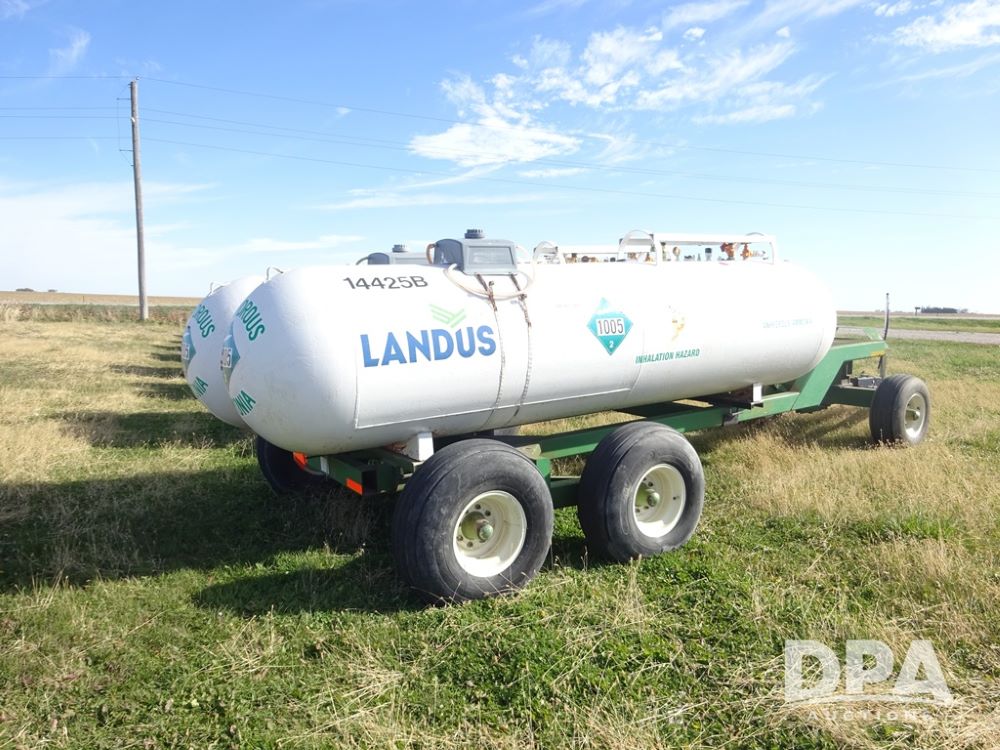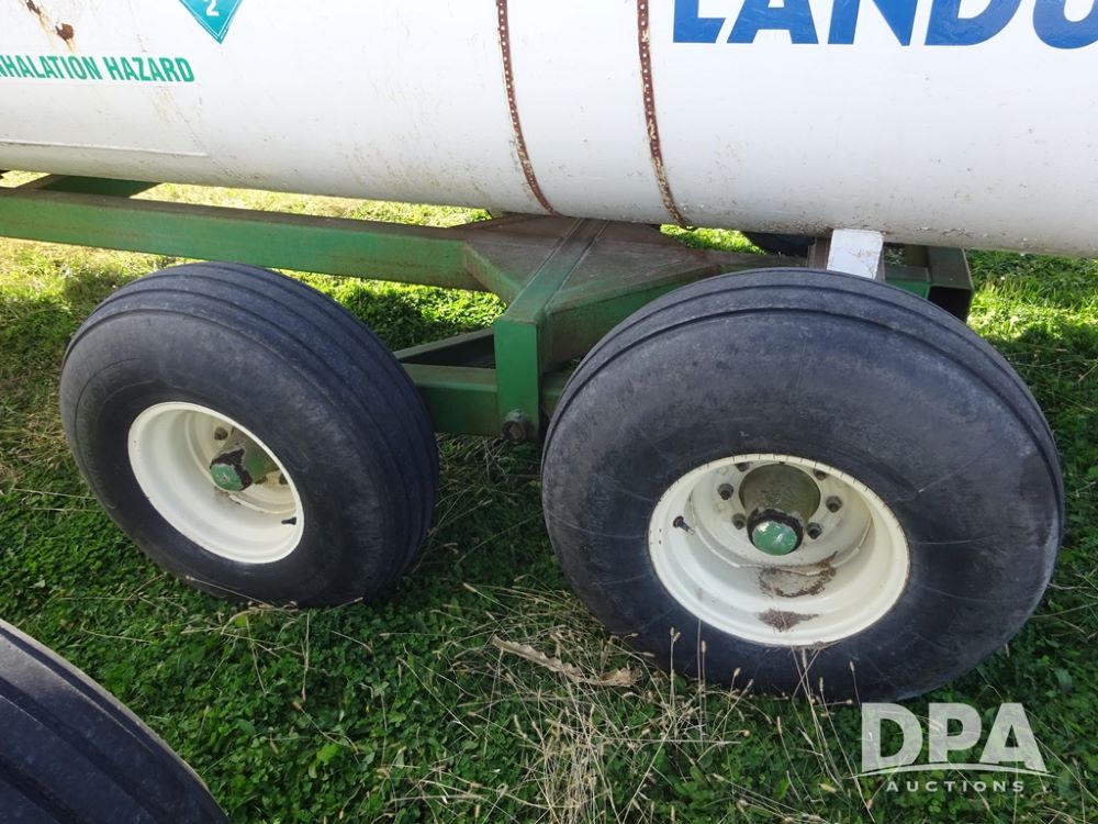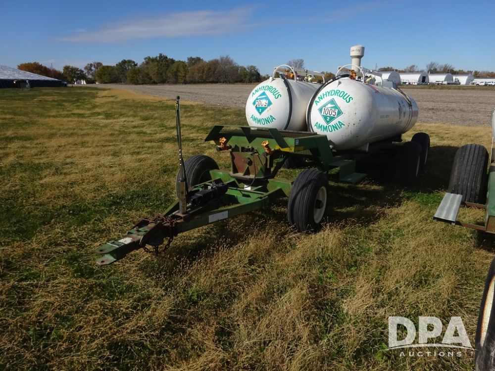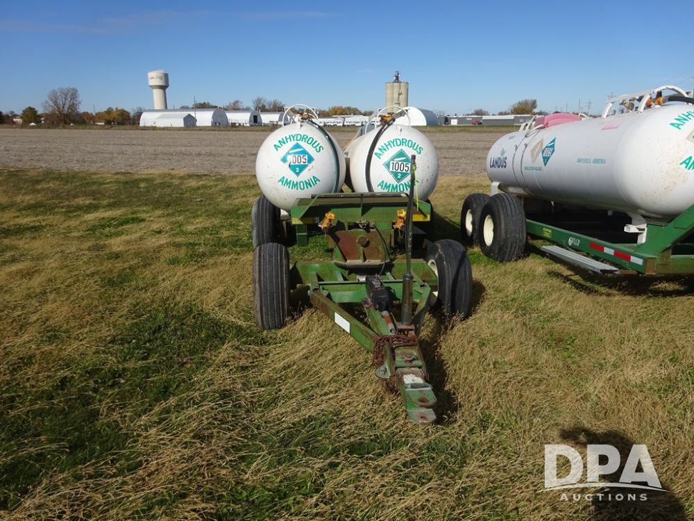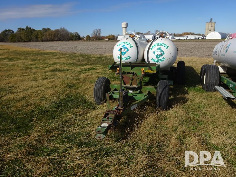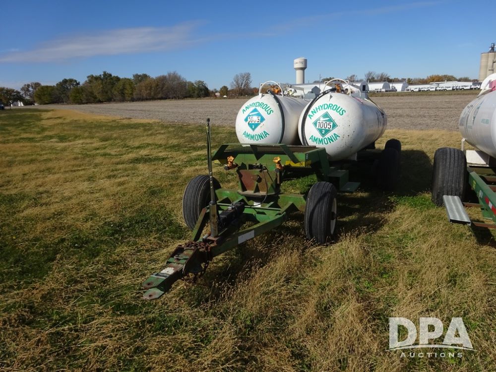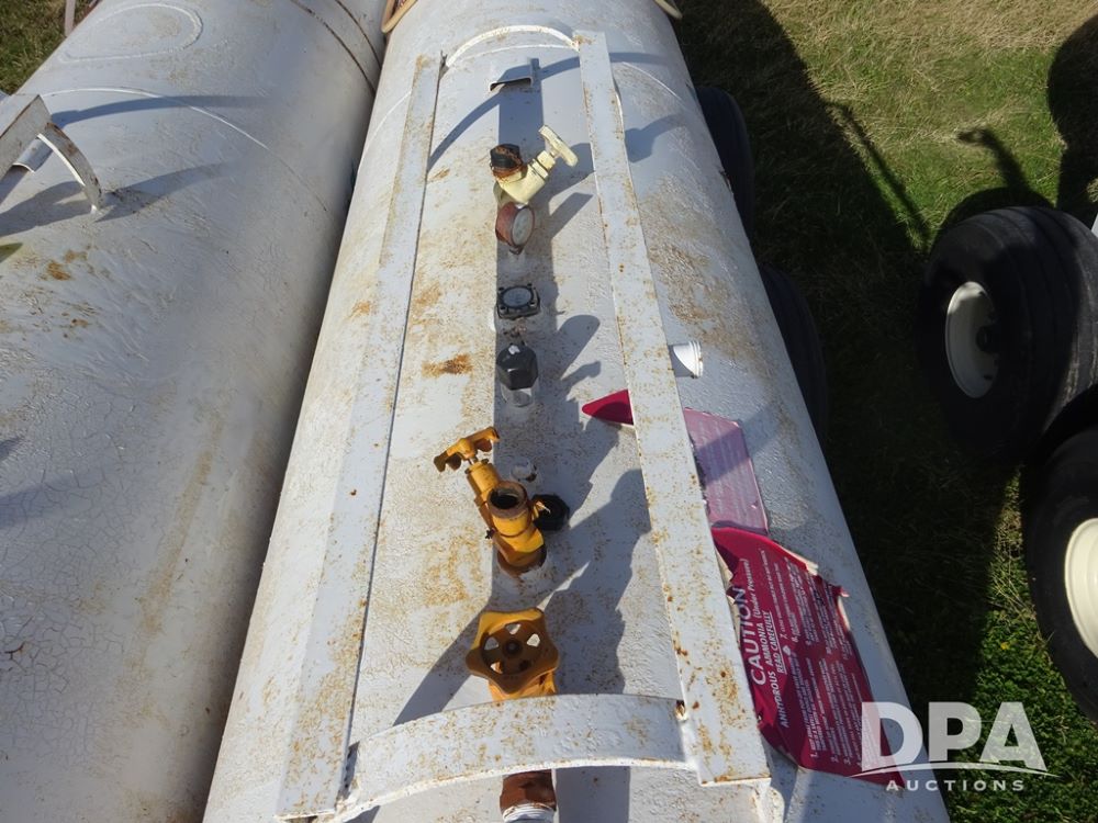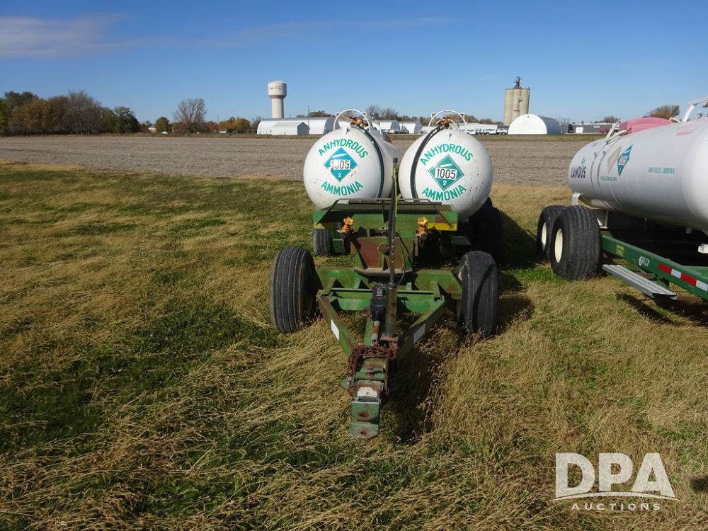 Double NH3 Nurse Tanks (PZ14155, Unit 14425), Double 1000 gallon NH3 nurse tanks, top front fills, poly water tank, data plates, 8-21 VPT, Dalton WNDT 1000 5th wheel tandem axle running gear, spring tongue, side step, 11L-15 front flotation tires, 14L-16.1SL rear flotation tires.