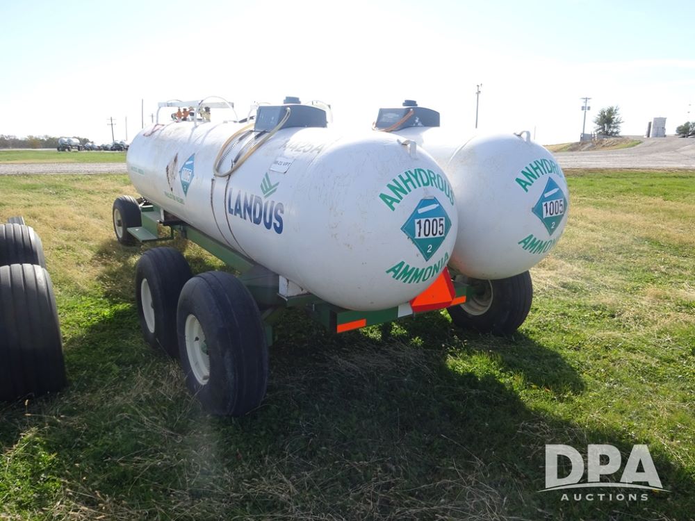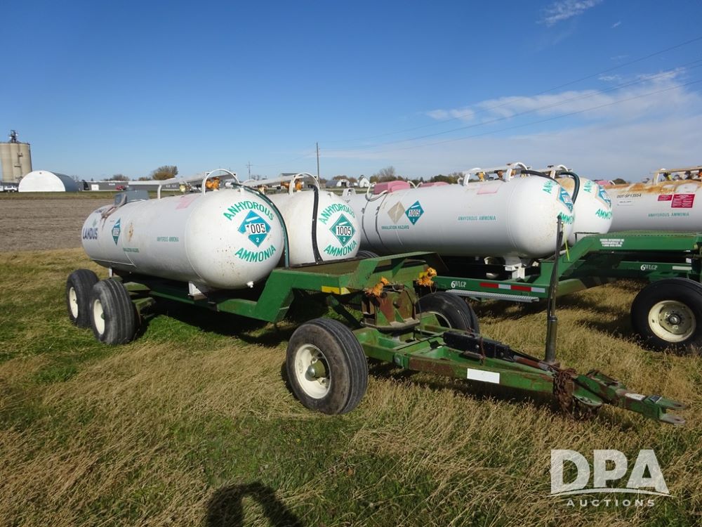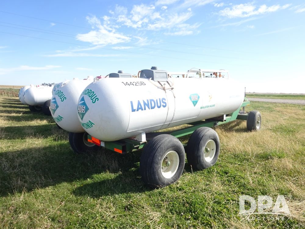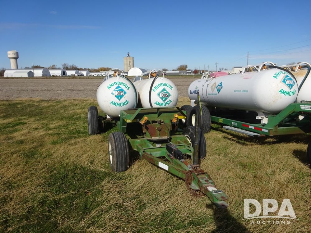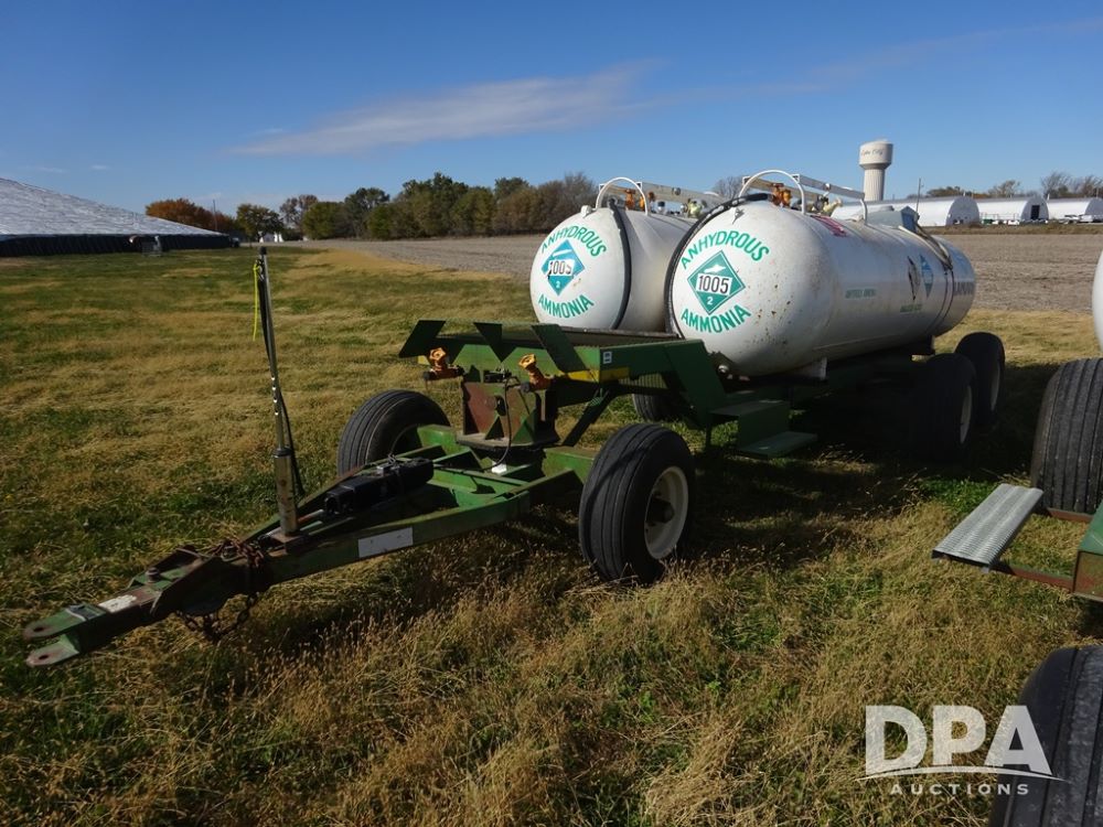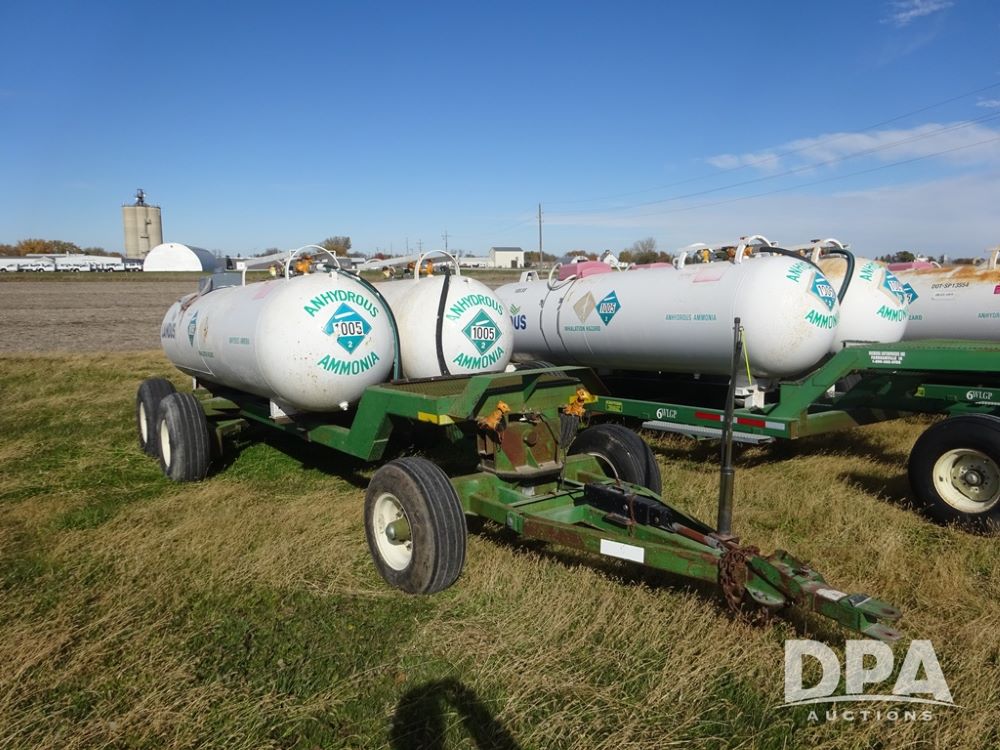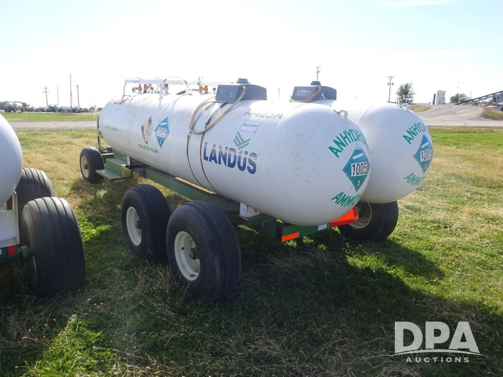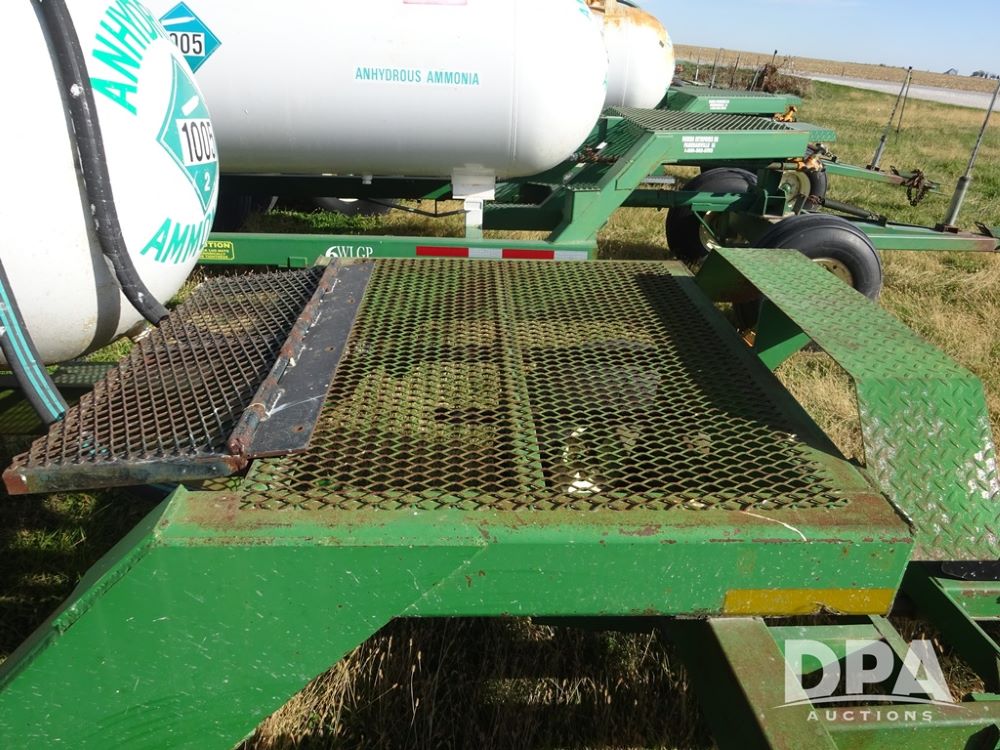 Double NH3 Nurse Tanks (PZ14155, Unit 14425), Double 1000 gallon NH3 nurse tanks, top front fills, poly water tank, data plates, 8-21 VPT, Dalton WNDT 1000 5th wheel tandem axle running gear, spring tongue, side step, 11L-15 front flotation tires, 14L-16.1SL rear flotation tires.