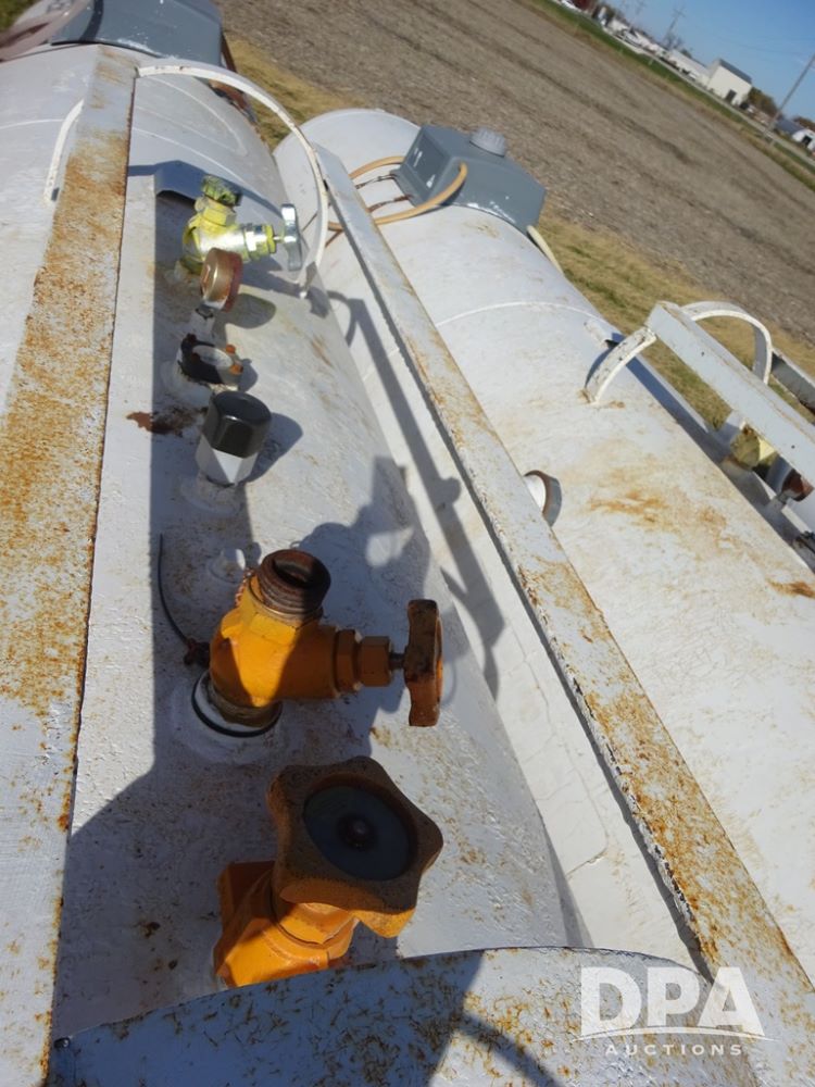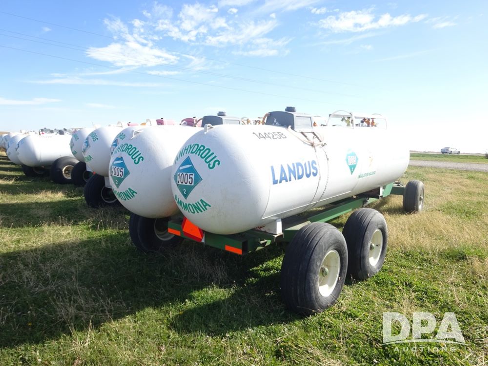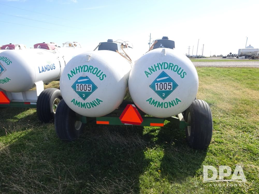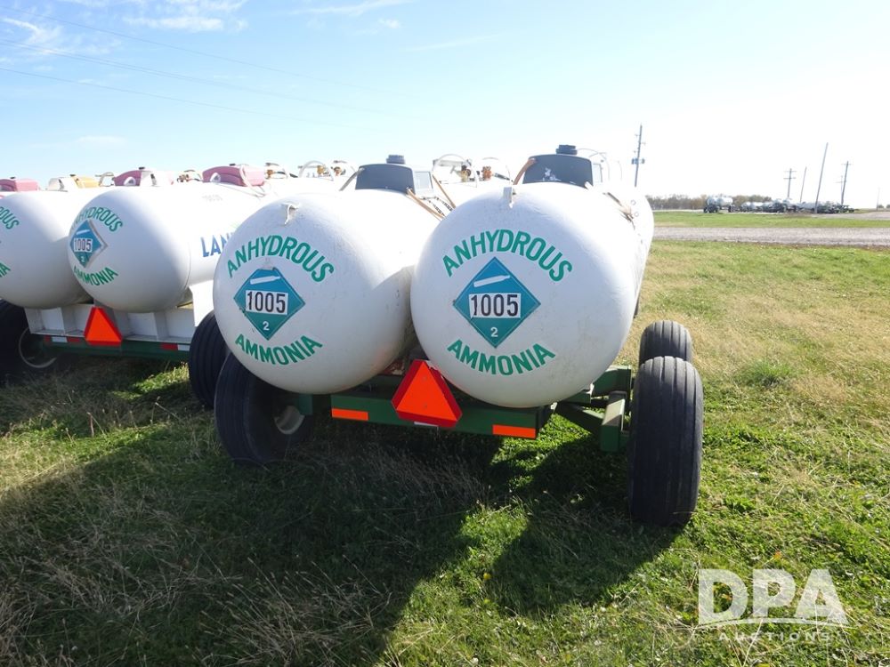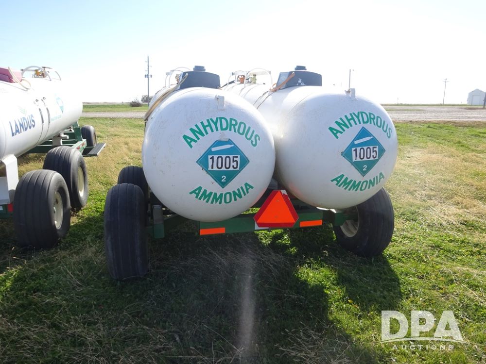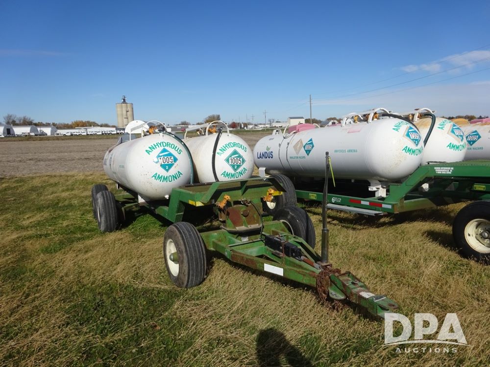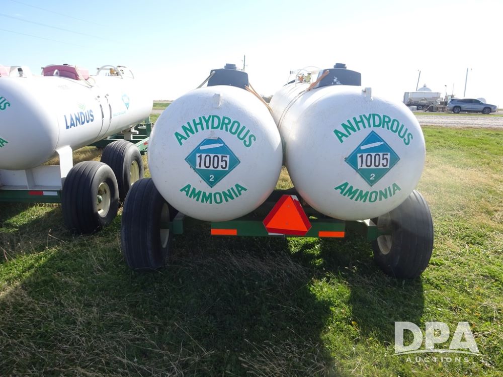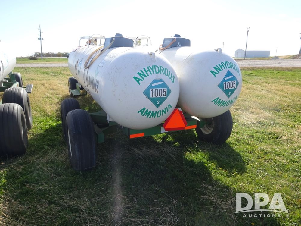 Double NH3 Nurse Tanks (PZ14155, Unit 14425), Double 1000 gallon NH3 nurse tanks, top front fills, poly water tank, data plates, 8-21 VPT, Dalton WNDT 1000 5th wheel tandem axle running gear, spring tongue, side step, 11L-15 front flotation tires, 14L-16.1SL rear flotation tires.