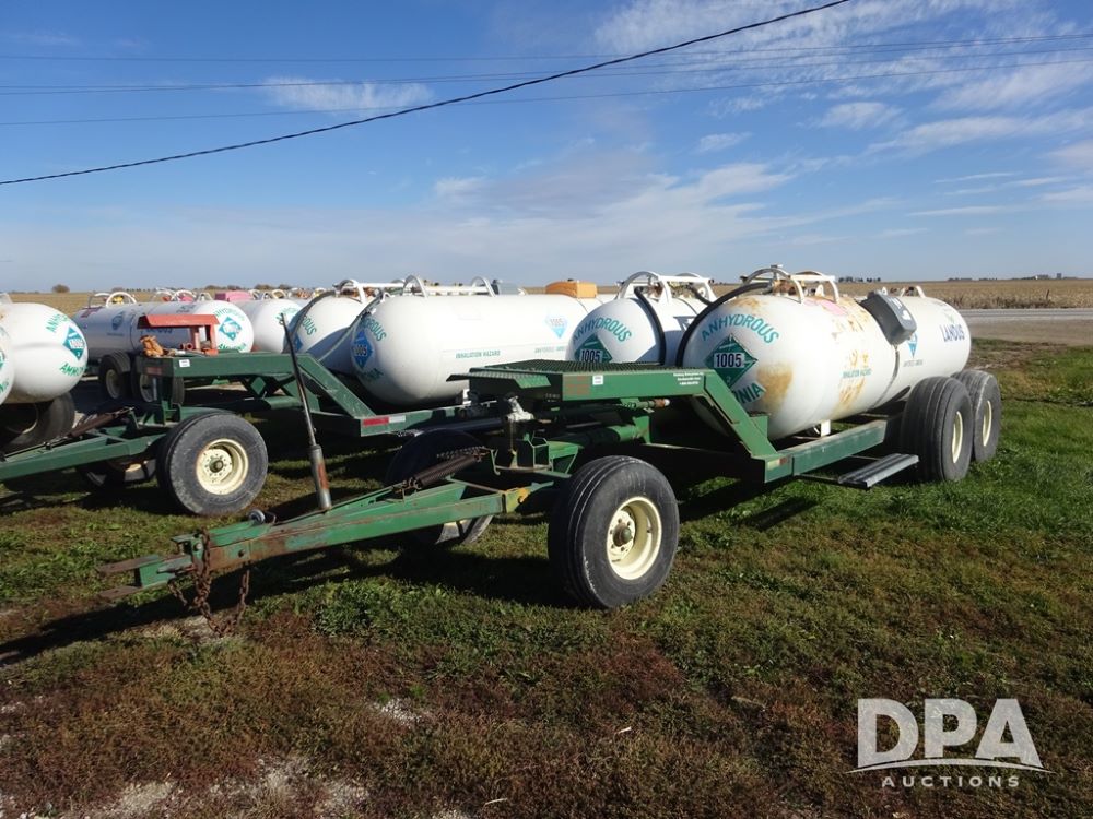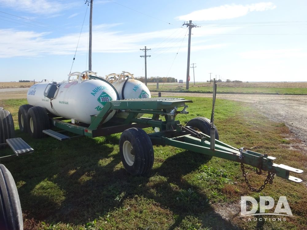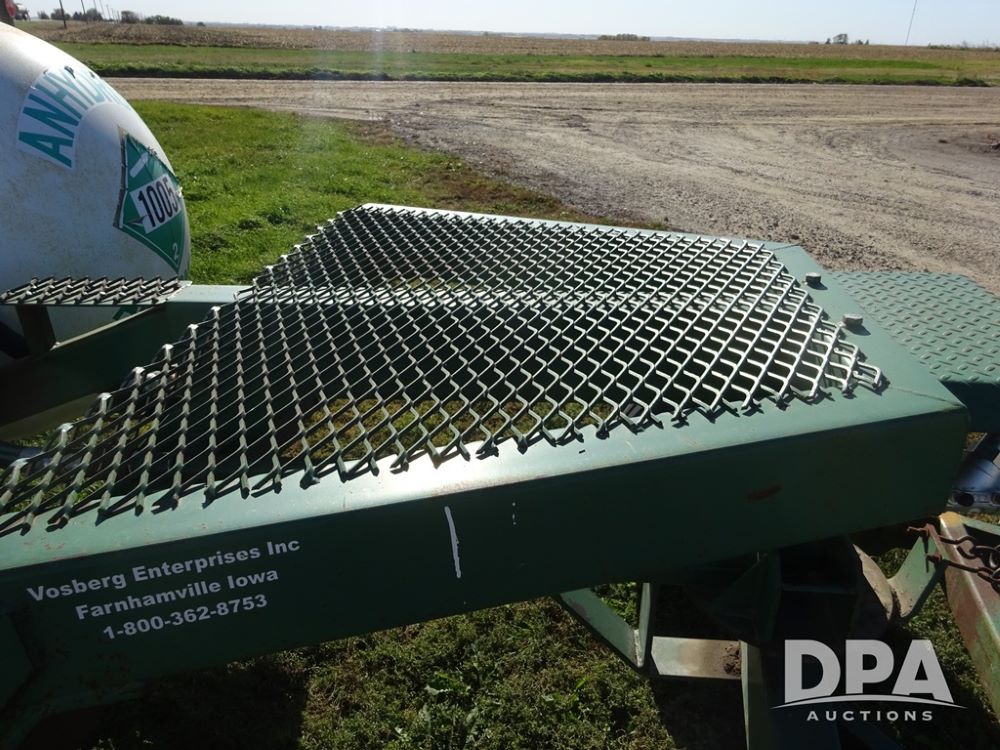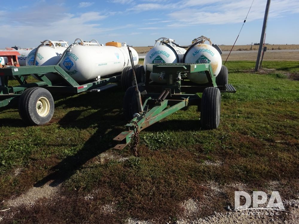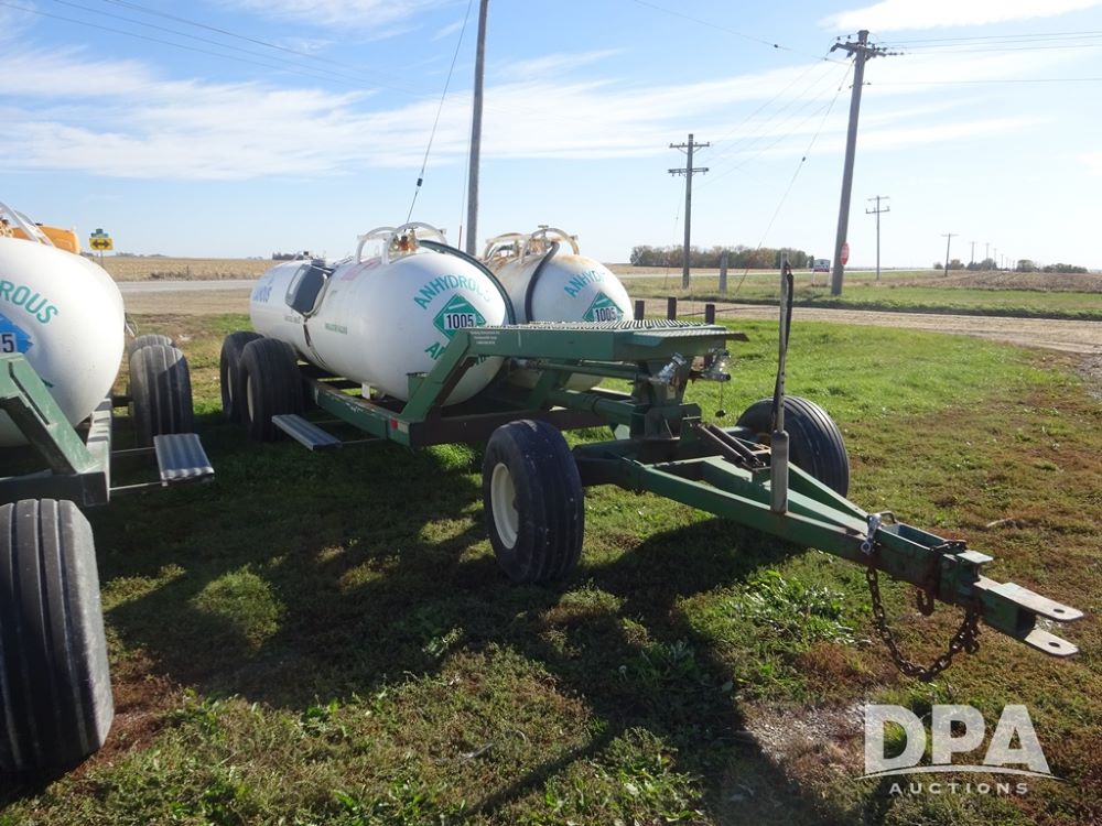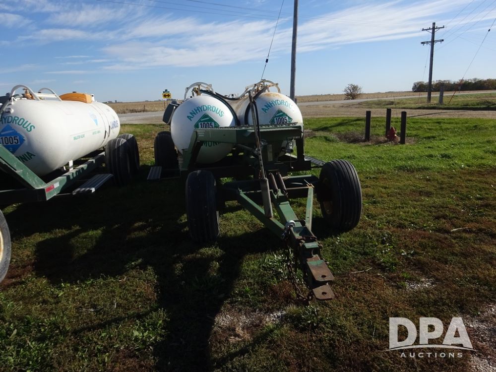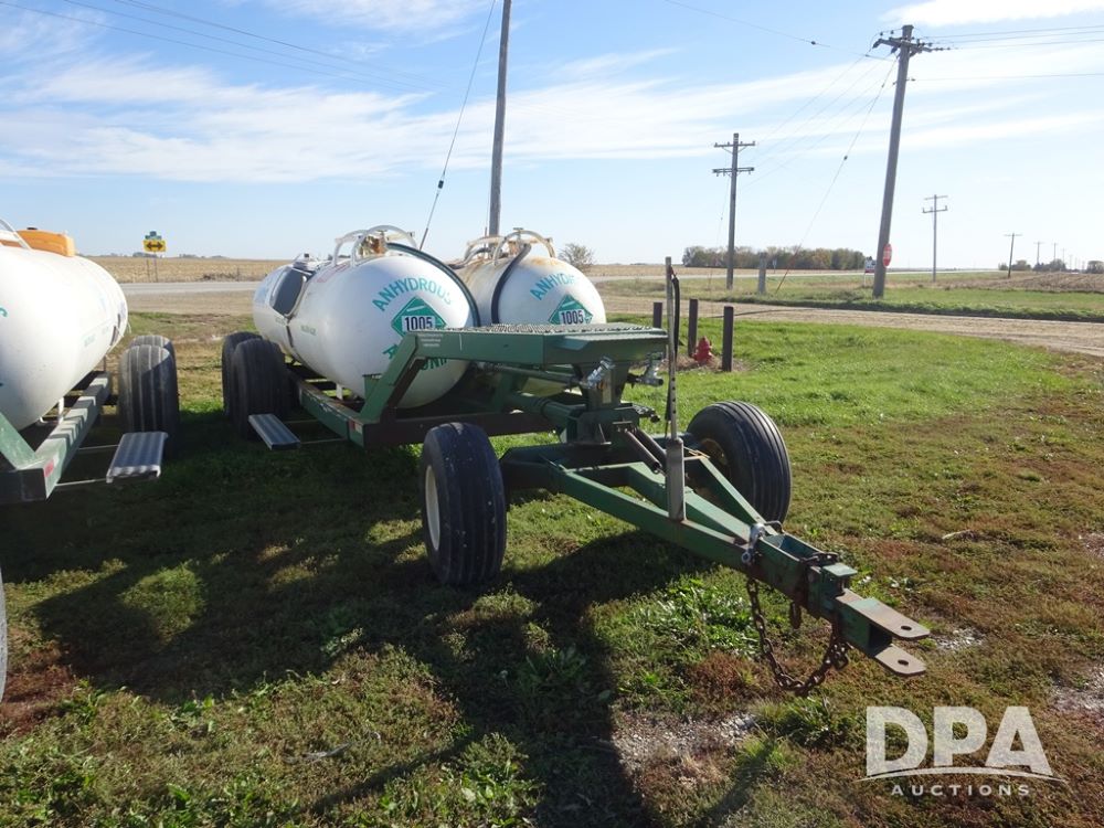 Double NH3 Nurse Tanks (PZ14162, Unit 11691), Double Trinity 1000 gallon NH3 nurse tanks, top front fills, poly water tank, data plates, 6-21 VPT, Vosberg 6WLGP 5th wheel tandem axle running gear, spring tongue, side steps, 12.5L-15SL front flotation tires, 16.5L-16.1SL rear flotation tires.