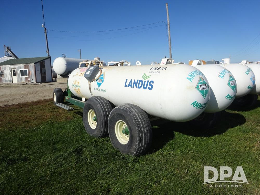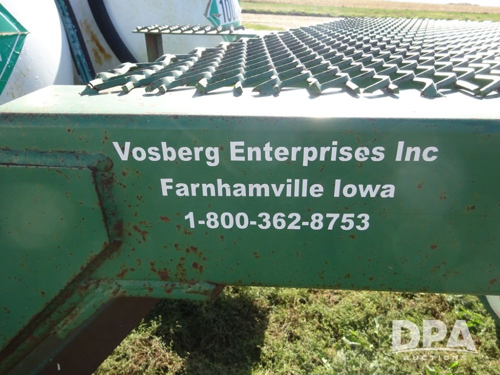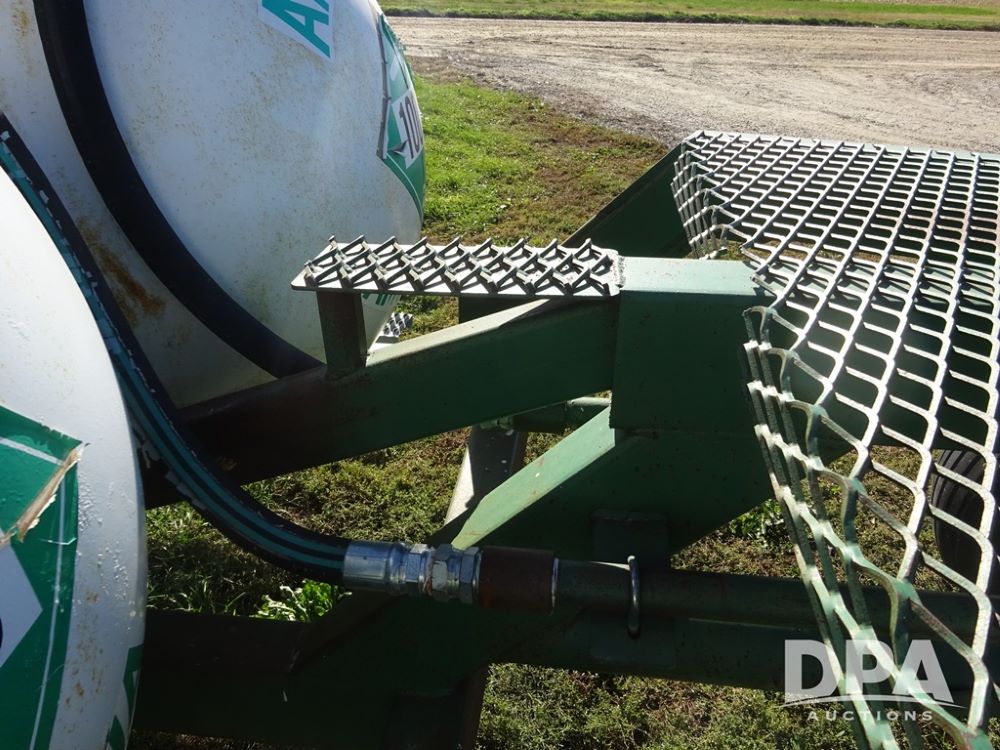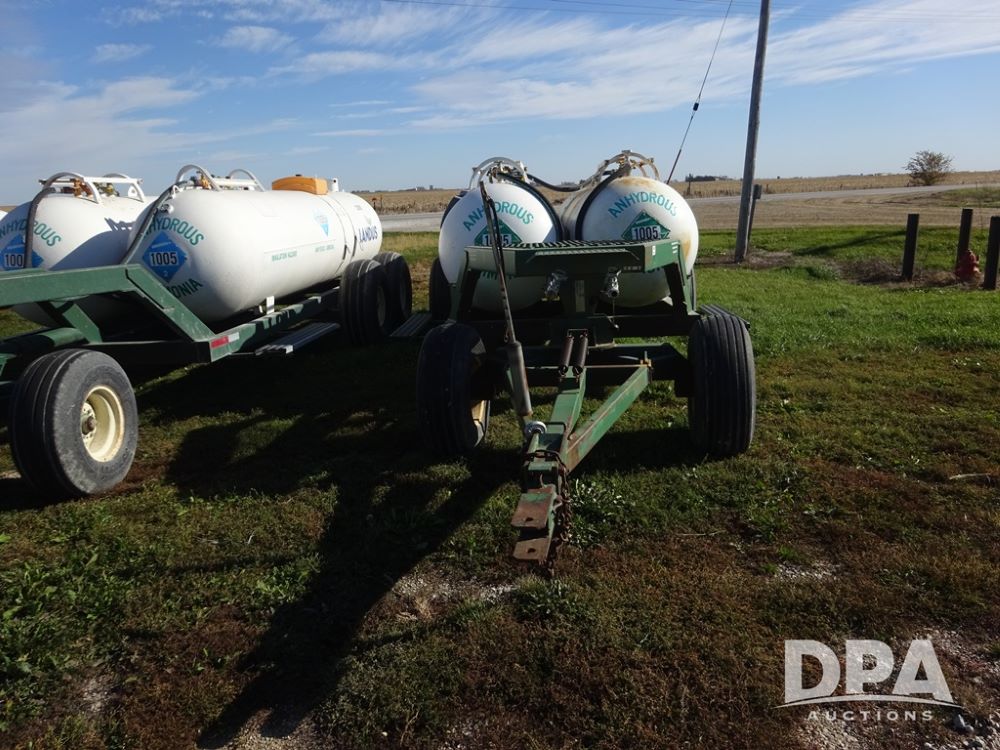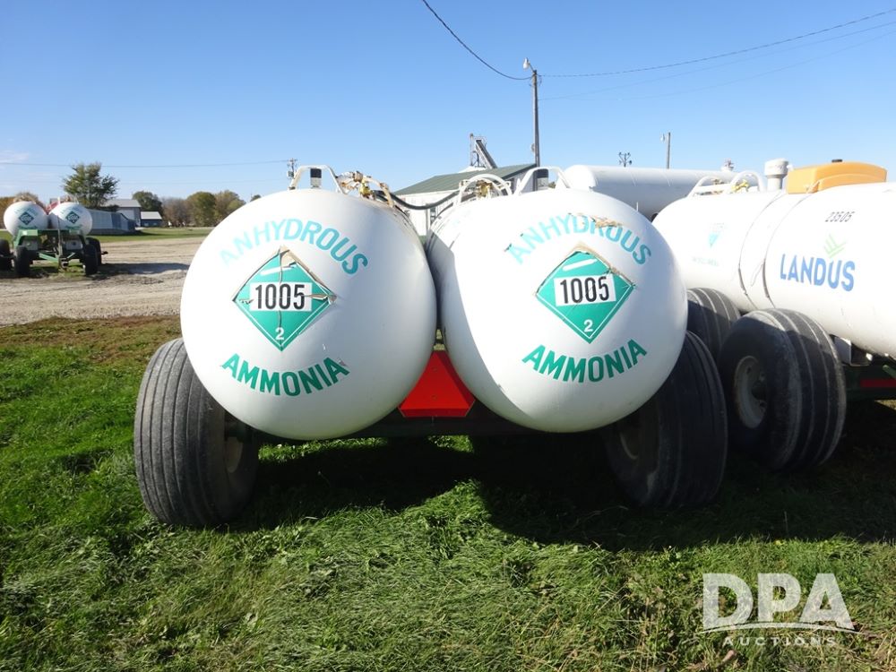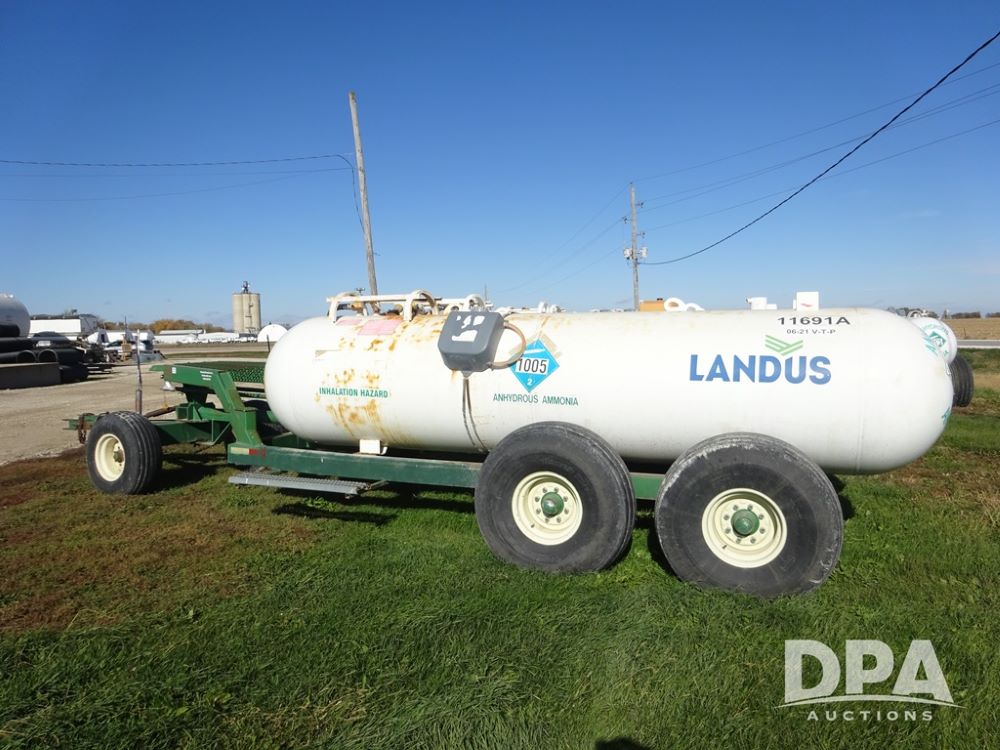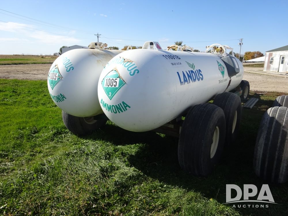 Double NH3 Nurse Tanks (PZ14162, Unit 11691), Double Trinity 1000 gallon NH3 nurse tanks, top front fills, poly water tank, data plates, 6-21 VPT, Vosberg 6WLGP 5th wheel tandem axle running gear, spring tongue, side steps, 12.5L-15SL front flotation tires, 16.5L-16.1SL rear flotation tires.