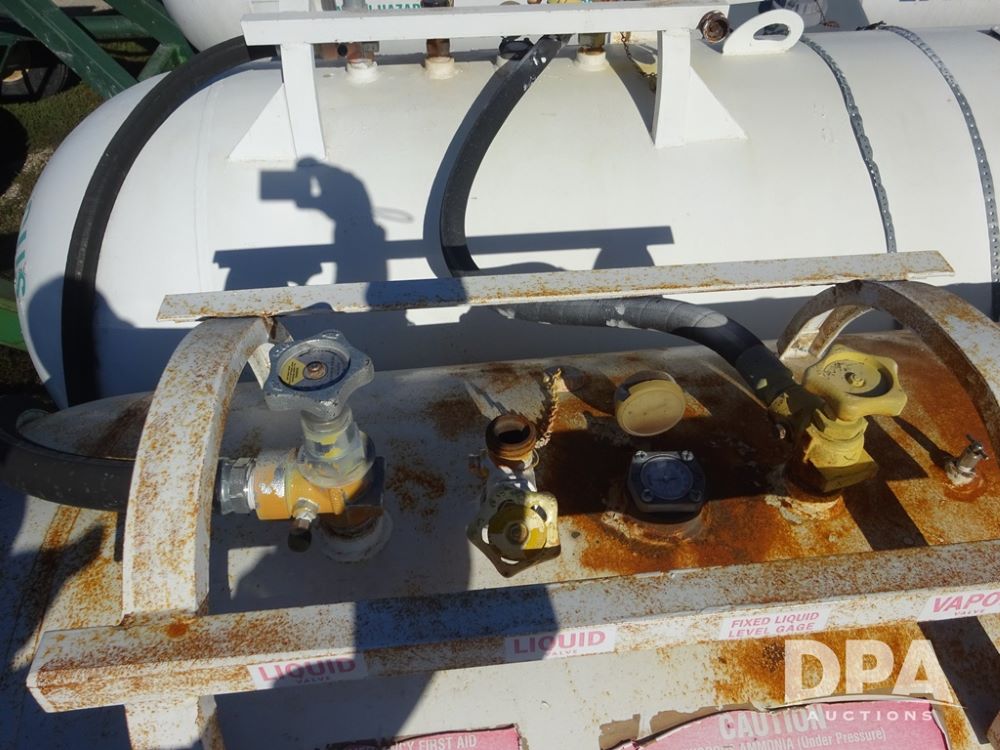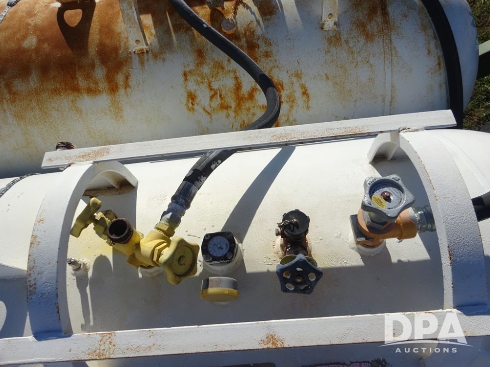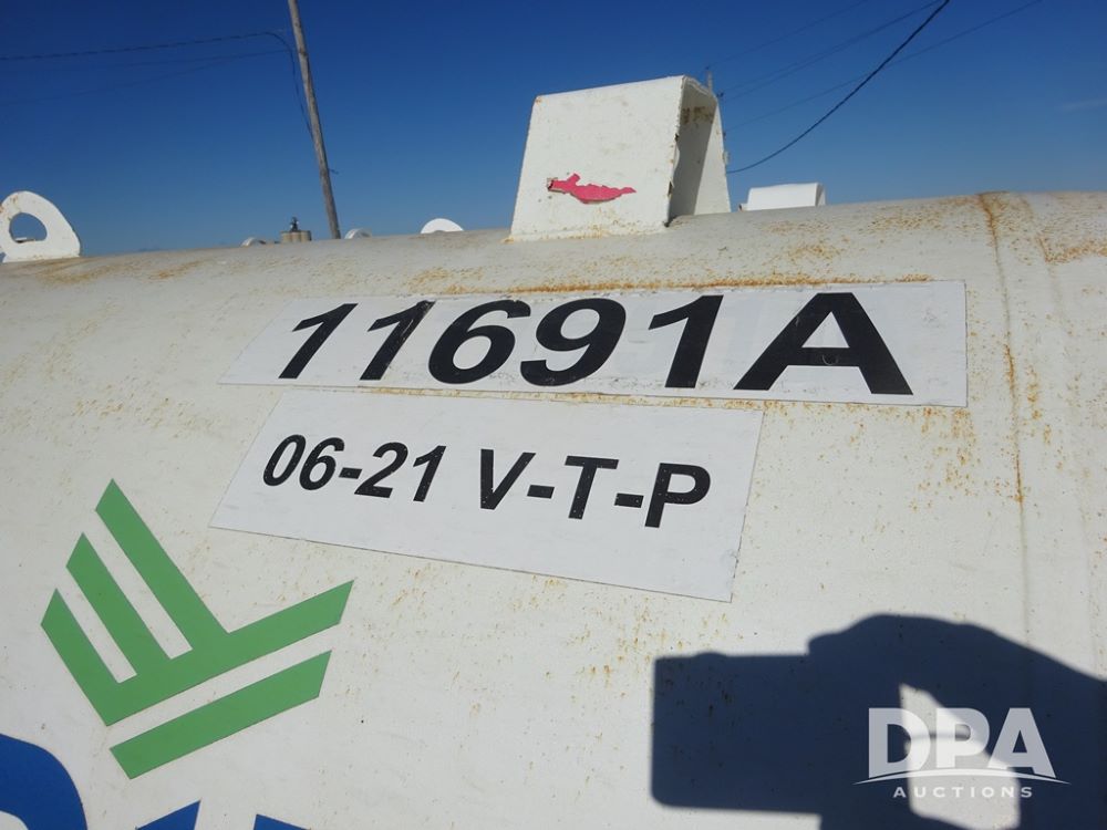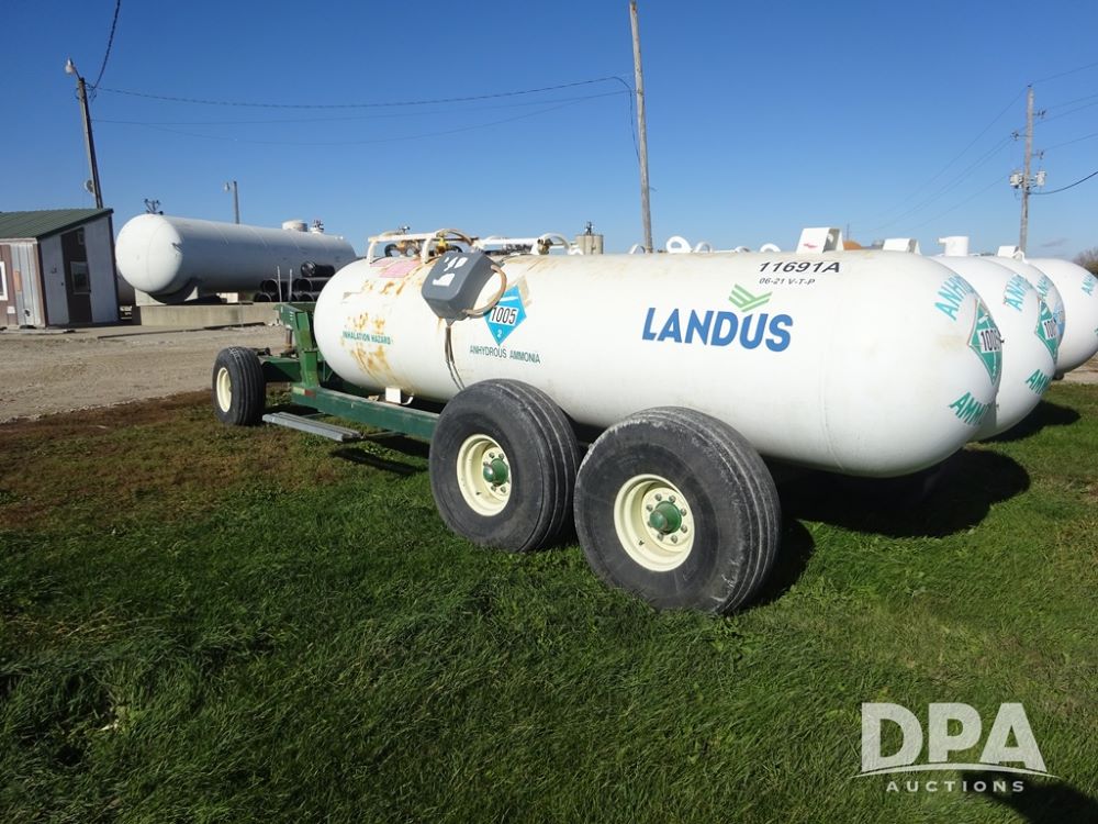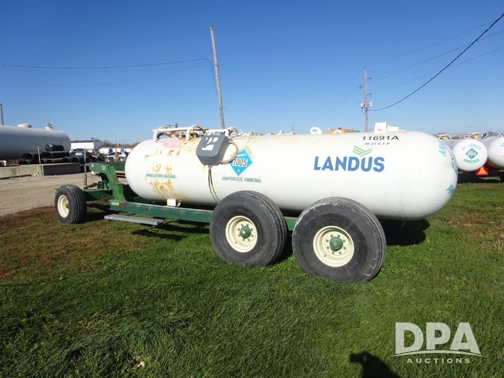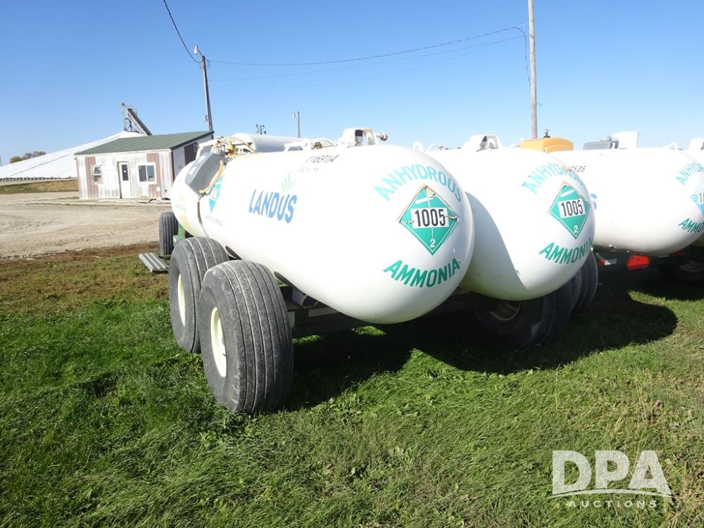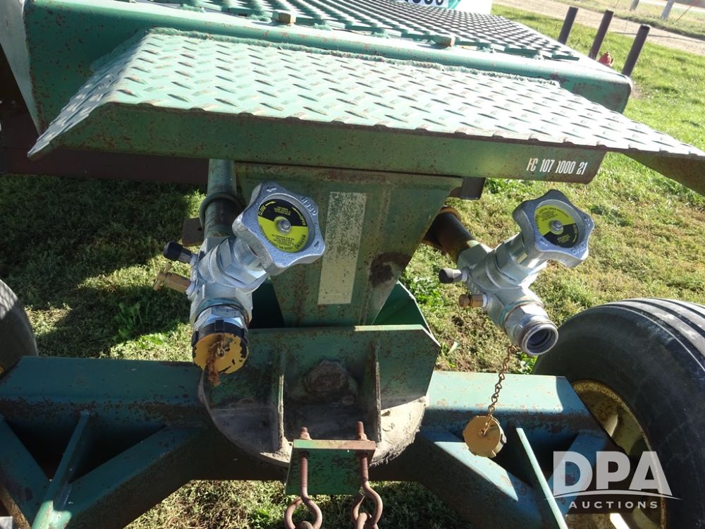 Double NH3 Nurse Tanks (PZ14162, Unit 11691), Double Trinity 1000 gallon NH3 nurse tanks, top front fills, poly water tank, data plates, 6-21 VPT, Vosberg 6WLGP 5th wheel tandem axle running gear, spring tongue, side steps, 12.5L-15SL front flotation tires, 16.5L-16.1SL rear flotation tires.