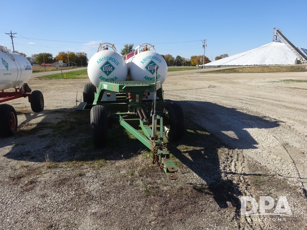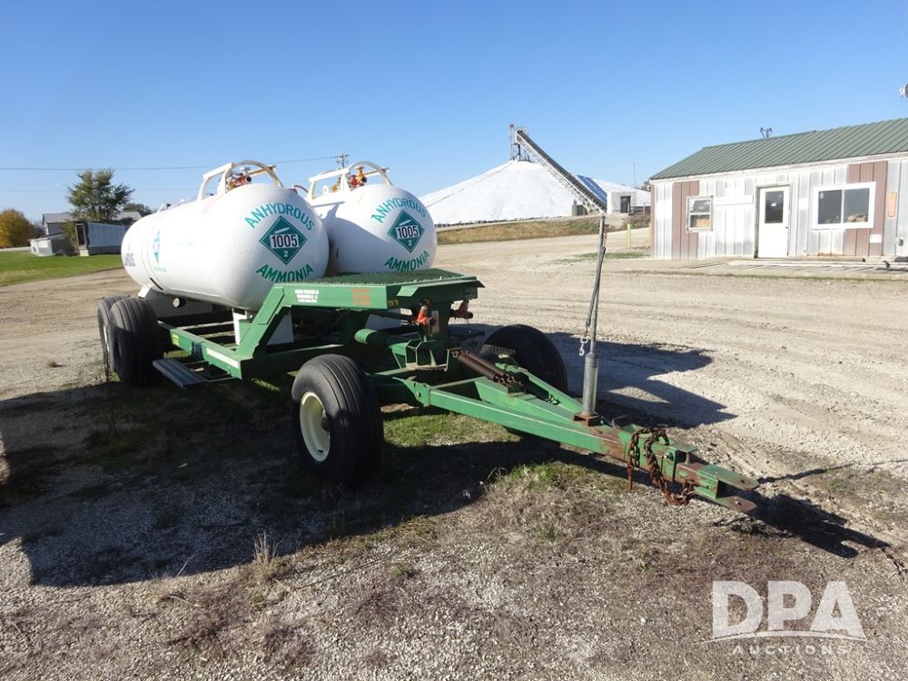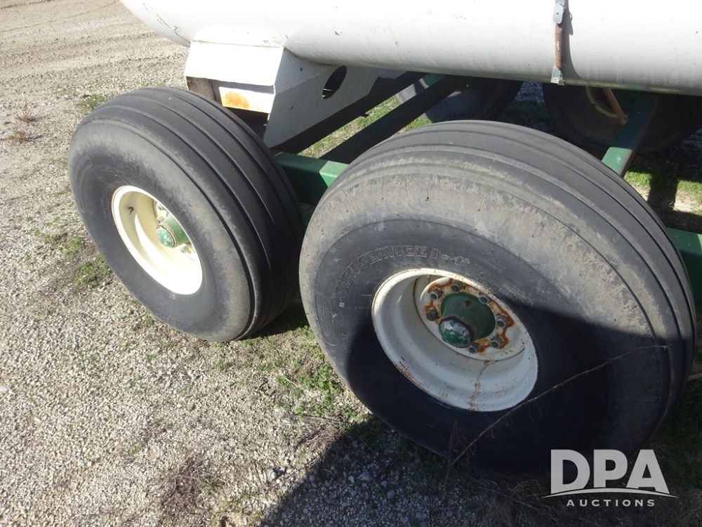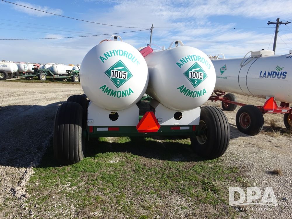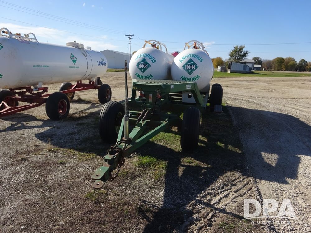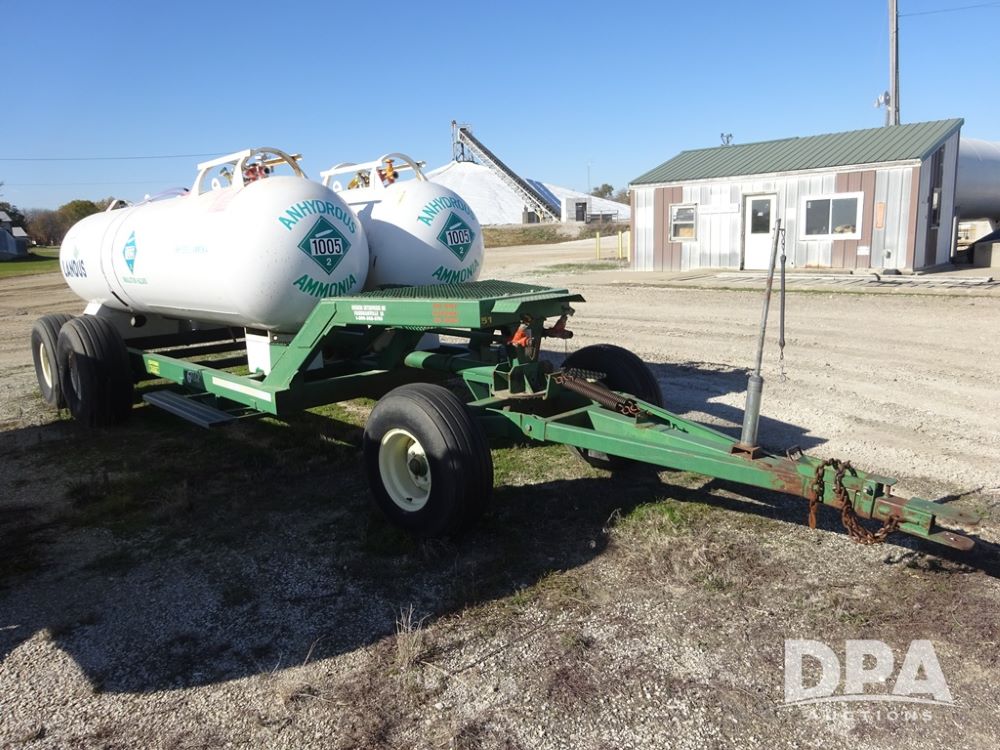 Double NH3 Nurse Tanks (PZ14163, Unit 10162), Double Trinity 1000 gallon NH3 nurse tanks, top front fills, poly water tank, data plates, 8-21 VPT, Vosberg 6WLGP 5th wheel tandem axle running gear, spring tongue, side steps, 12.5L-15SL front flotation tires, 16.5L-16.1SL rear flotation tires.