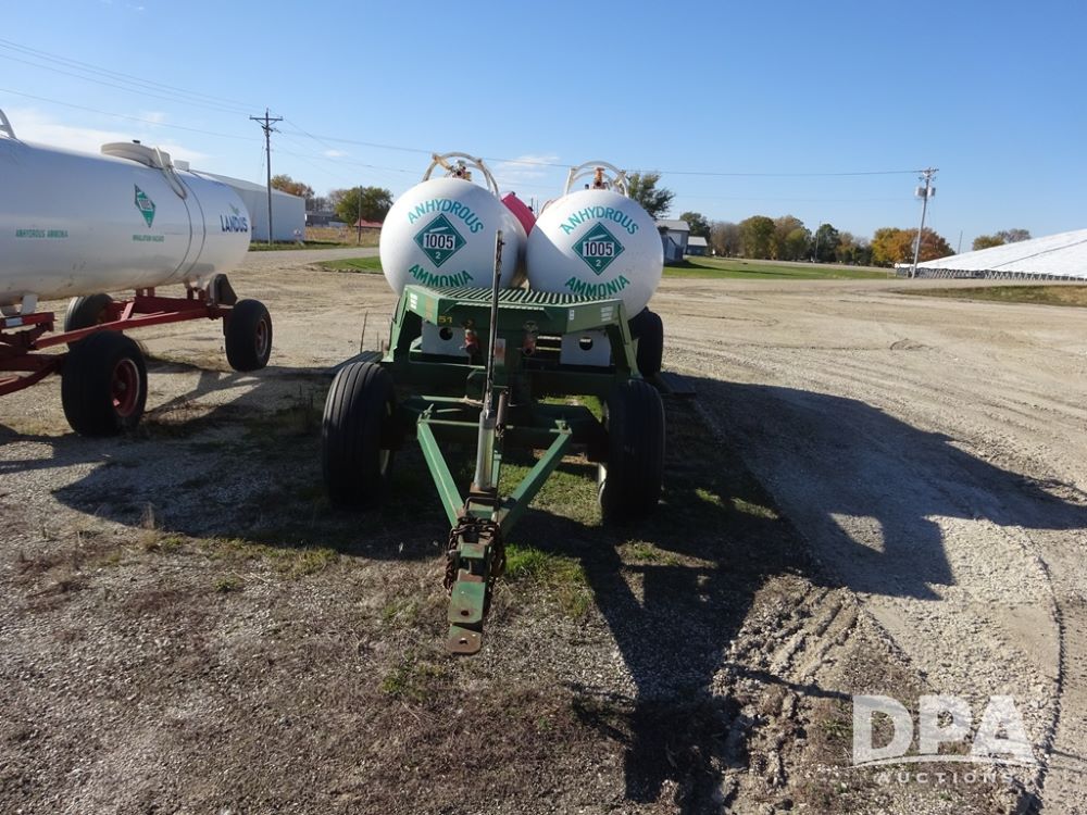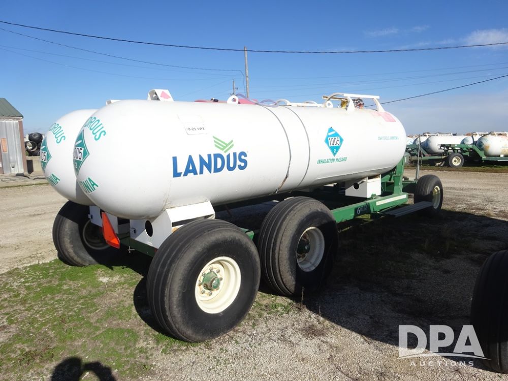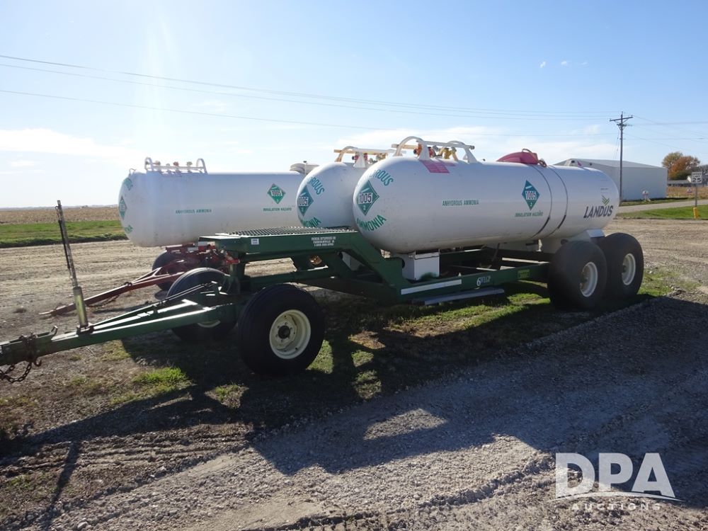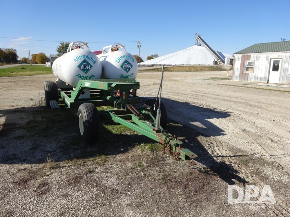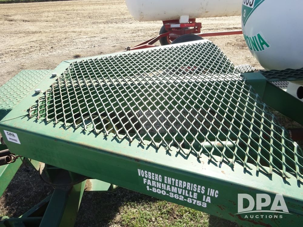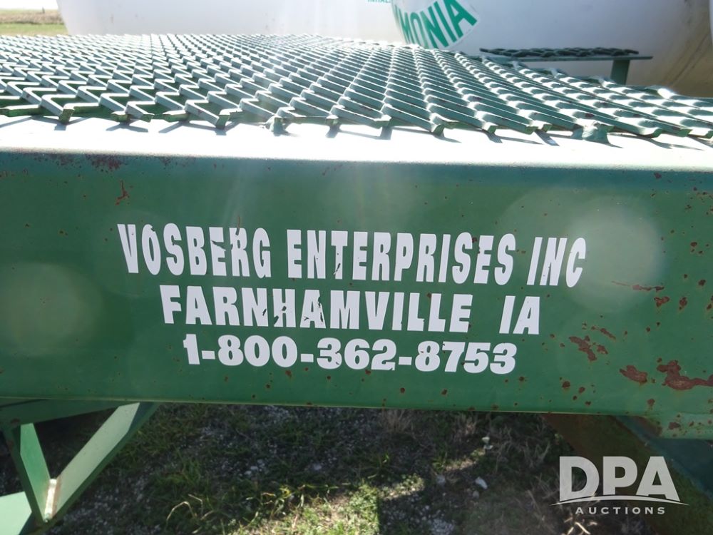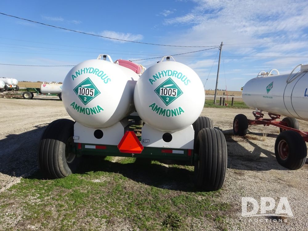 Double NH3 Nurse Tanks (PZ14163, Unit 10162), Double Trinity 1000 gallon NH3 nurse tanks, top front fills, poly water tank, data plates, 8-21 VPT, Vosberg 6WLGP 5th wheel tandem axle running gear, spring tongue, side steps, 12.5L-15SL front flotation tires, 16.5L-16.1SL rear flotation tires.