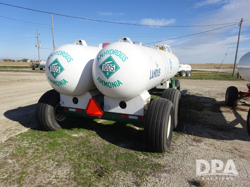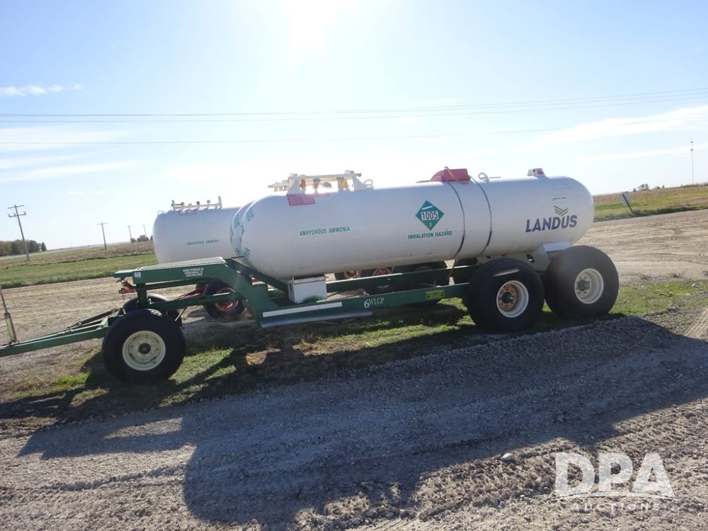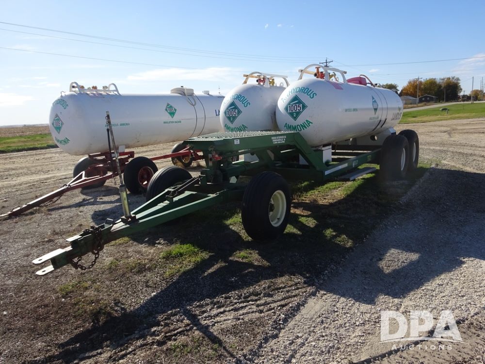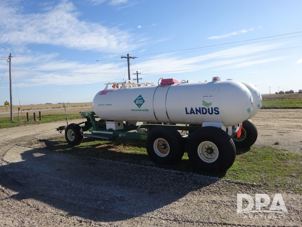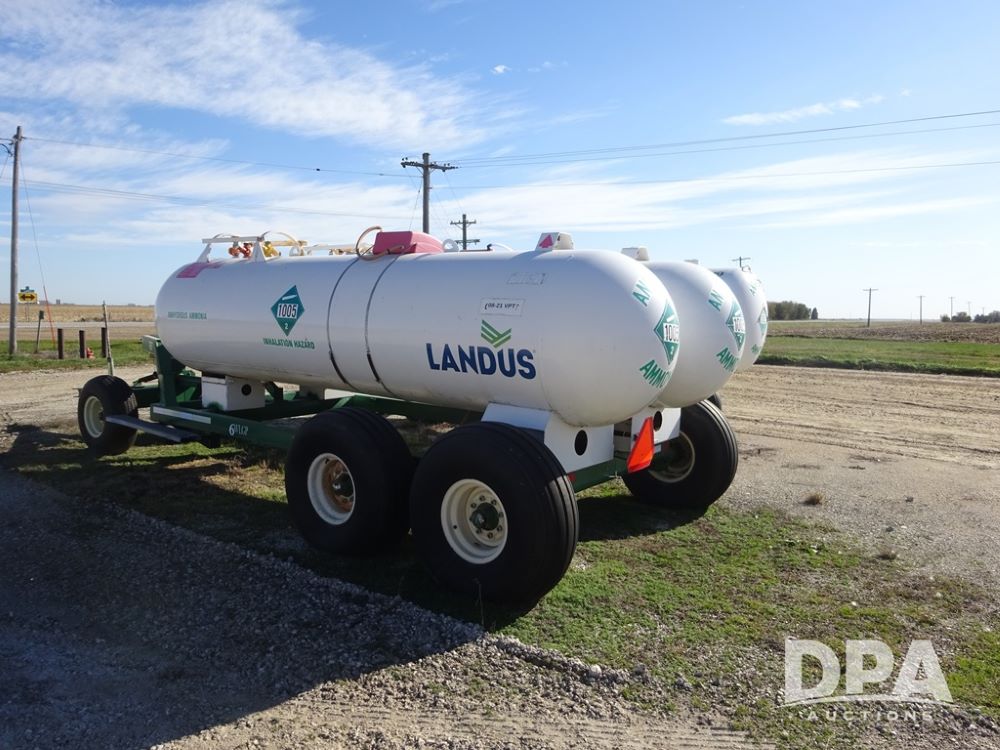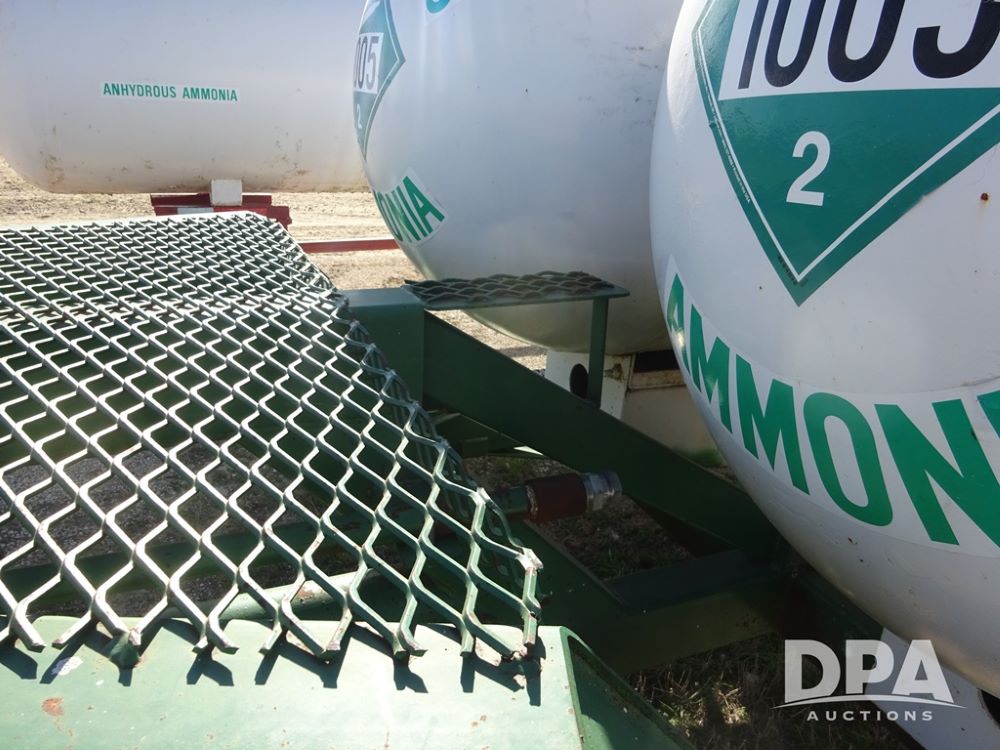 Double NH3 Nurse Tanks (PZ14163, Unit 10162), Double Trinity 1000 gallon NH3 nurse tanks, top front fills, poly water tank, data plates, 8-21 VPT, Vosberg 6WLGP 5th wheel tandem axle running gear, spring tongue, side steps, 12.5L-15SL front flotation tires, 16.5L-16.1SL rear flotation tires.