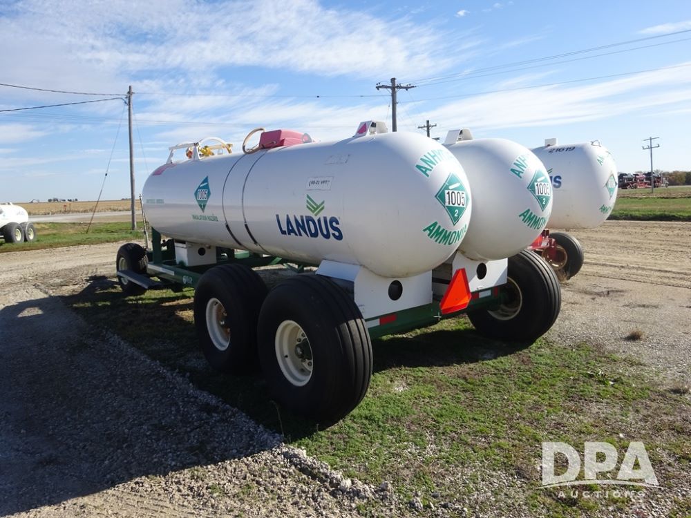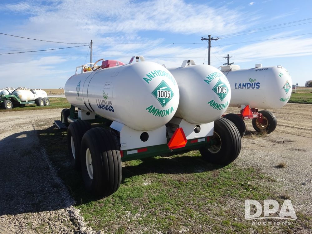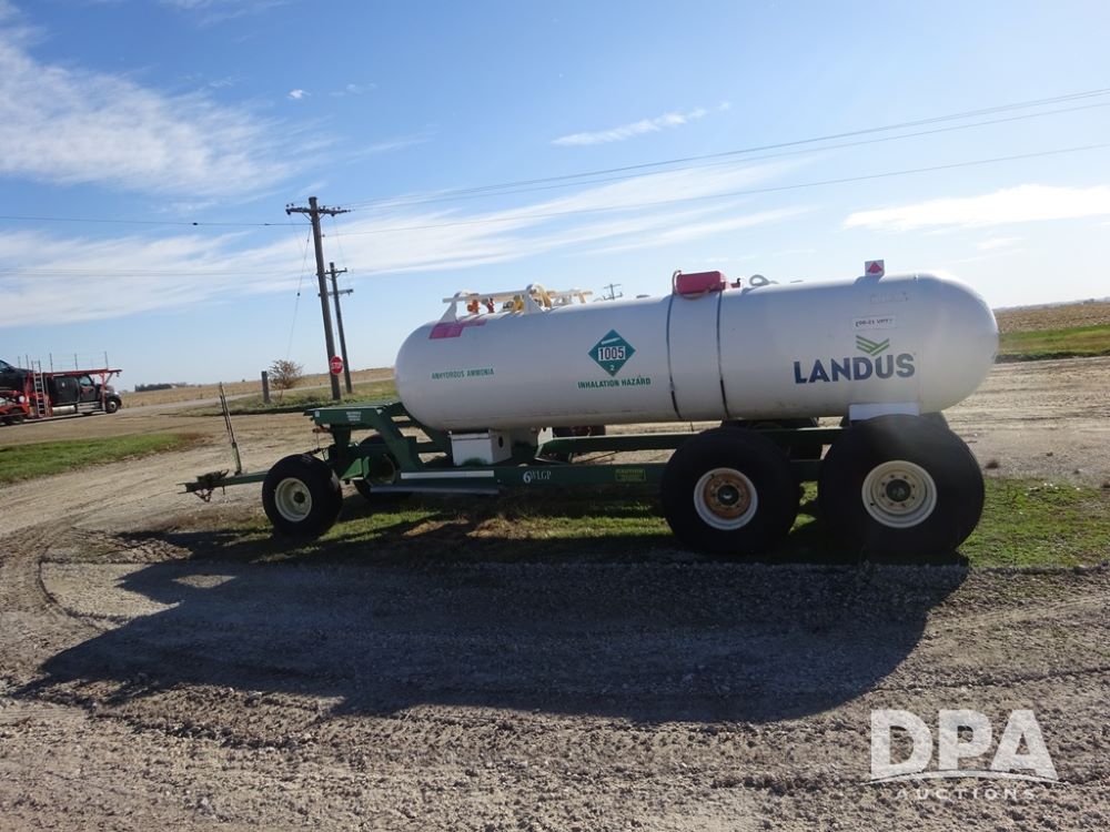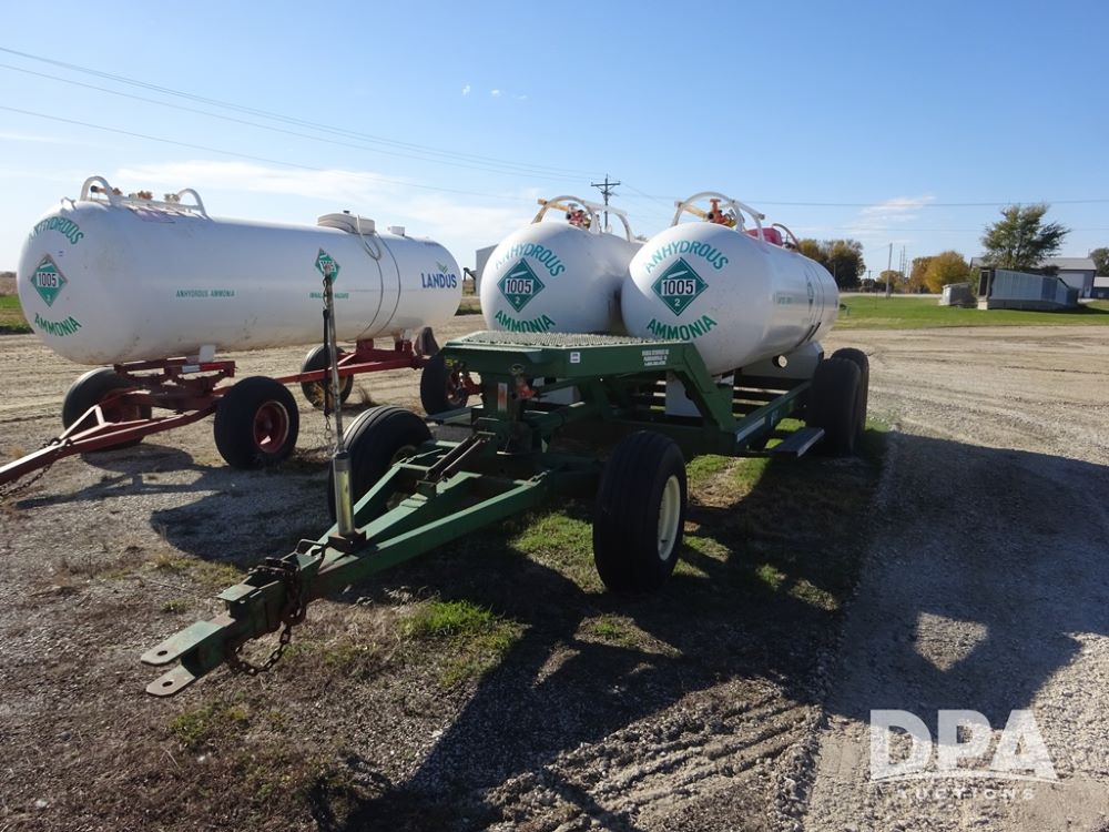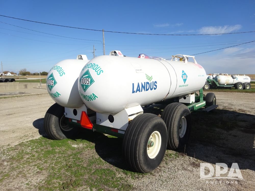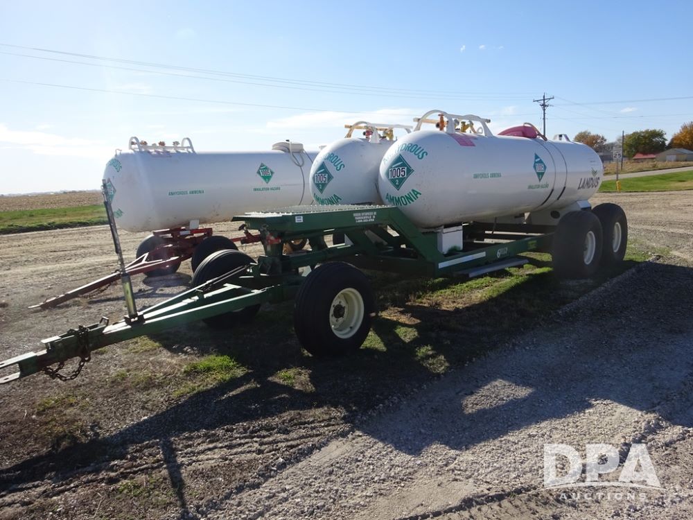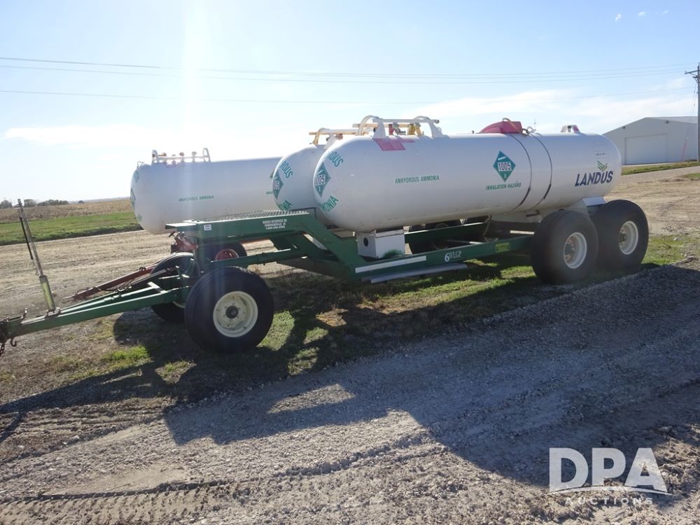 Double NH3 Nurse Tanks (PZ14163, Unit 10162), Double Trinity 1000 gallon NH3 nurse tanks, top front fills, poly water tank, data plates, 8-21 VPT, Vosberg 6WLGP 5th wheel tandem axle running gear, spring tongue, side steps, 12.5L-15SL front flotation tires, 16.5L-16.1SL rear flotation tires.