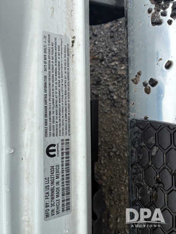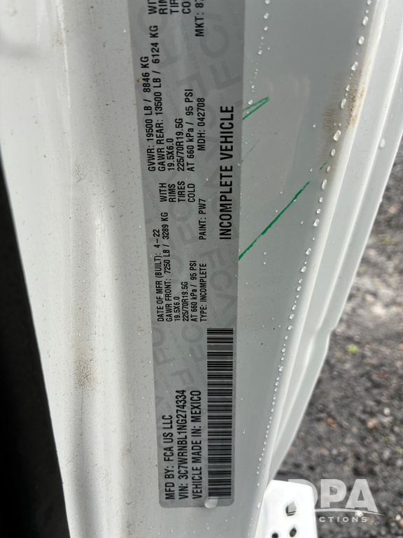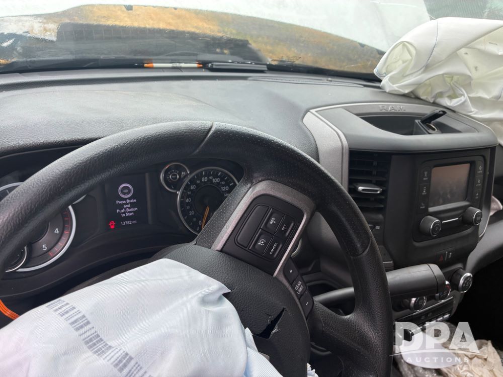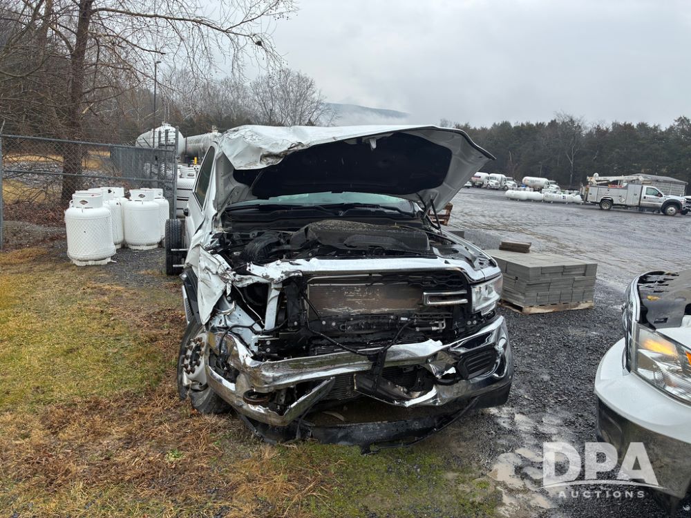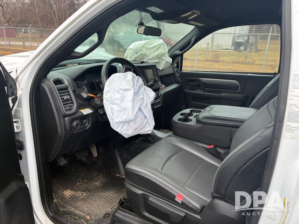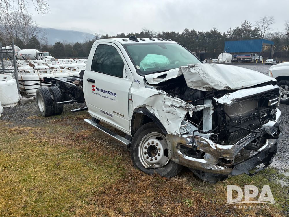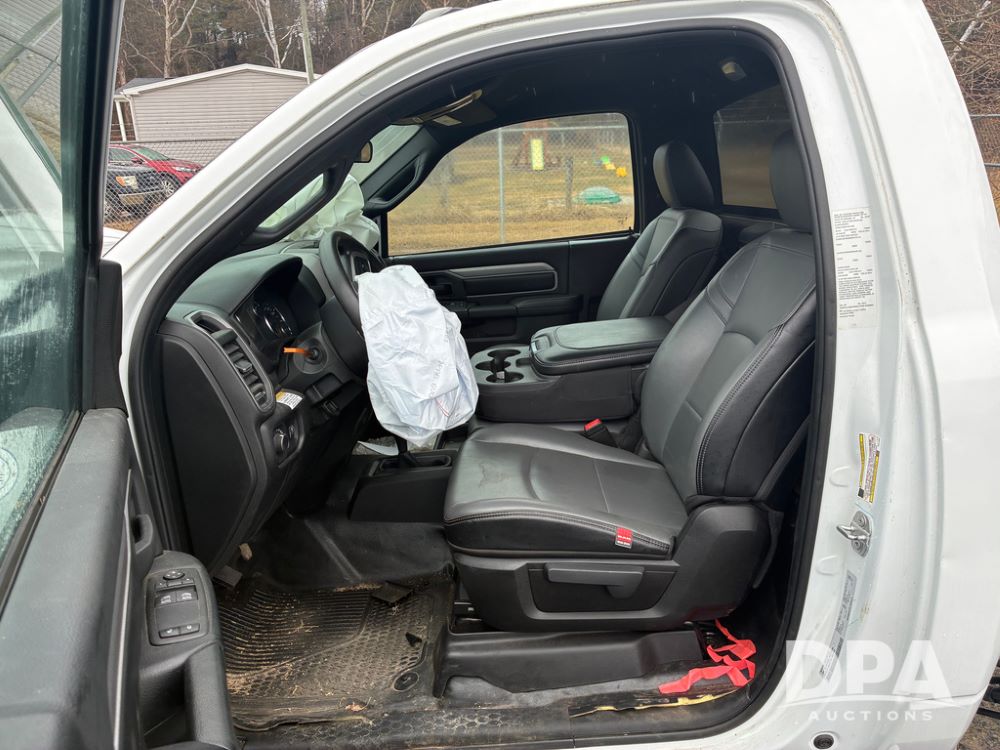 2022 Ram 5500 Heavy Duty Cab/Chassis (NP6572, Unit 10445), regular cab, Cummins 6.7L turbo diesel engine, automatic transmission, heat, air conditioning, Am/Fm radio, cruise control, power windows, locks and mirrors, running boards, dually, shows 13,782 miles.