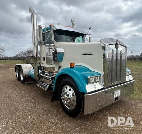2002 Kenworth W900 Day Cab Truck (NP6575), Cat C15 - 6NZ diesel engine (600HP), manual transmission, heat, air conditioning, Am/Fm radio, tandem axle, 5th wheel plate, dual fuel tanks, dual exhaust, 2-line wet kit, aluminum wheels, air breathers, shows 430,681 miles.