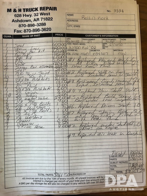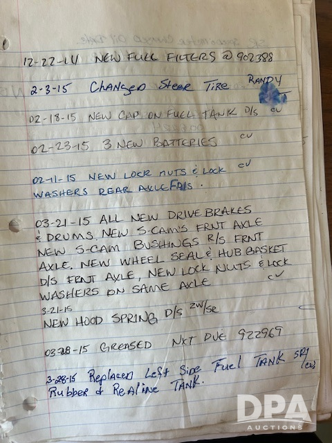 Notes: Approx. 140,000 miles on a platinum rebuild. Seller has service records of pretty much every repair/maintenance that has been done to this truck, service records are available upon request. Truck will be used up to the date of the auction so miles will increase. New paint, exhaust, stainless steps, drop visor, cab lights, etc. July of 2024. 2-line wet kit put on August of 2024.