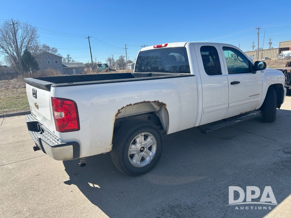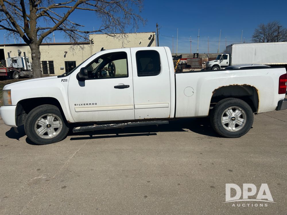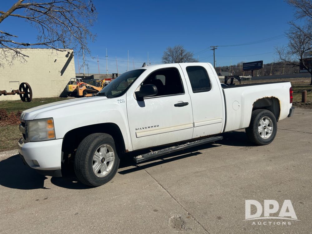 2011 Chevrolet Silverado LT 4x4 Pickup (CP1812, Unit P211), extended cab, Vortec 5.3L gas engine, transmission, heat, Am/Fm radio, power windows, locks and mirrors, cruise control, dual climate control, running boards, tow package, spray-in bed liner, 265/65R18 tires, shows 162,523 miles.