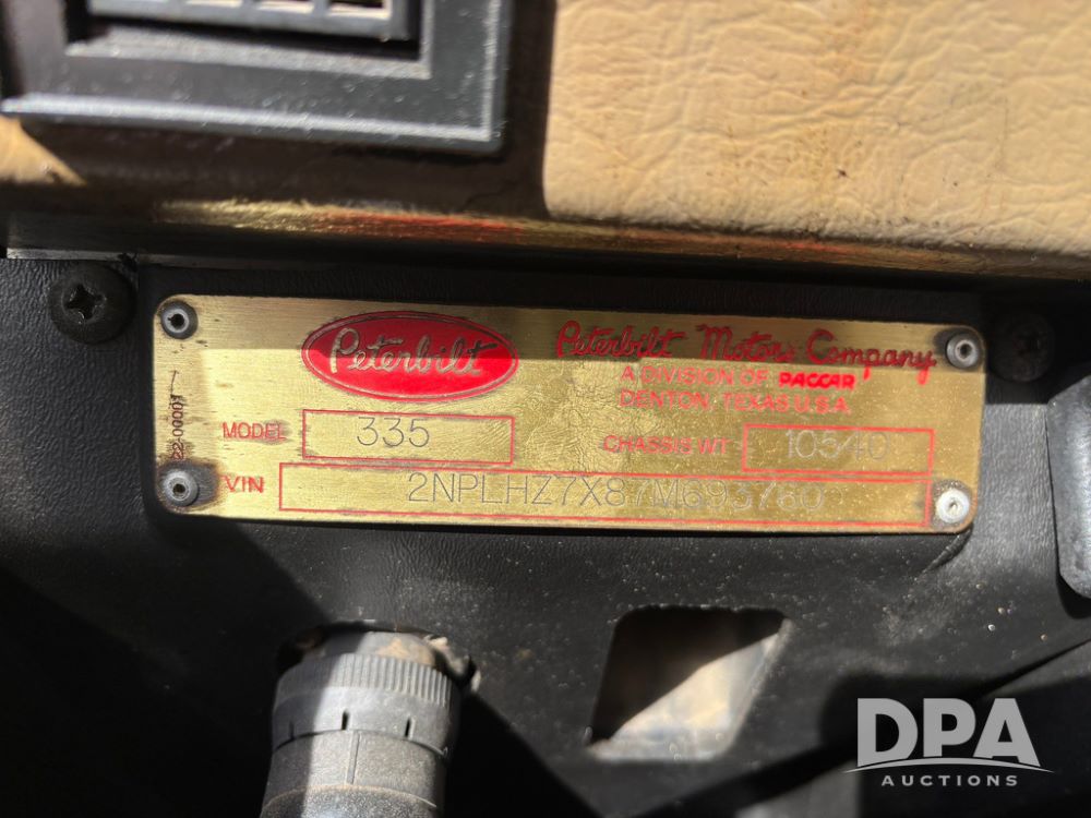 2007 Peterbilt 335 Petroleum Truck (GP12891, Unit P7873), Cummins ISC diesel engine, Allison 3000 RDS automatic transmission, heat, Am/Fm radio, petroleum body, 2,700 gallon capacity (1000 - 800 - 500 - 400), 4 compartment, dual hose reels, dual LectroCount meters, Scully Intelli Check 2, CIVACONTROL air system, single axle, spring suspension, 11R22.5 tires, ratio 5.57, shows 14,560 hours, shows 458,195 miles.