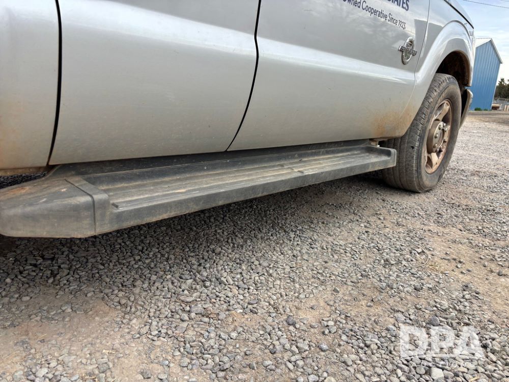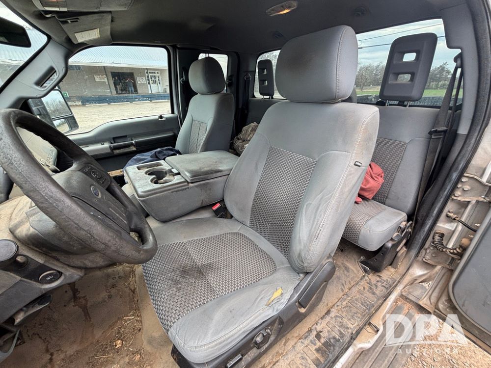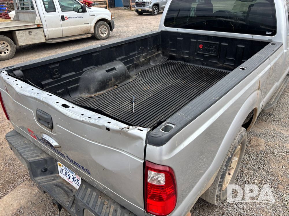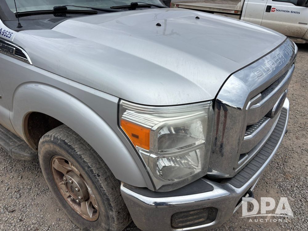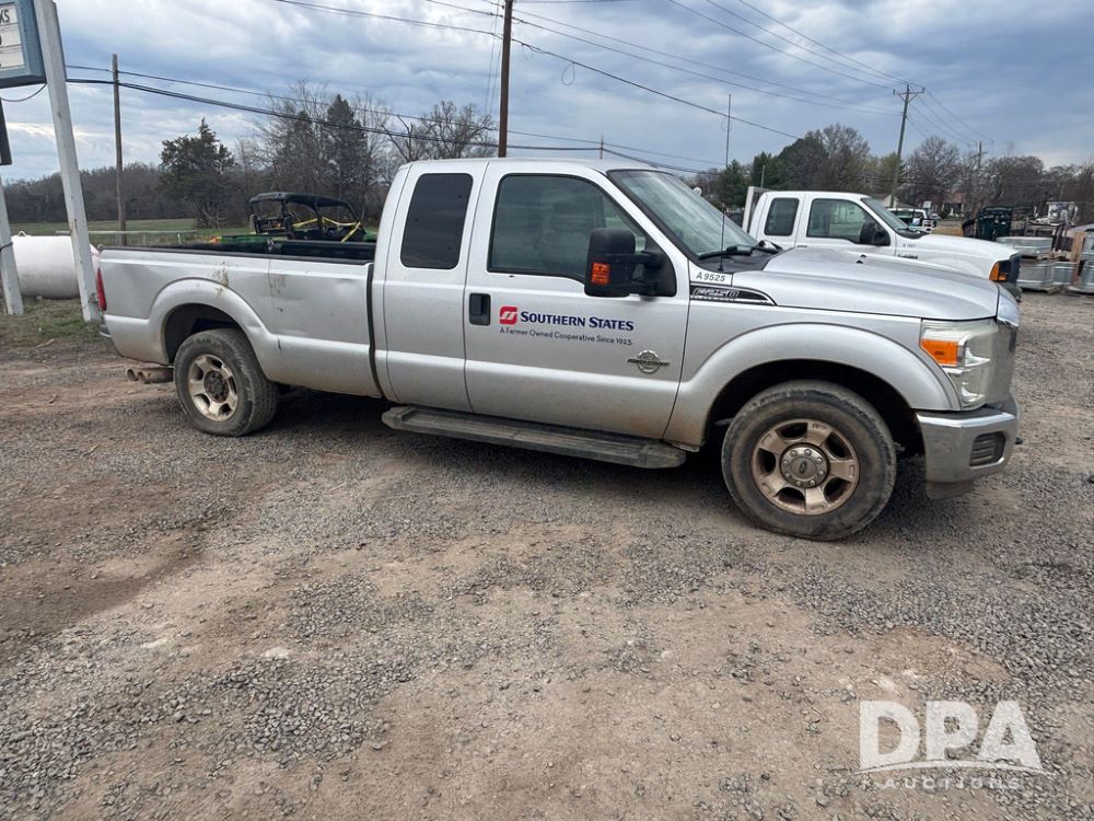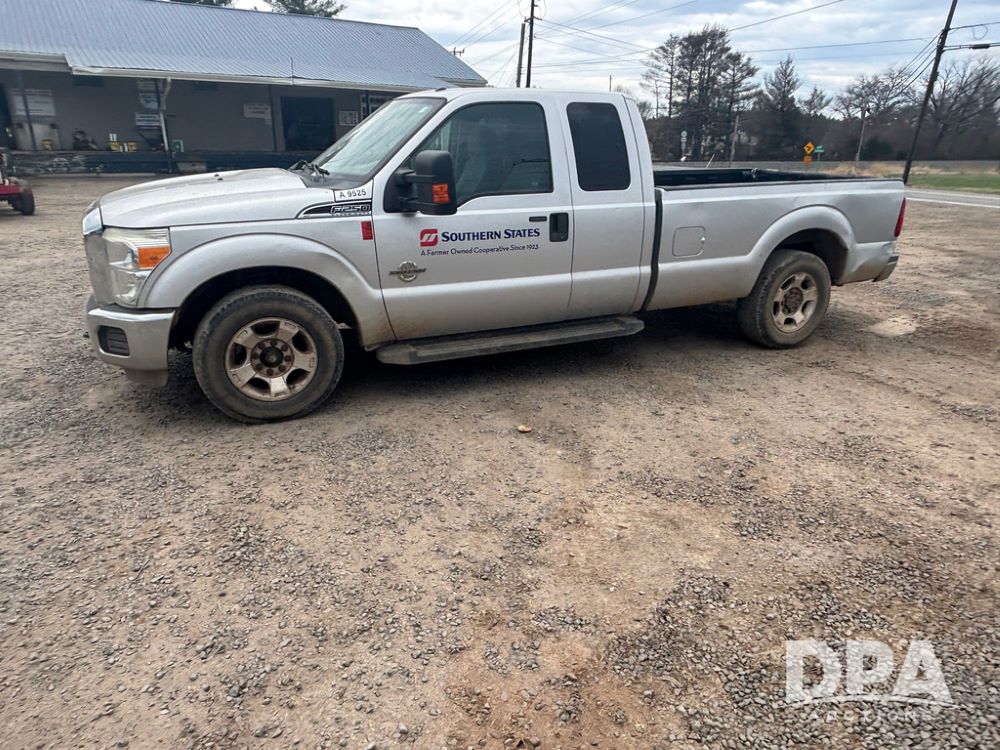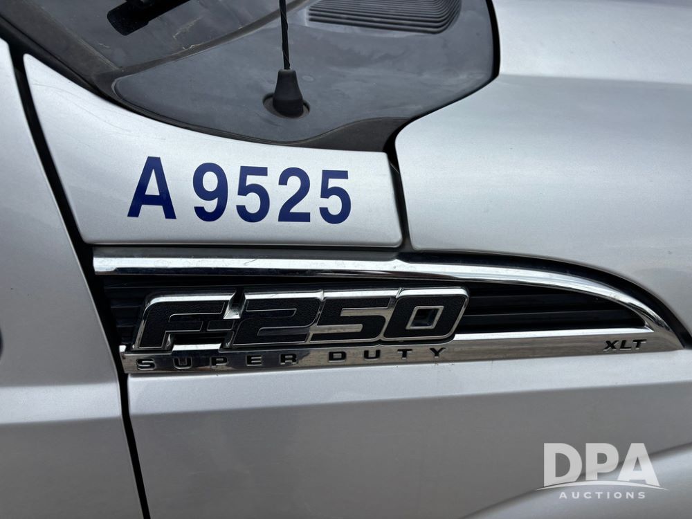 2015 Ford F-250 Super Duty Pickup (GP12912, Unit A9525), extended cab, Power Stroke 6.7L turbo diesel engine, automatic transmission, heat, Am/Fm radio, power windows, locks and mirrors, cruise control, running boards, tow package, Rugged Liner bed liner, LT275/65R18 tires, shows 414,513 miles.