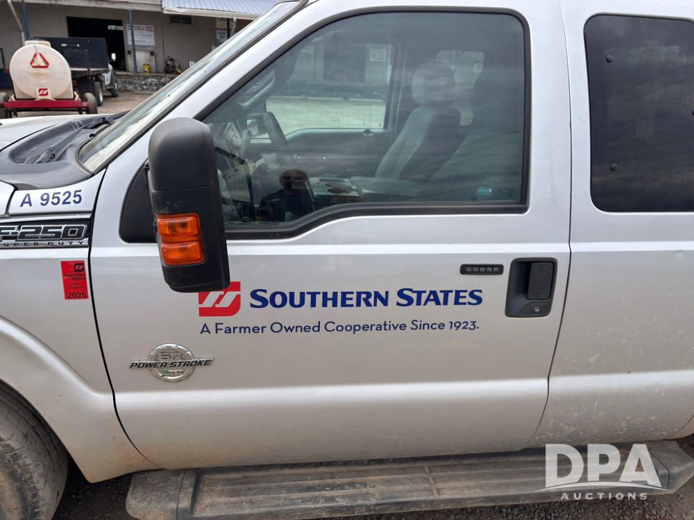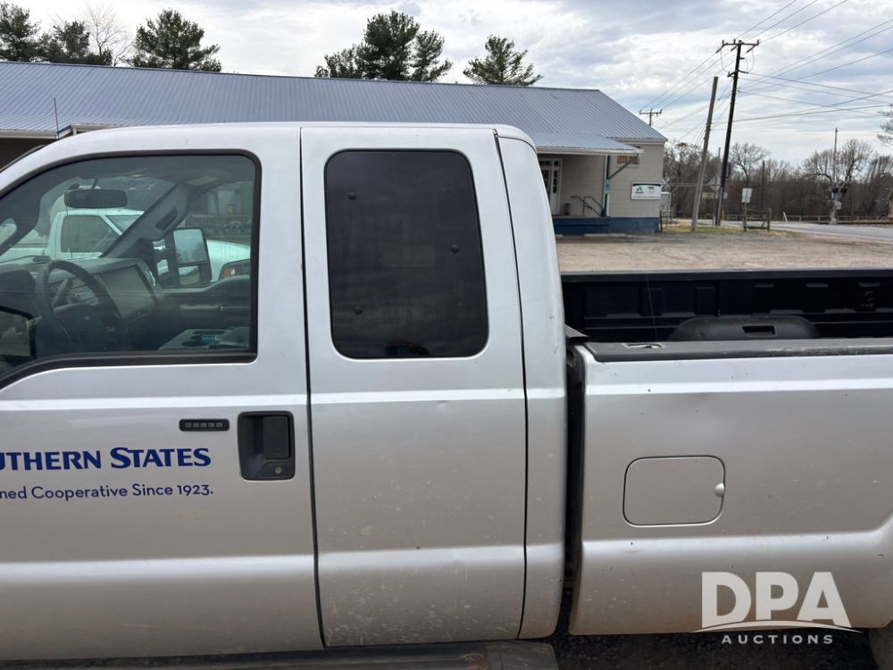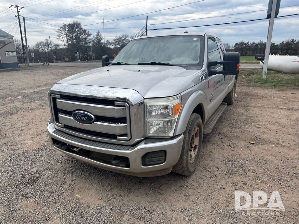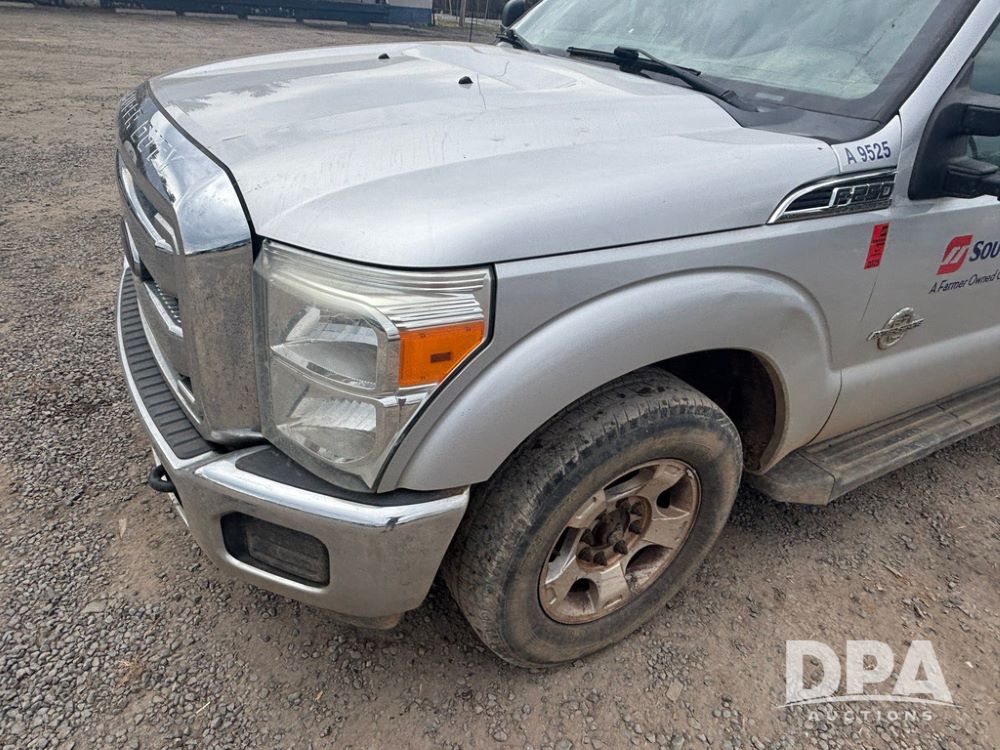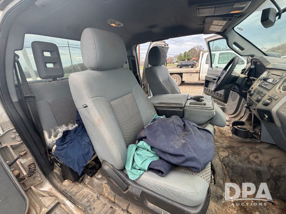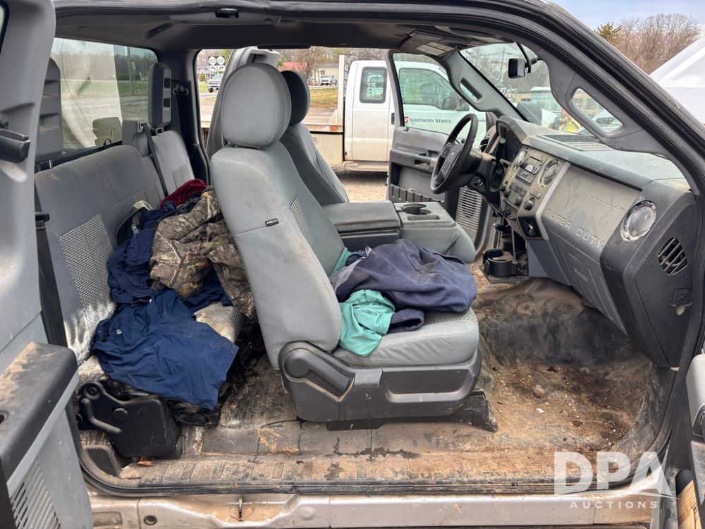 2015 Ford F-250 Super Duty Pickup (GP12912, Unit A9525), extended cab, Power Stroke 6.7L turbo diesel engine, automatic transmission, heat, Am/Fm radio, power windows, locks and mirrors, cruise control, running boards, tow package, Rugged Liner bed liner, LT275/65R18 tires, shows 414,513 miles.