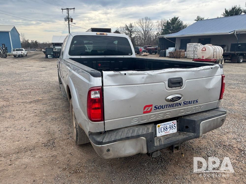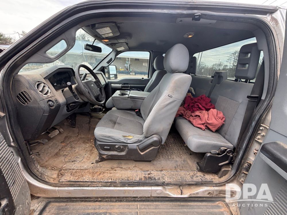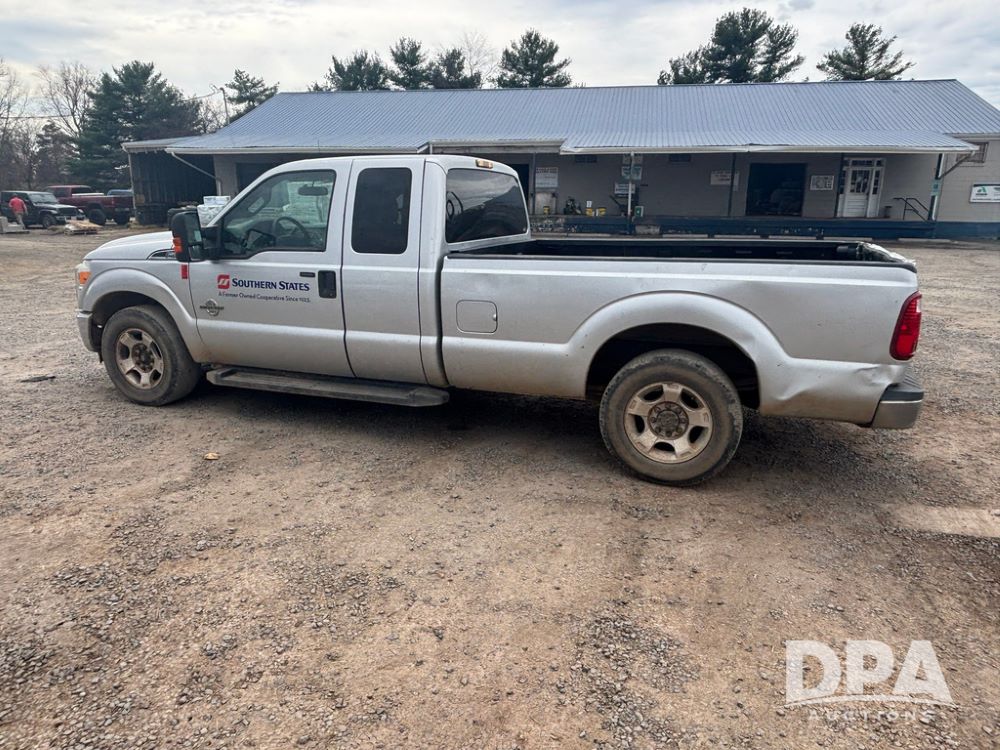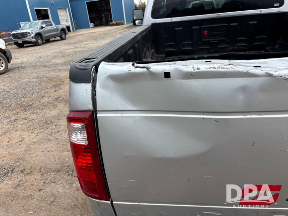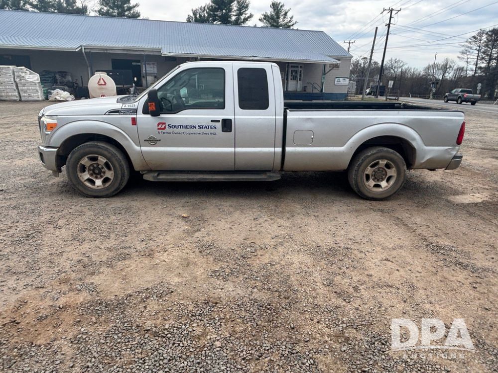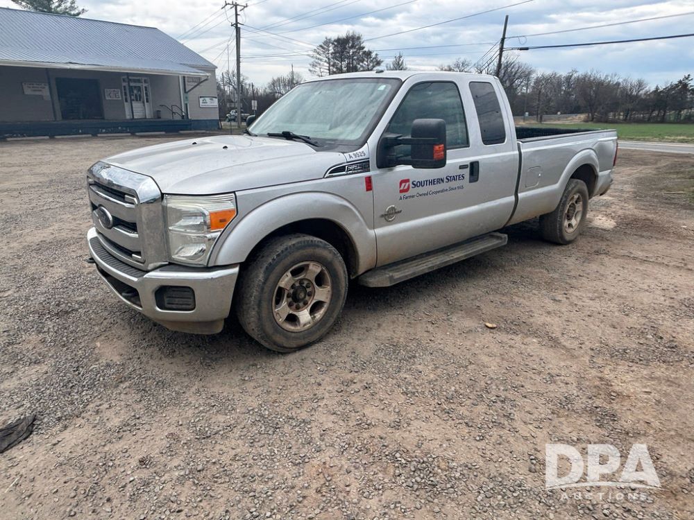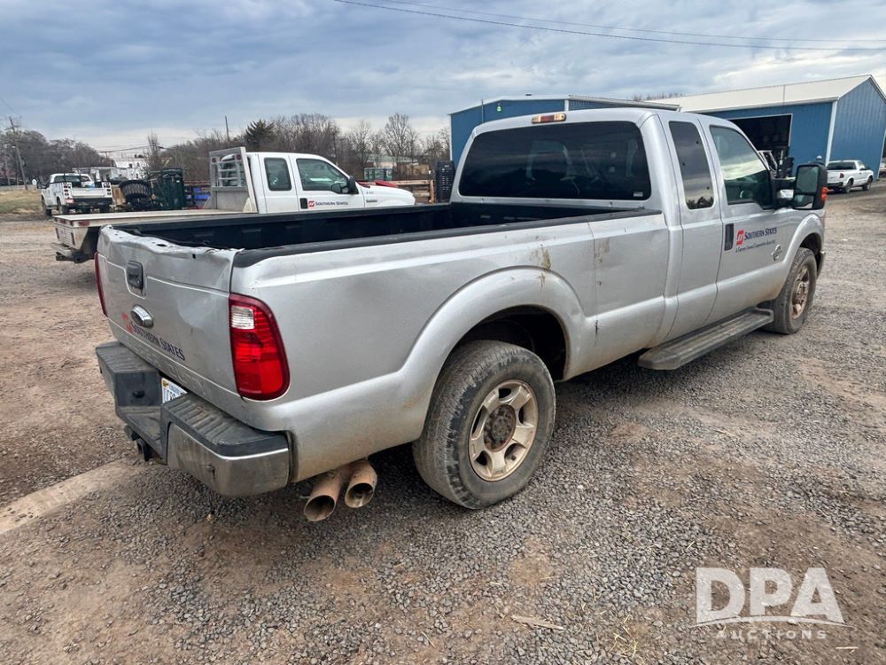 2015 Ford F-250 Super Duty Pickup (GP12912, Unit A9525), extended cab, Power Stroke 6.7L turbo diesel engine, automatic transmission, heat, Am/Fm radio, power windows, locks and mirrors, cruise control, running boards, tow package, Rugged Liner bed liner, LT275/65R18 tires, shows 414,513 miles.