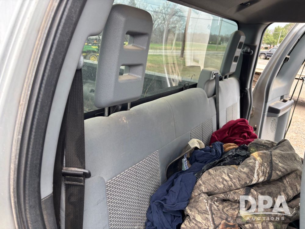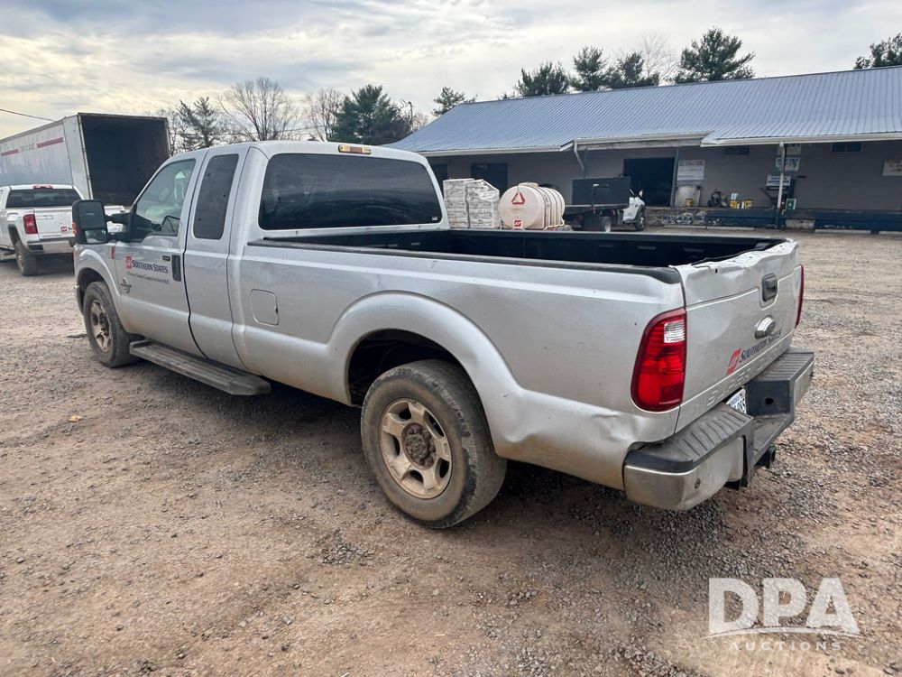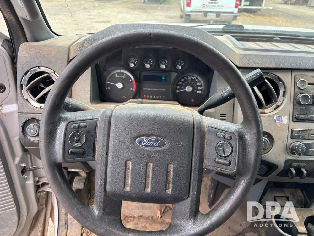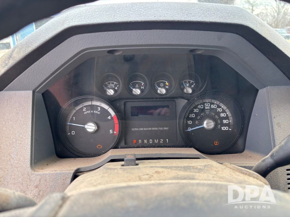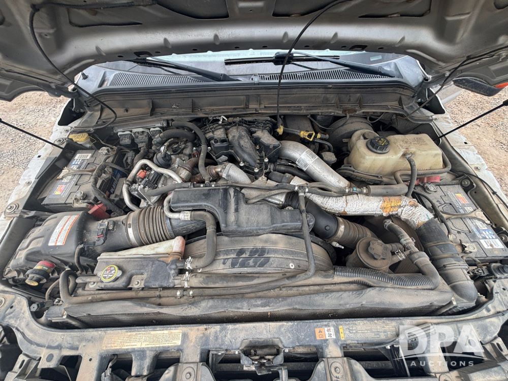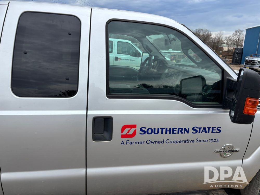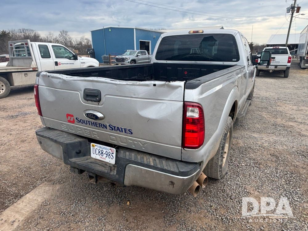 2015 Ford F-250 Super Duty Pickup (GP12912, Unit A9525), extended cab, Power Stroke 6.7L turbo diesel engine, automatic transmission, heat, Am/Fm radio, power windows, locks and mirrors, cruise control, running boards, tow package, Rugged Liner bed liner, LT275/65R18 tires, shows 414,513 miles.